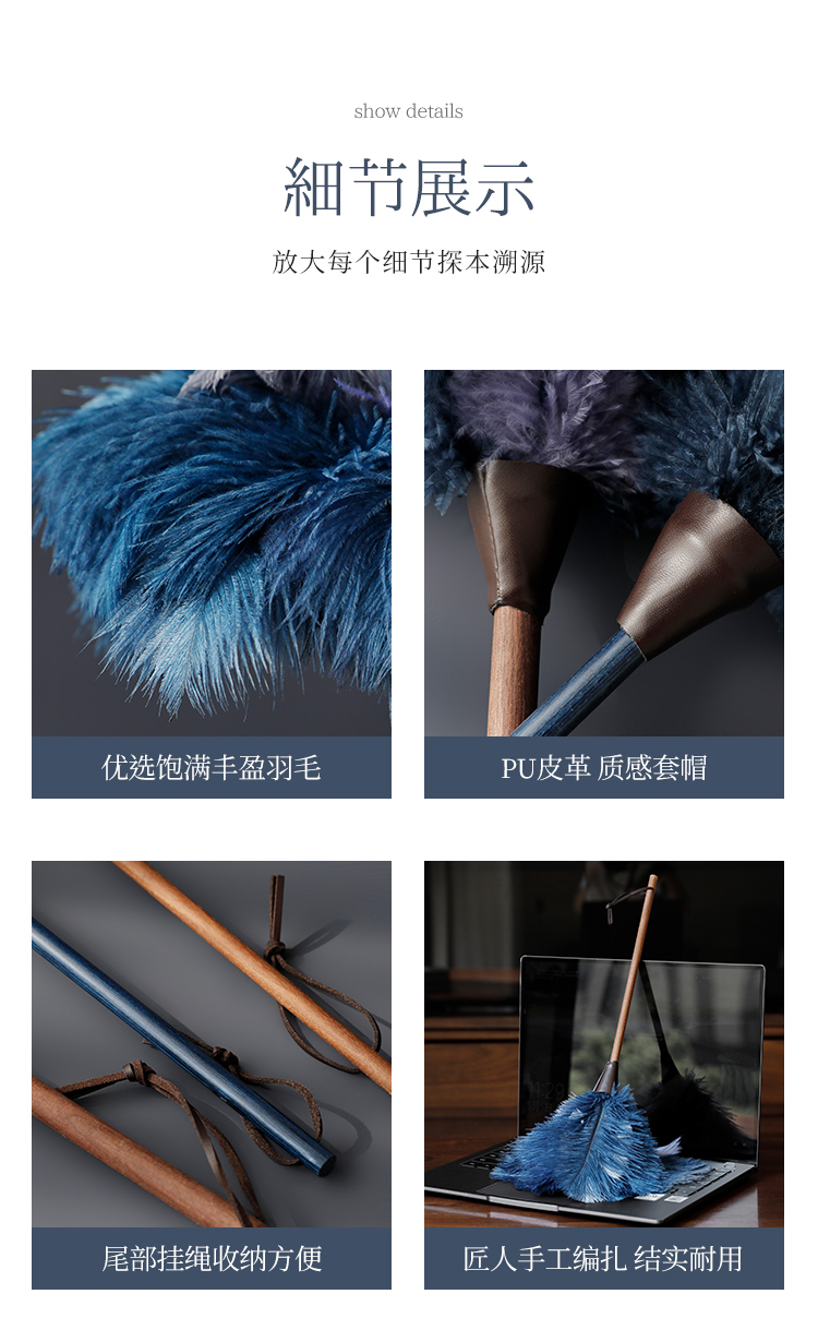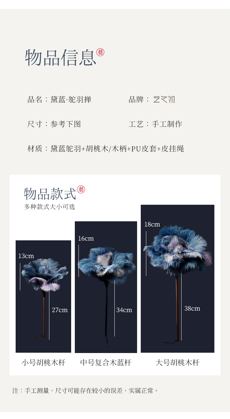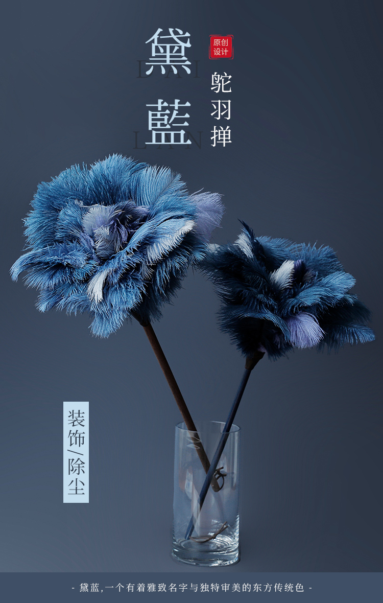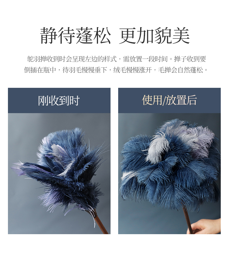 艺之初鸡毛掸子静电除尘扫灰家用黛蓝鸵鸟毛灰尘清理神器装饰掸子