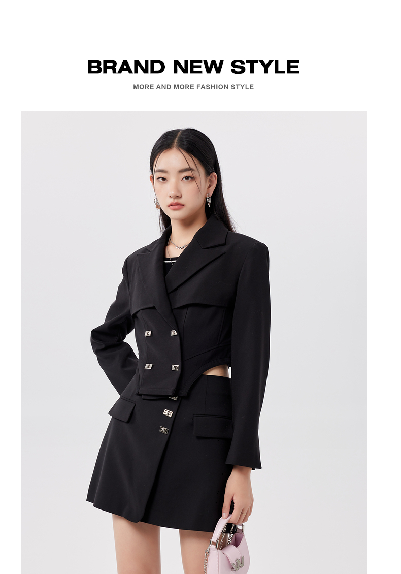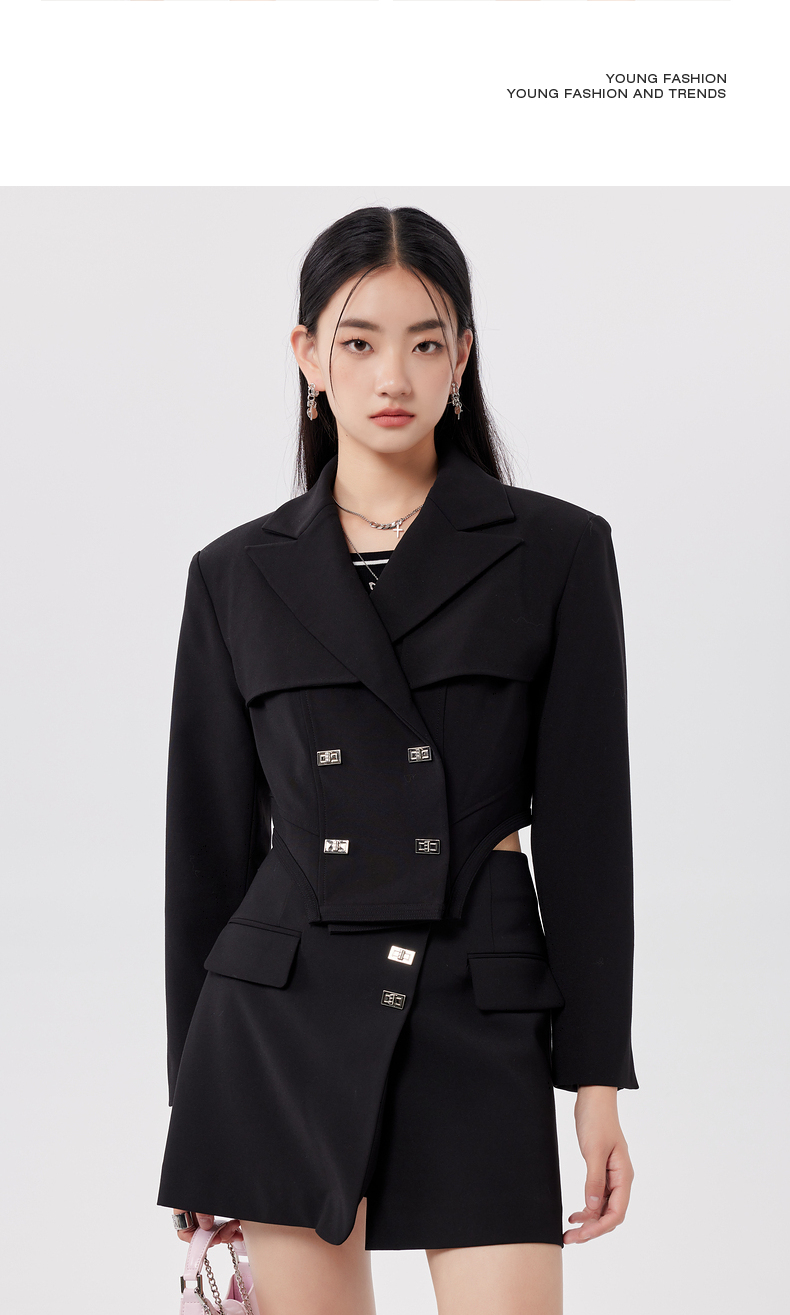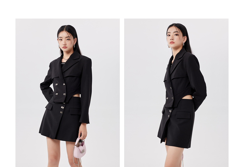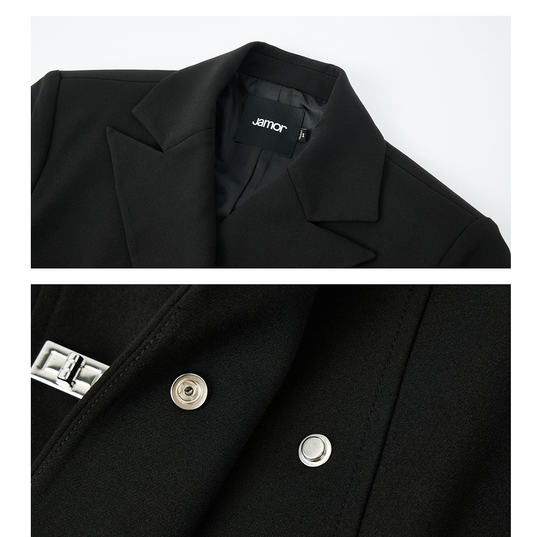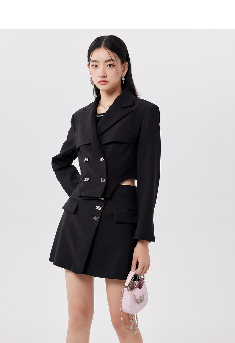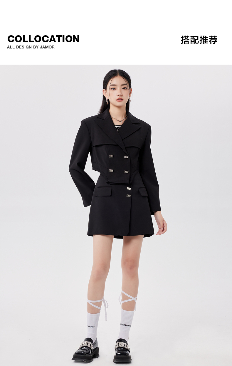 Jamor黑色短款西装外套女装2024新款春款设计感chic外套上衣加末