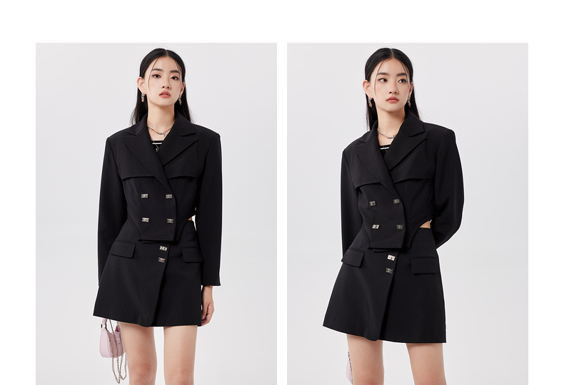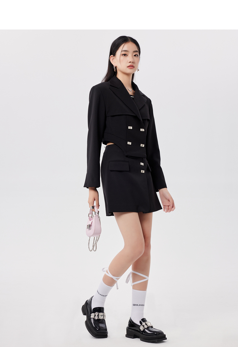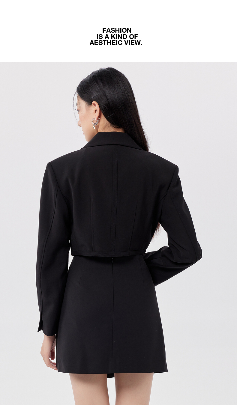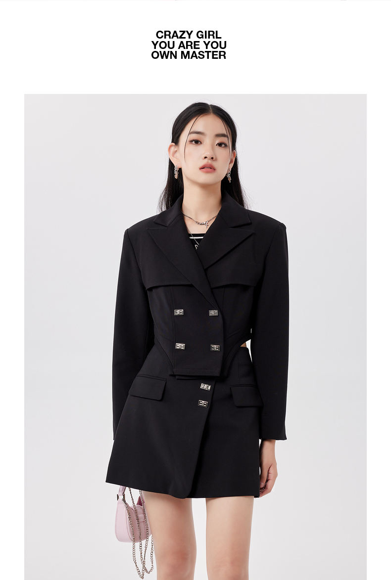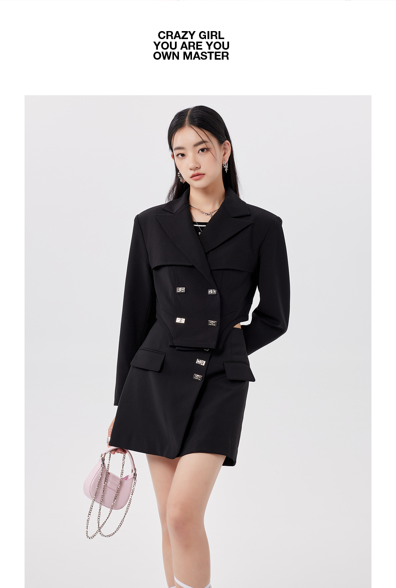 Jamor黑色短款西装外套女装2024新款春款设计感chic外套上衣加末