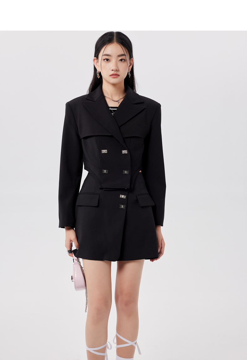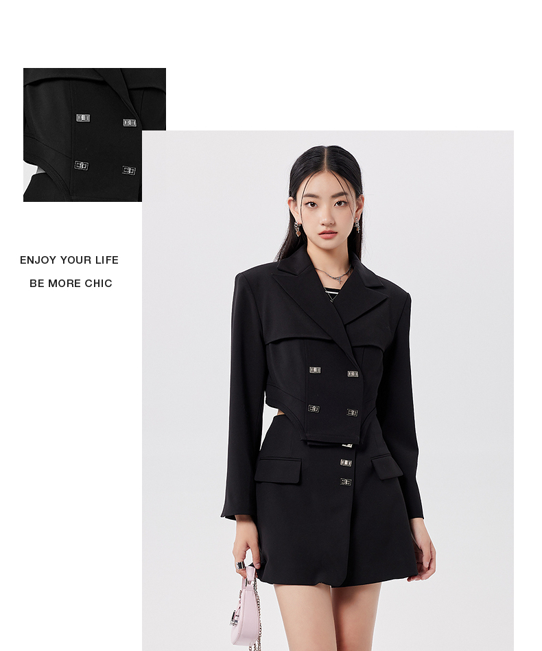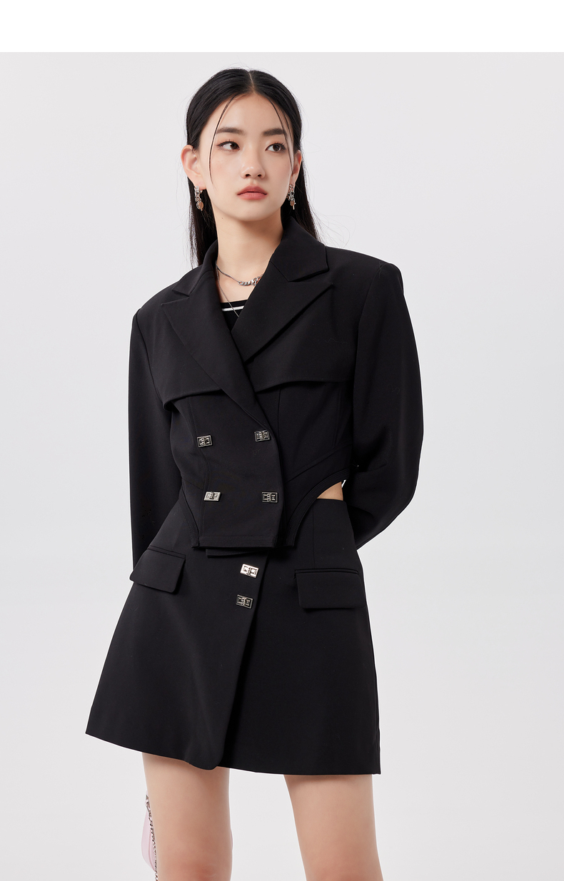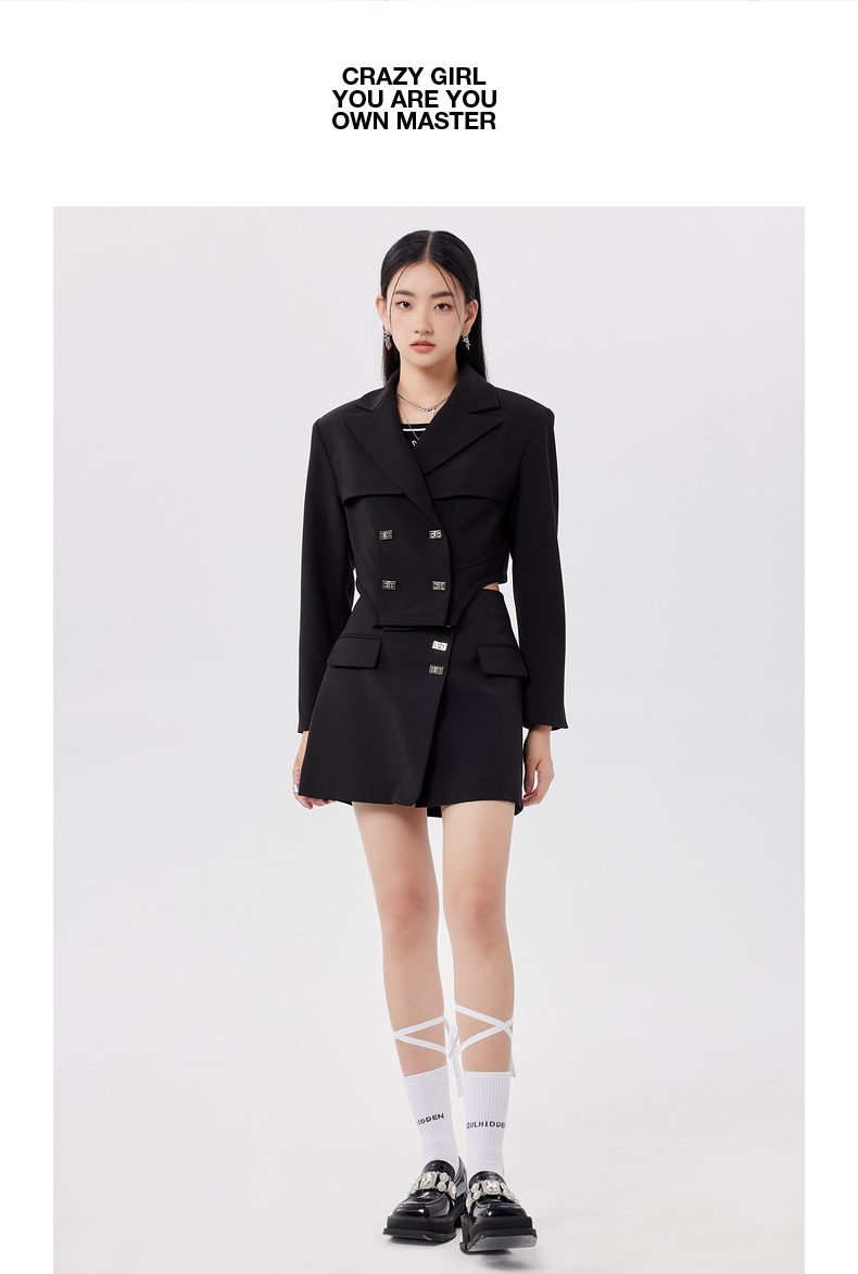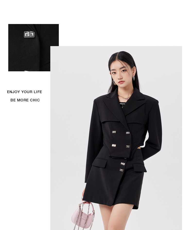 Jamor黑色短款西装外套女装2024新款春款设计感chic外套上衣加末
