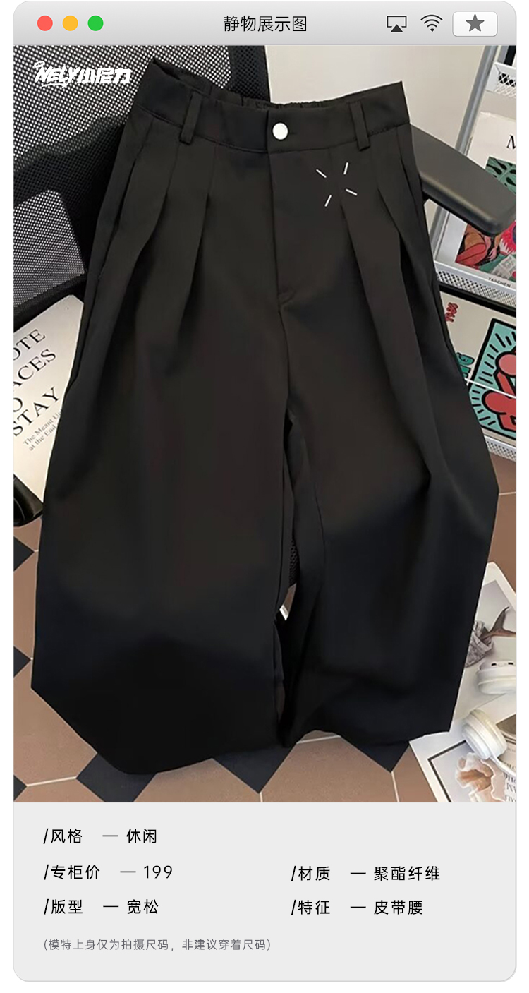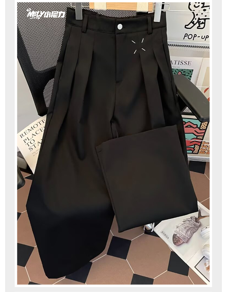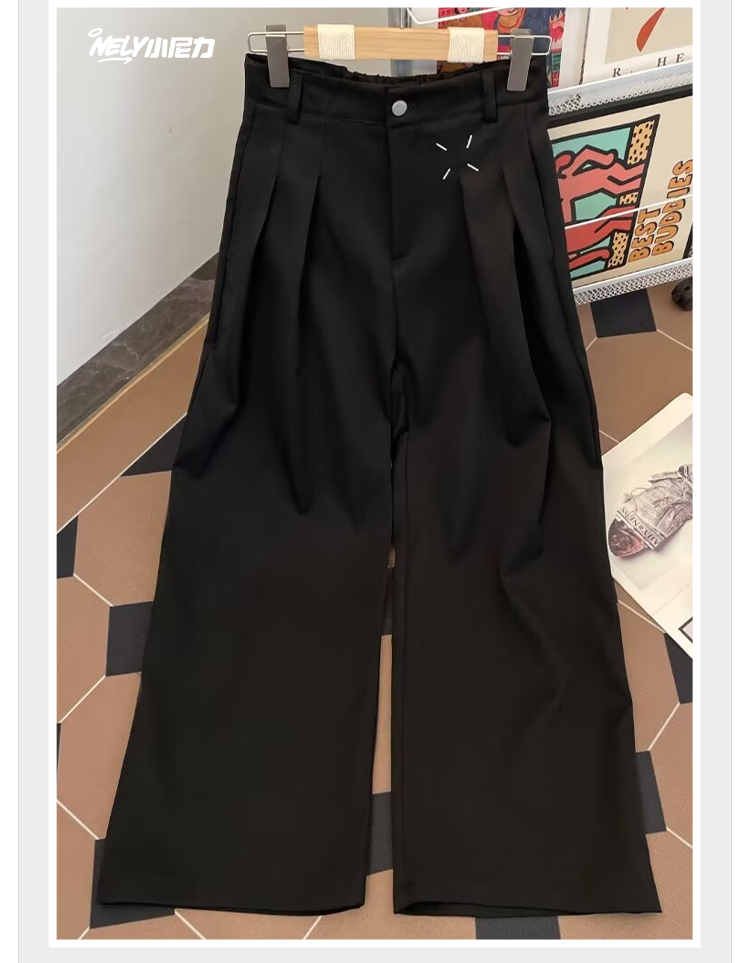 NELY小尼力小众垂坠感阔腿西装长裤男女直筒休闲宽松时尚潮牌西裤