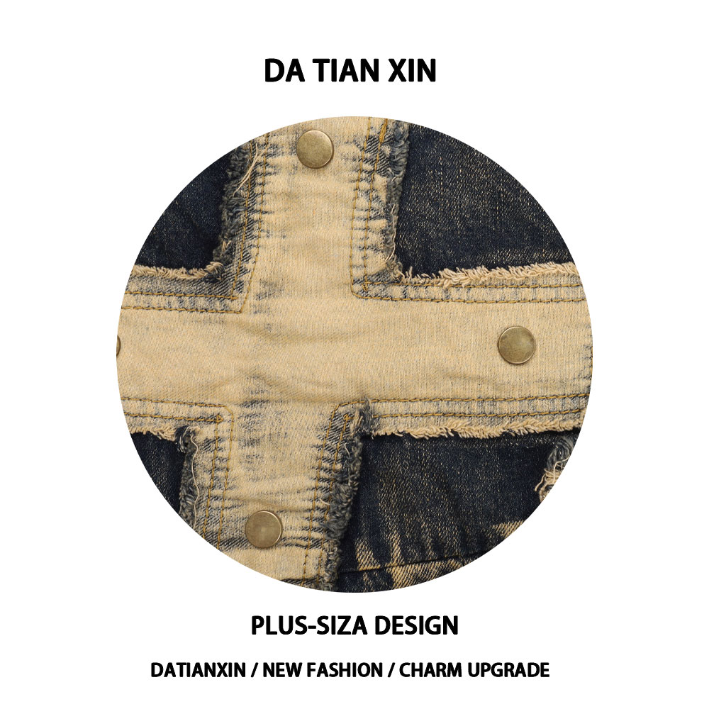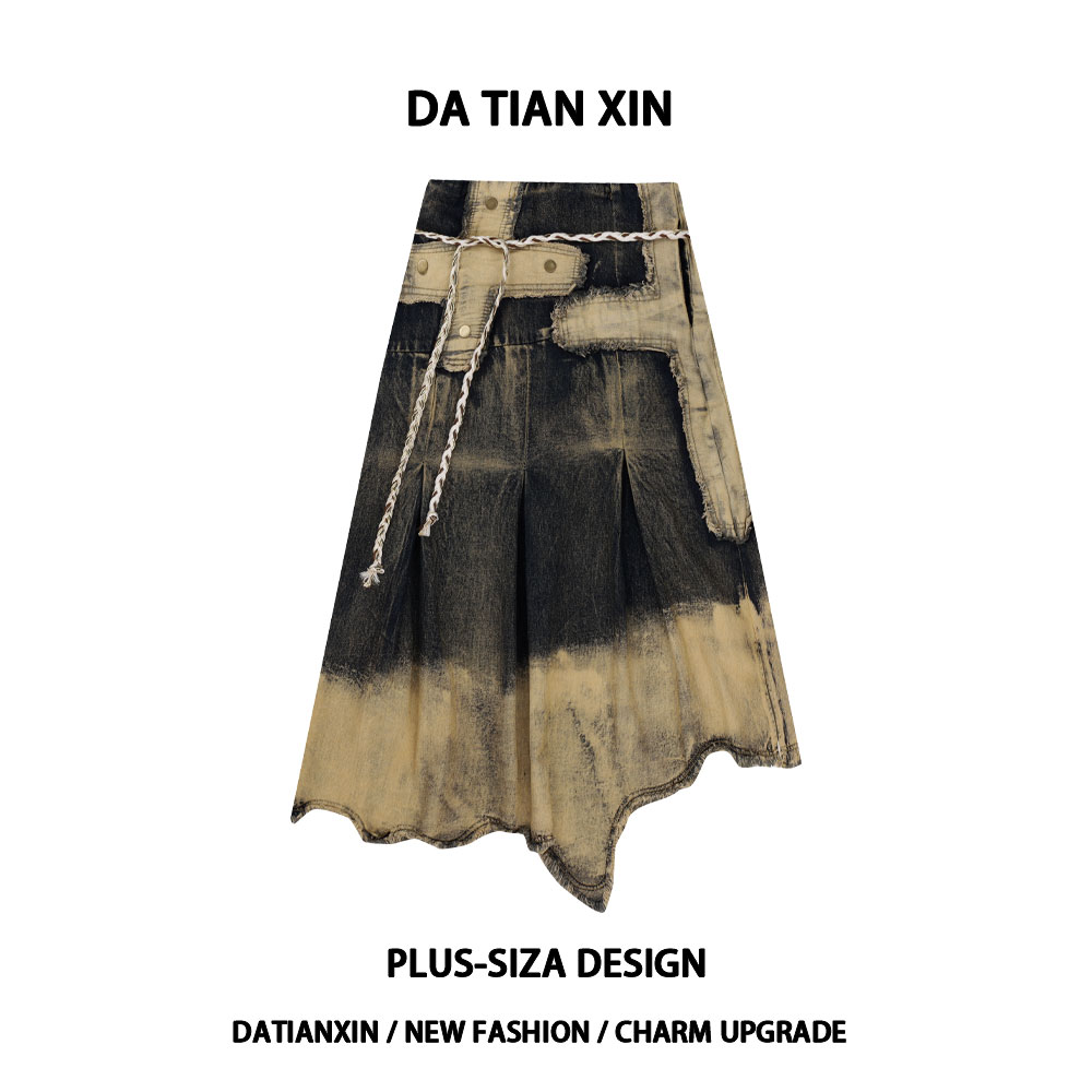 大码重工做旧毛边牛仔半身裙女美式复古y2k设计感小众辣妹a字裙子