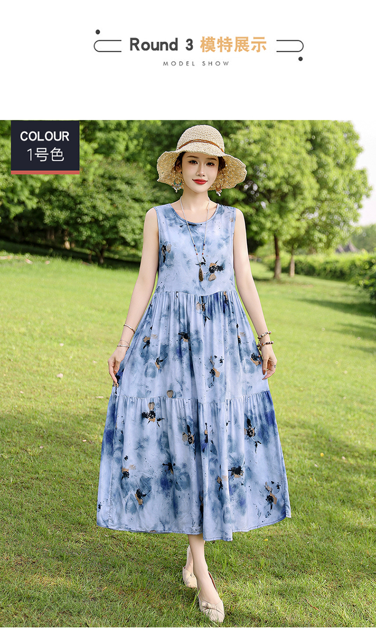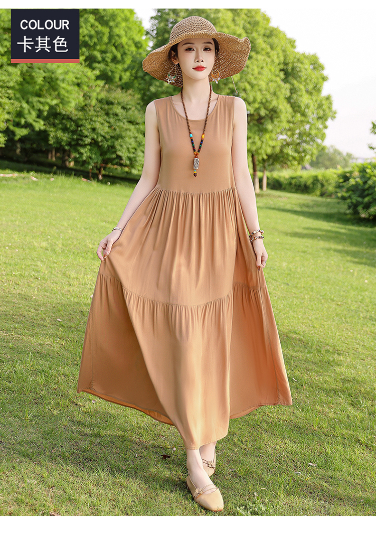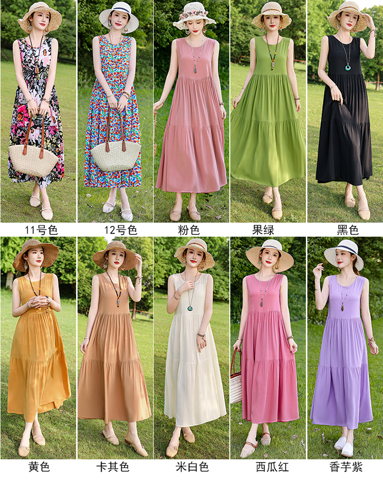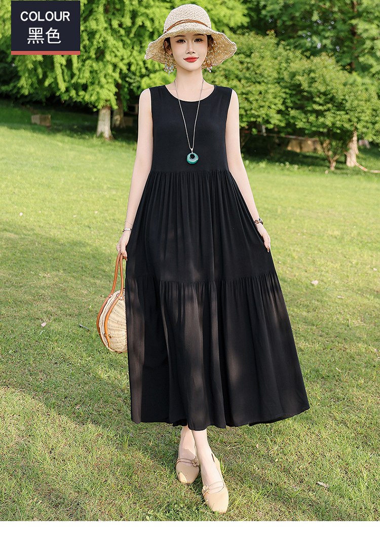 夏季无袖棉绸连衣裙女大码宽松长款过膝新款洋气显瘦高级感蛋糕裙