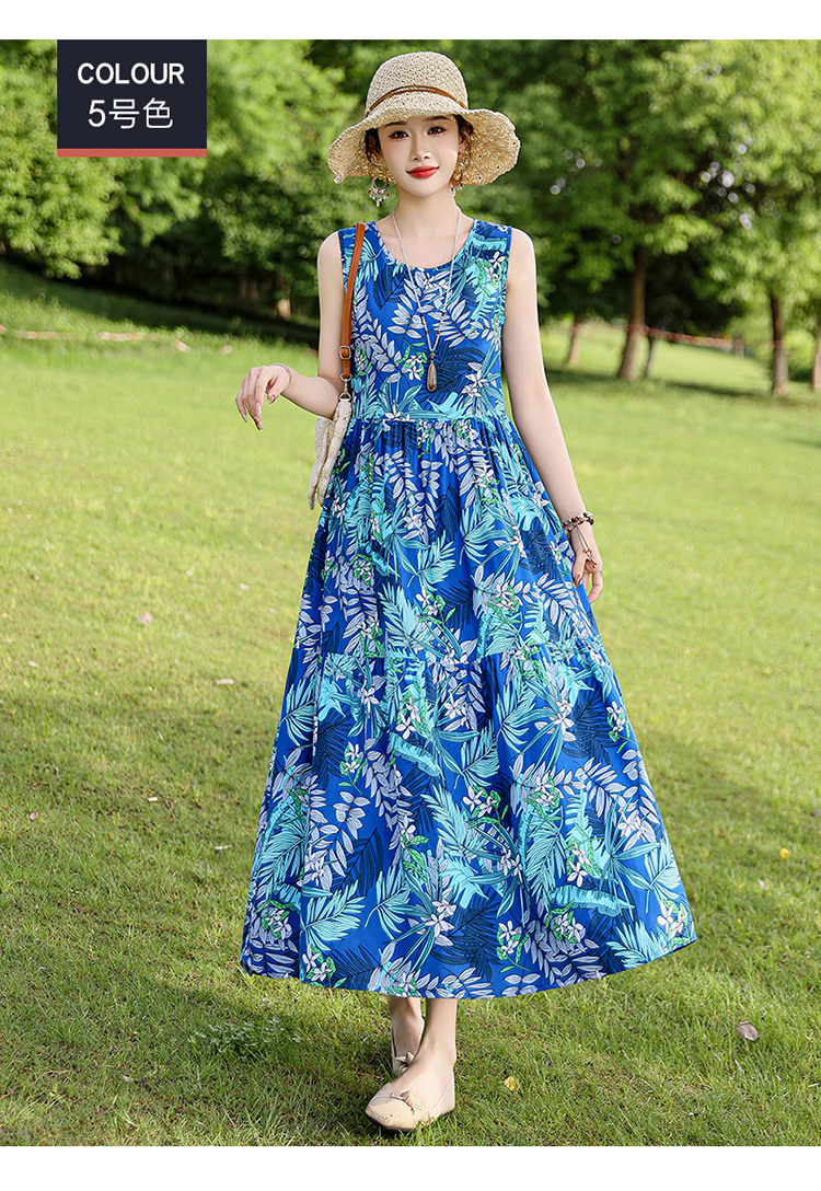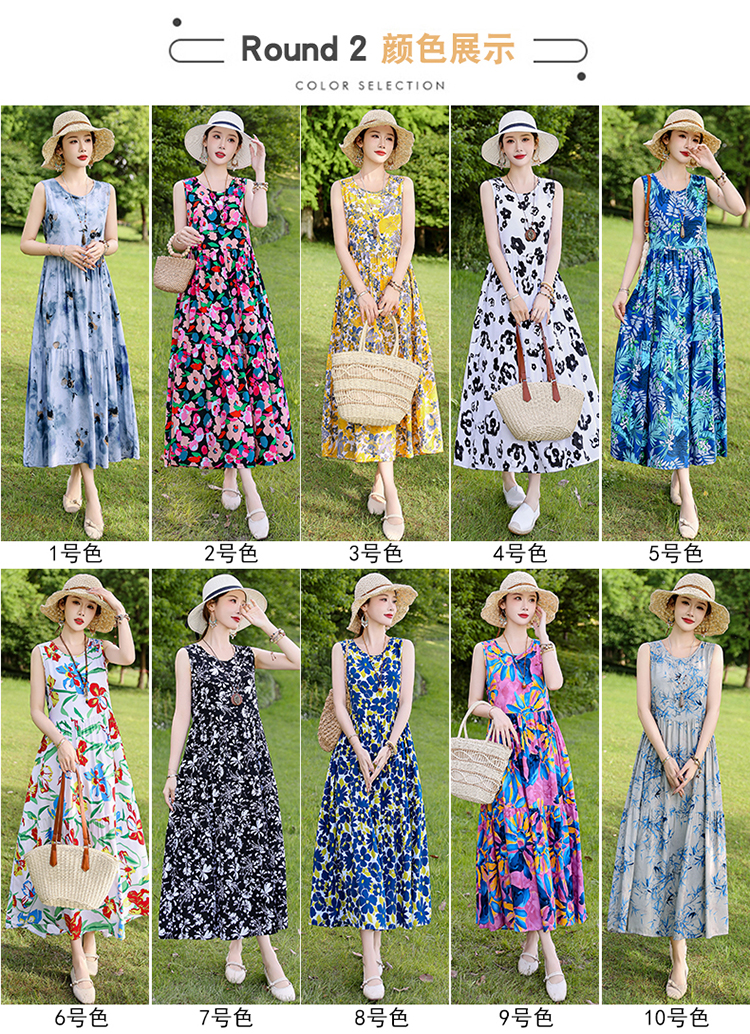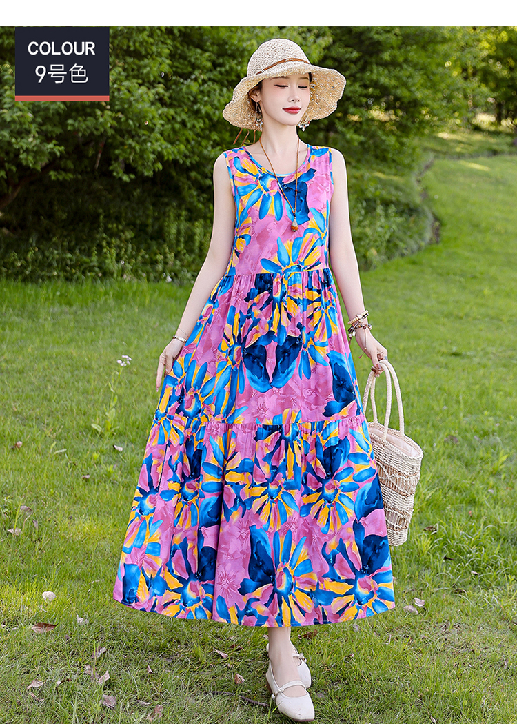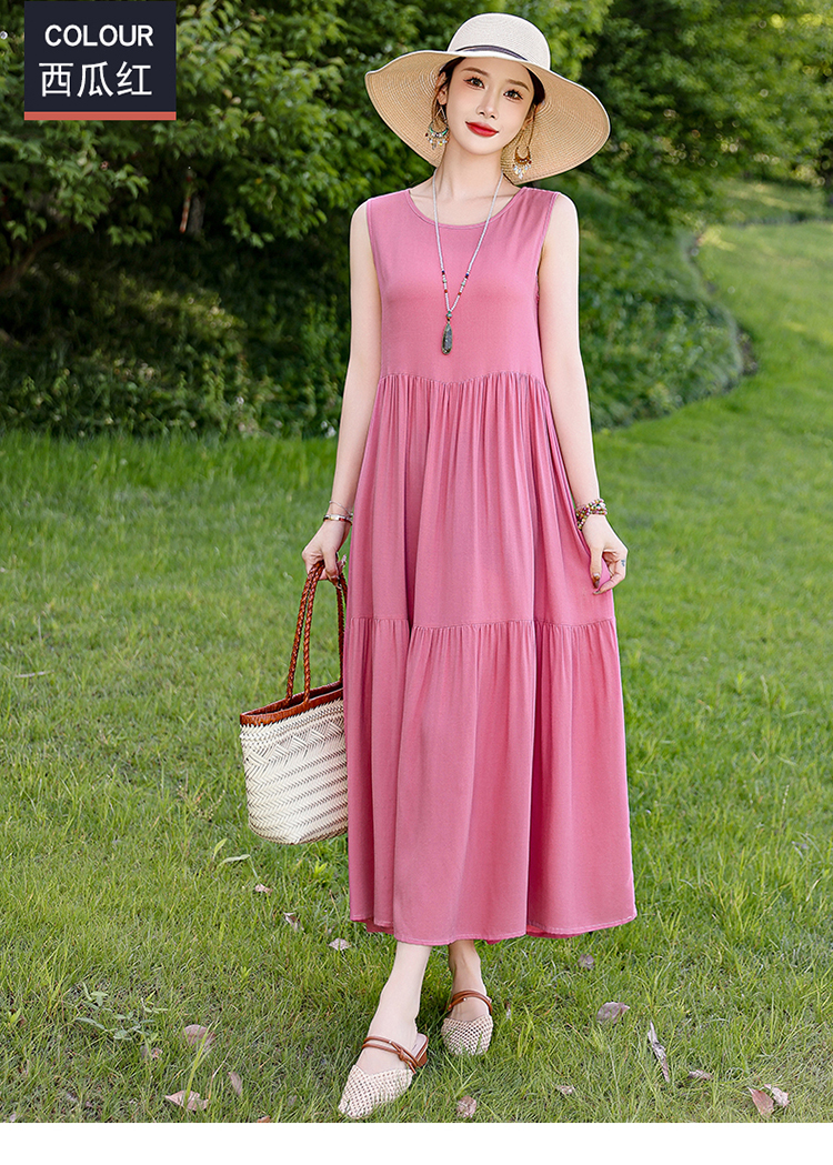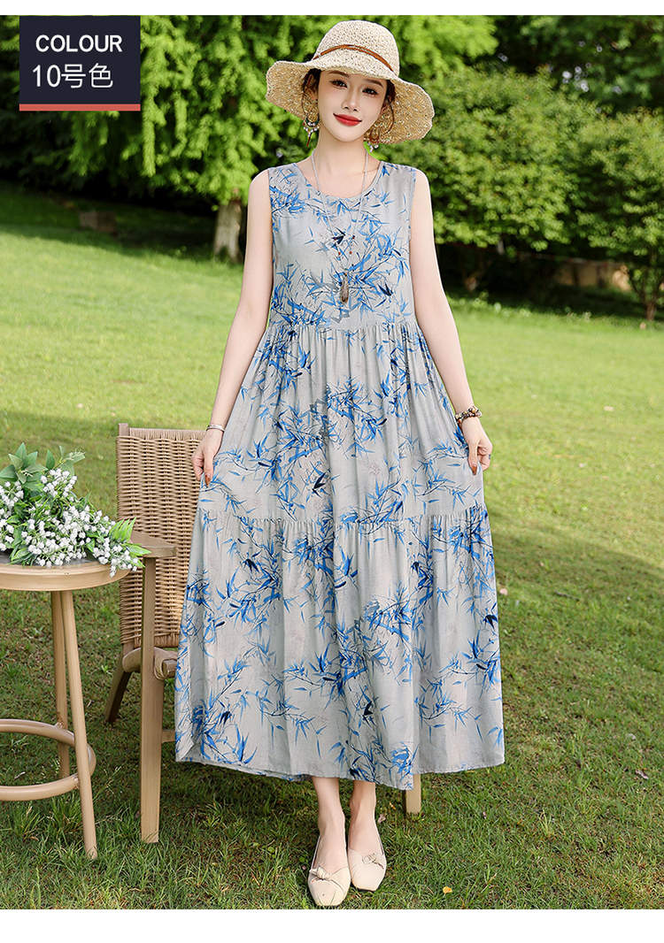 夏季无袖棉绸连衣裙女大码宽松长款过膝新款洋气显瘦高级感蛋糕裙