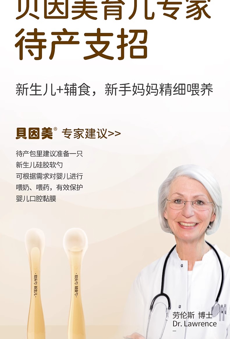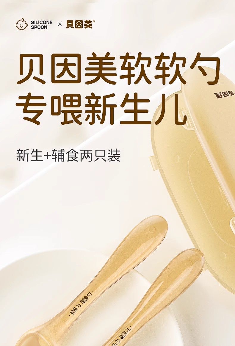 贝因美硅胶勺子新生婴儿宝宝辅食喂水喂奶吃饭米粉小软勺儿童餐具