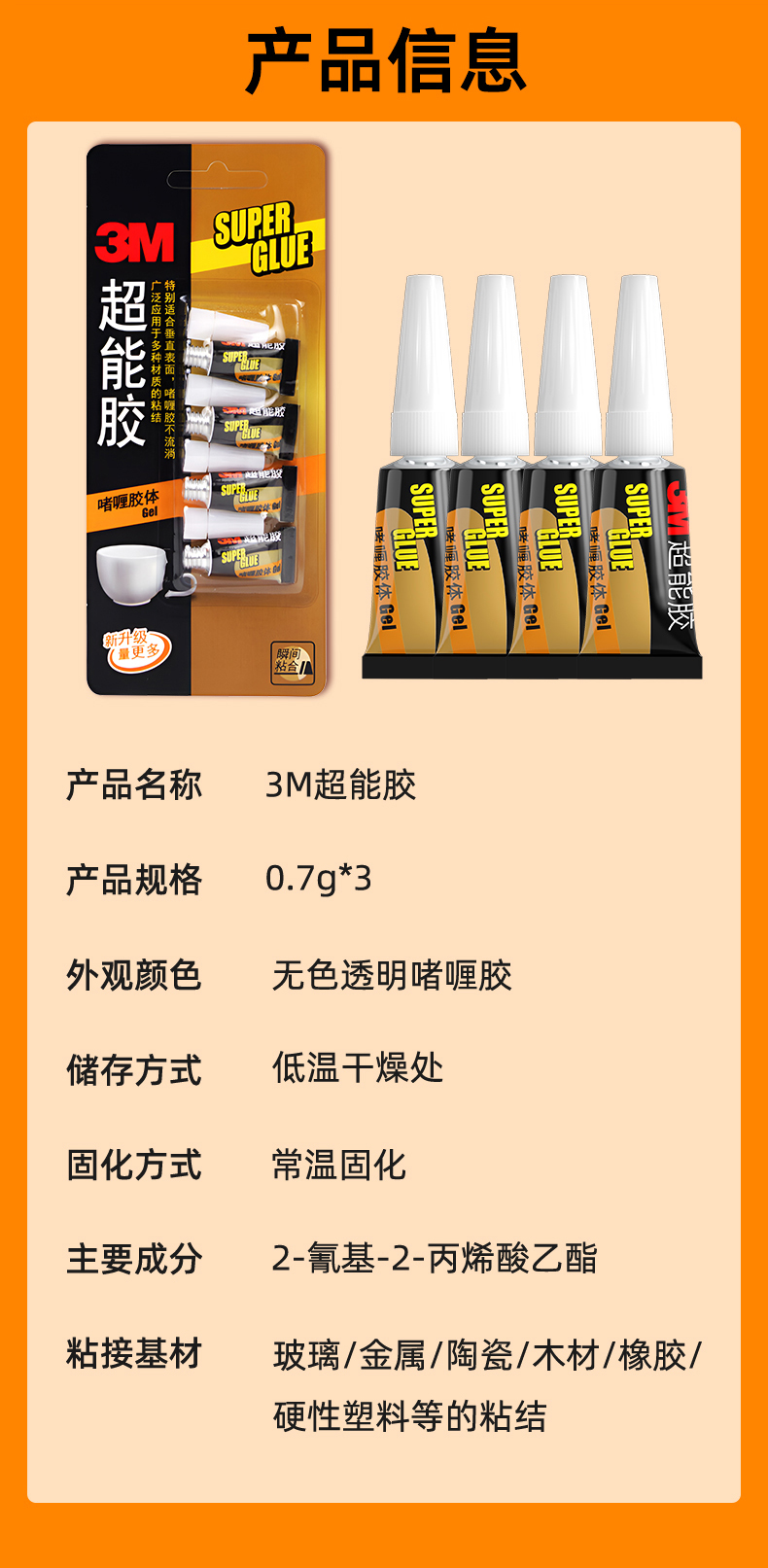 3m胶水强力万能粘塑料断裂修补玩具快干透明不发白多功能防水粘得牢模型修复乐高积木固定粘玩具粘手办的胶水
