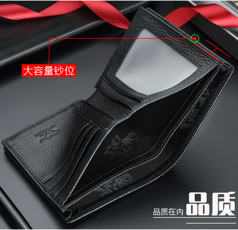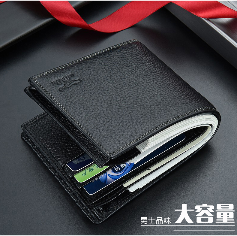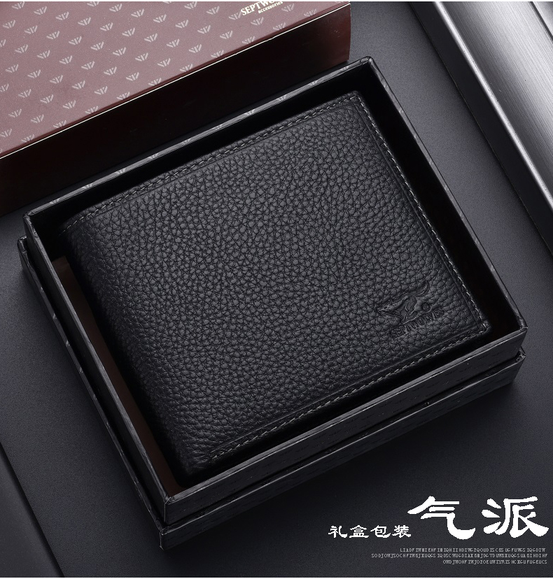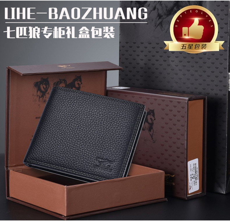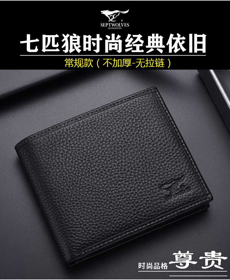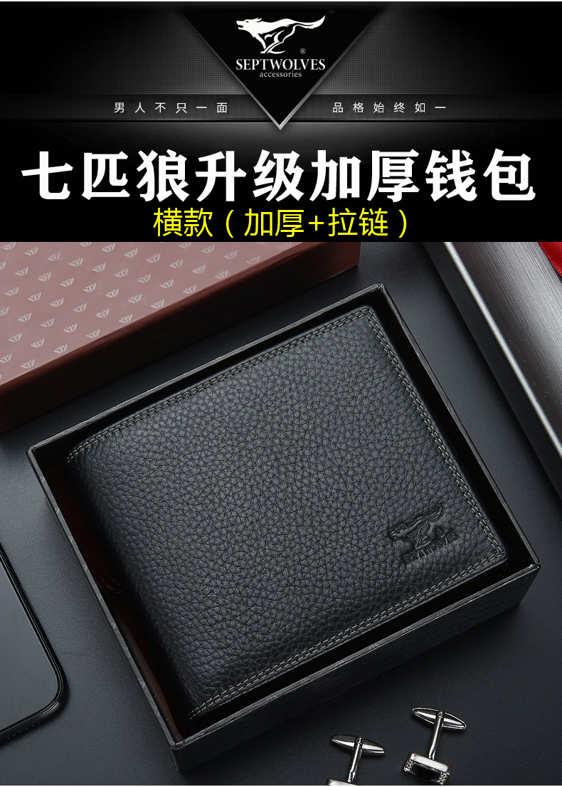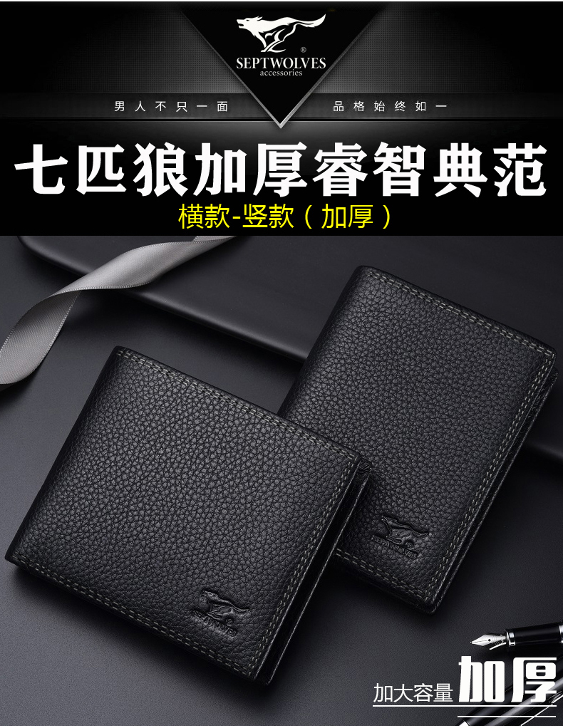 七匹狼钱包男士大容量短款真皮包竖款加厚加宽牛皮夹男款折叠爸爸