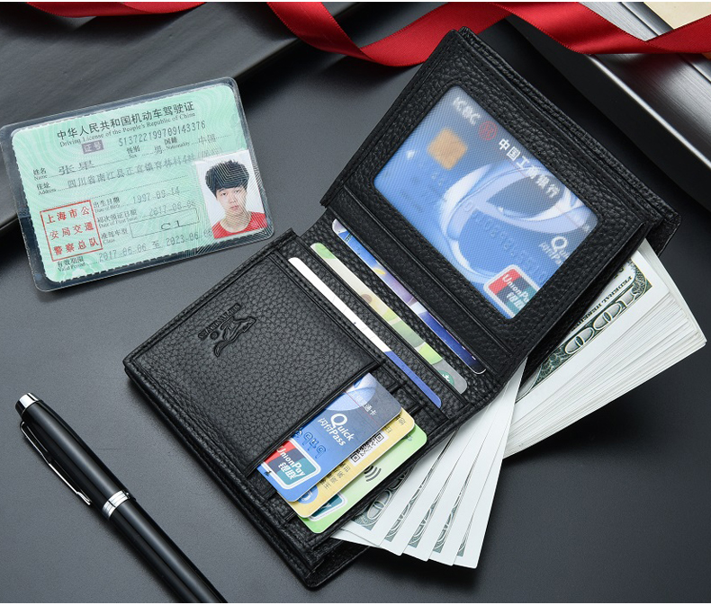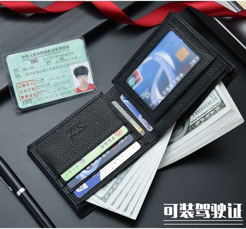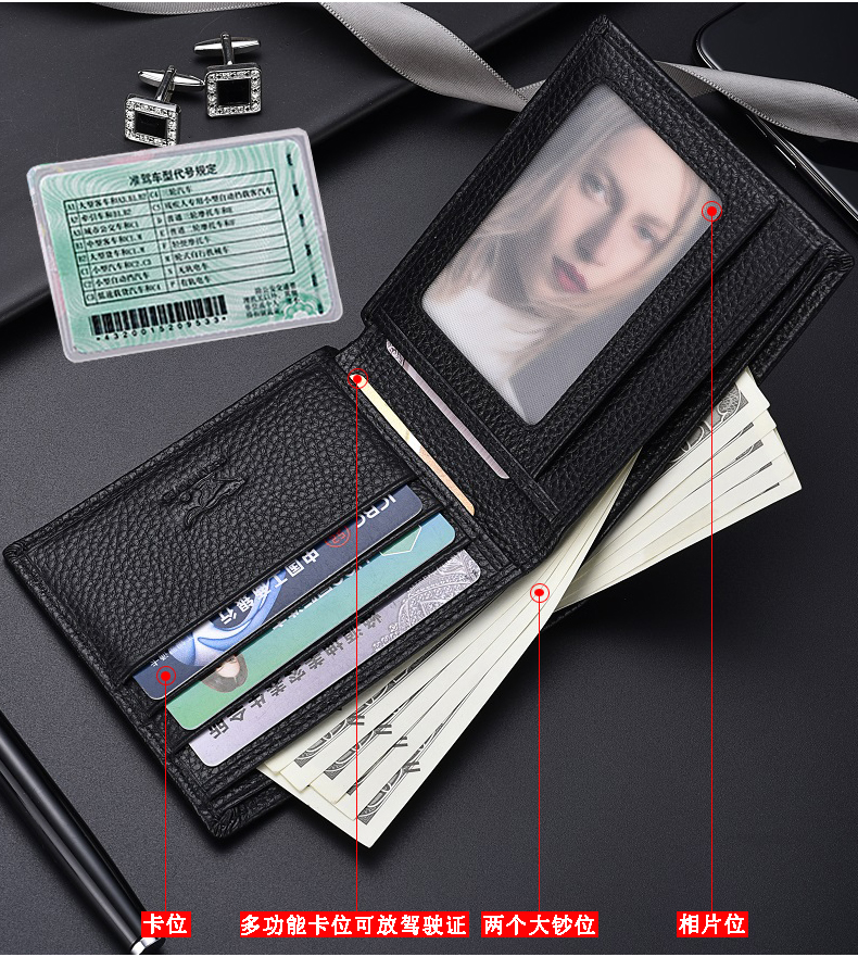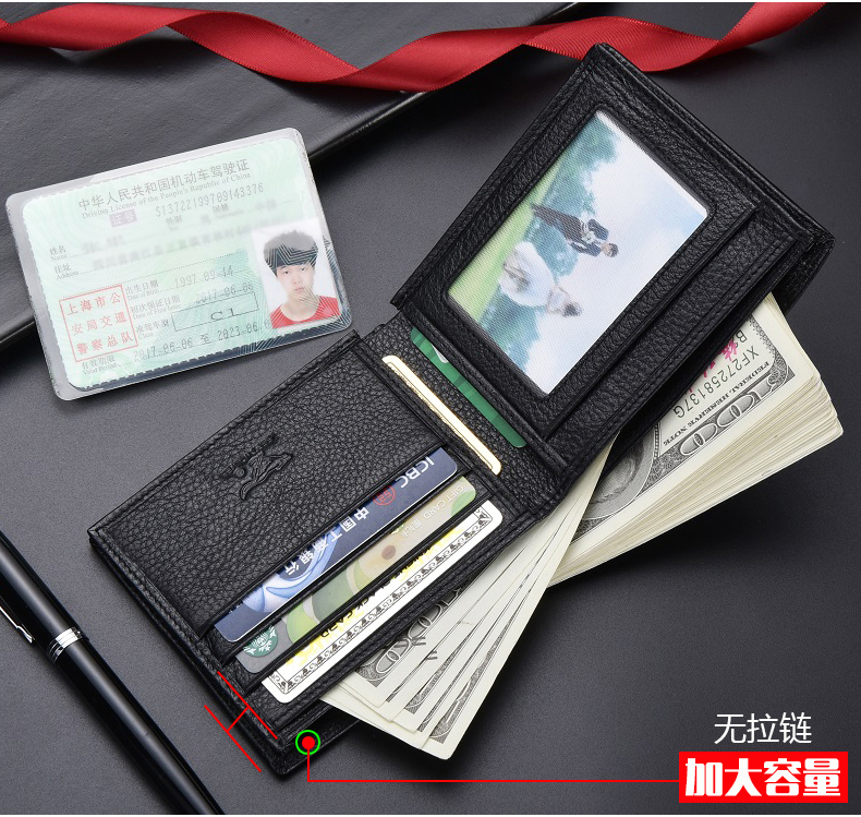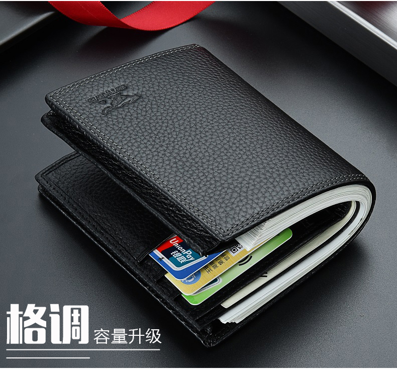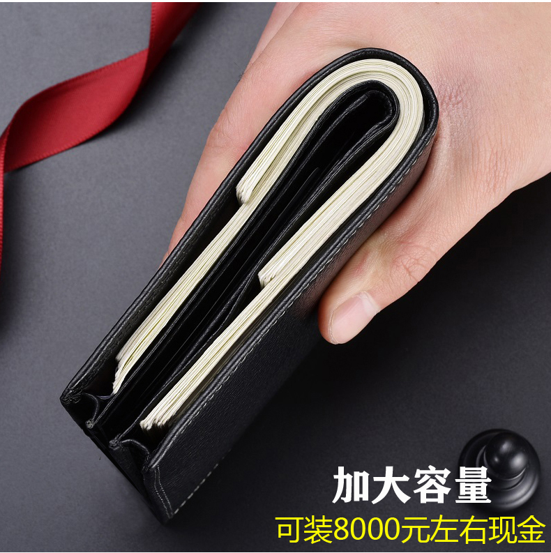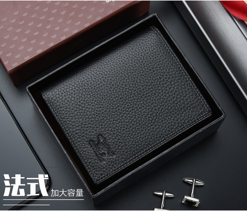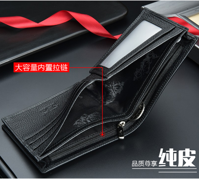 七匹狼钱包男士大容量短款真皮包竖款加厚加宽牛皮夹男款折叠爸爸