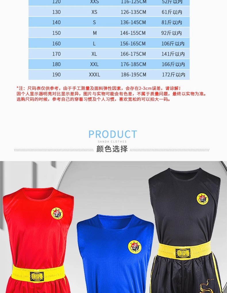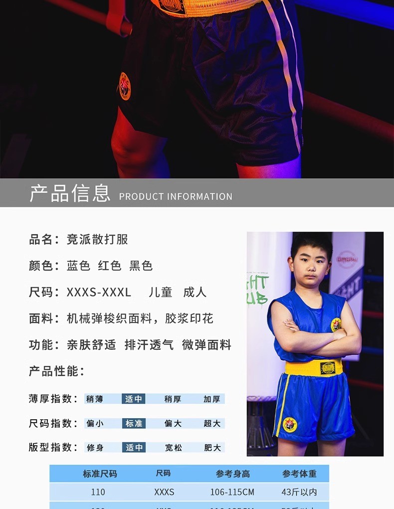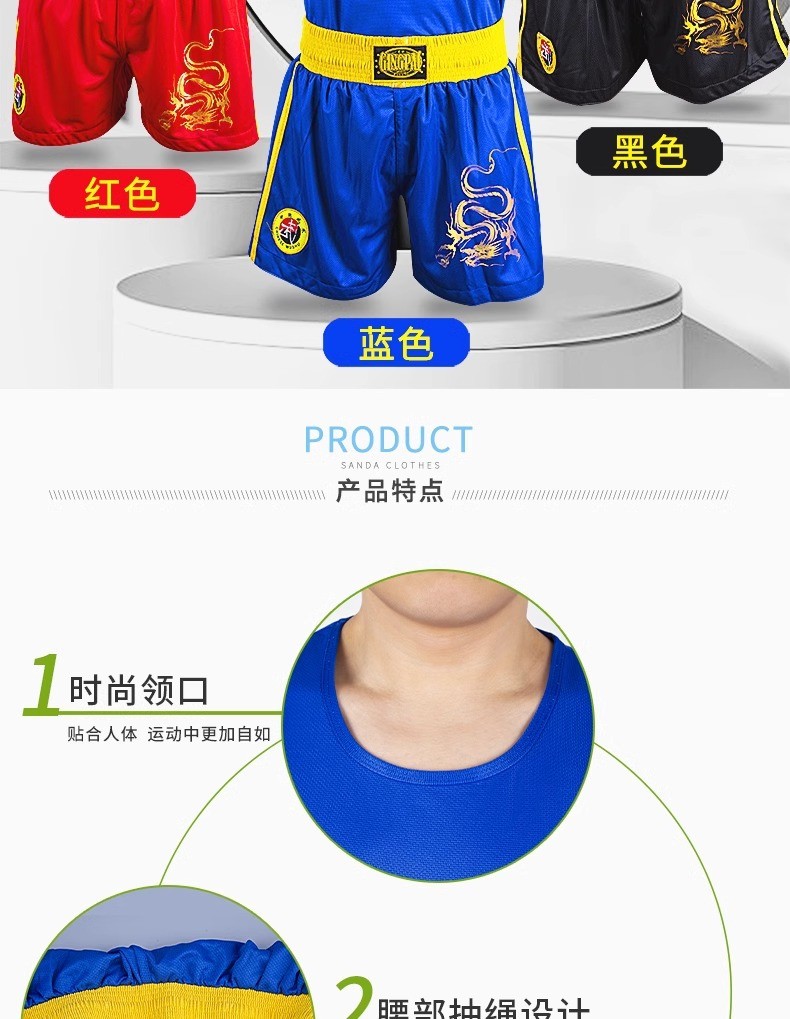 散打服儿童成人比赛龙服拳击训练服套装男女泰拳搏击短裤专业