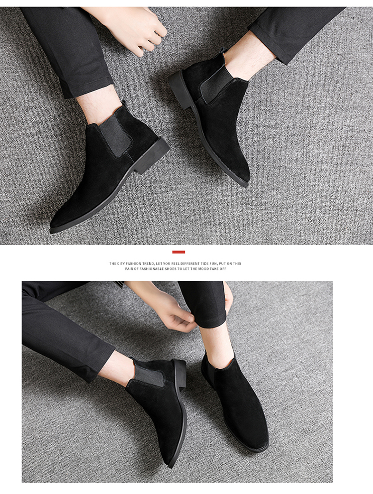 时尚潮流新款切尔西靴马丁靴短靴子潮英伦尖头高帮男士发型师皮鞋
