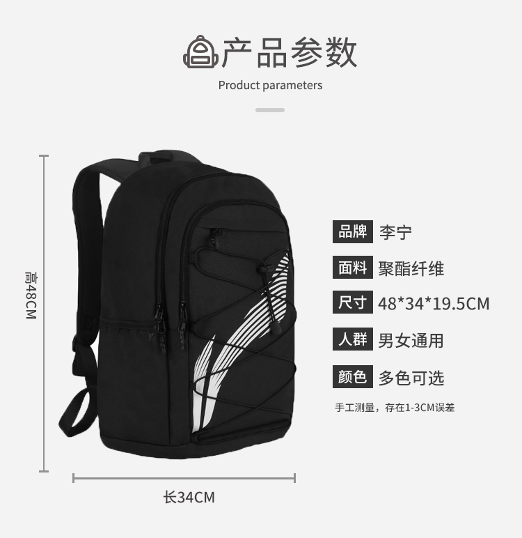 李宁双肩包书包背包男生旅行女初高中大学生大容量休闲篮球运动包