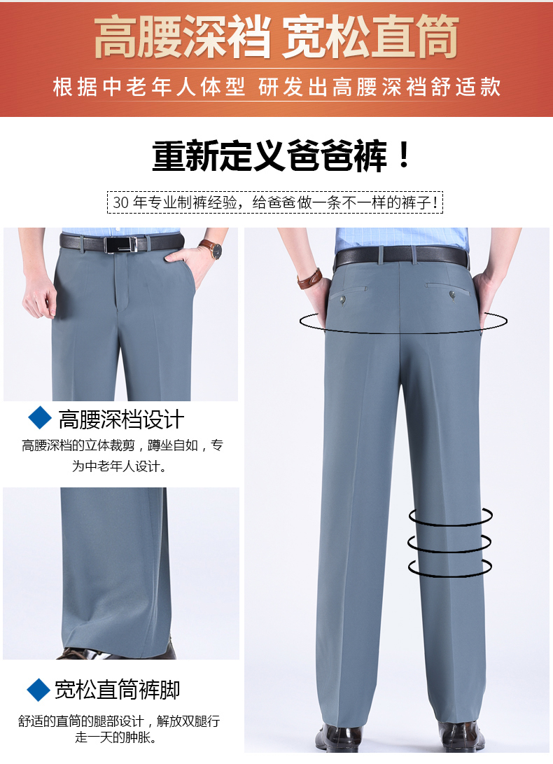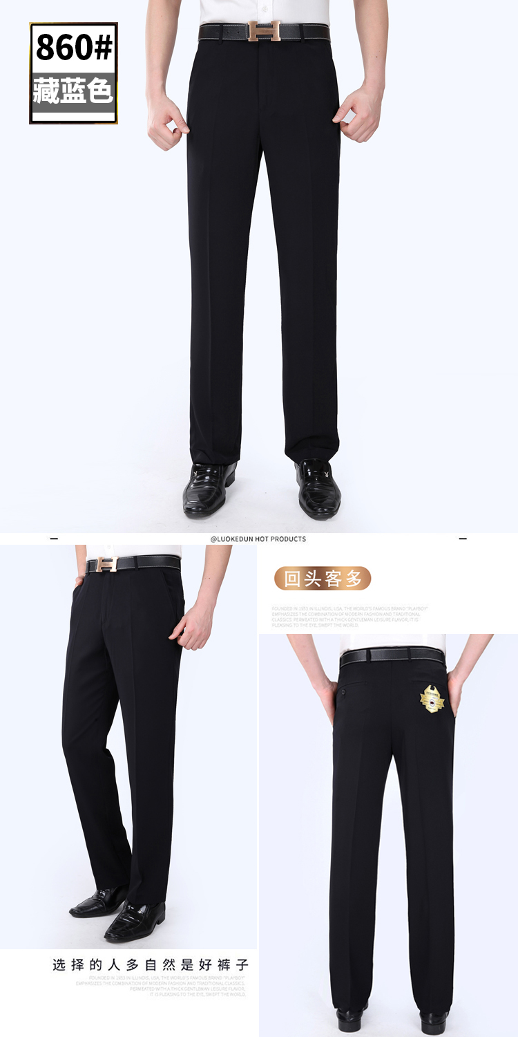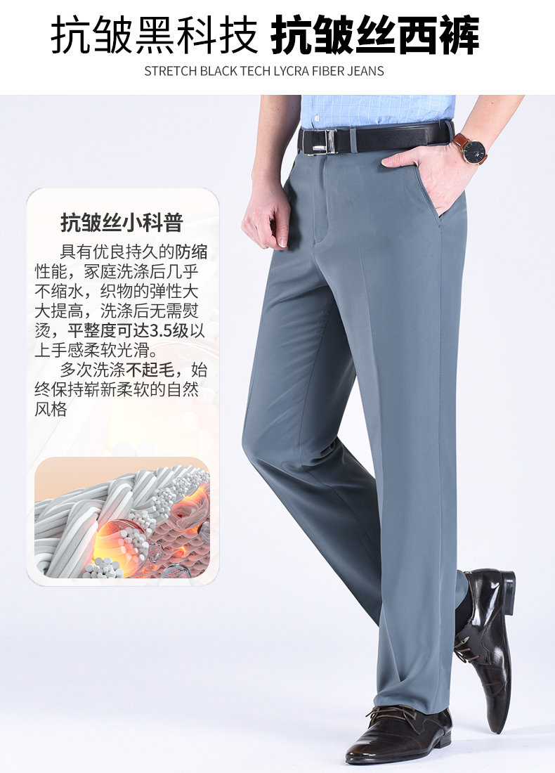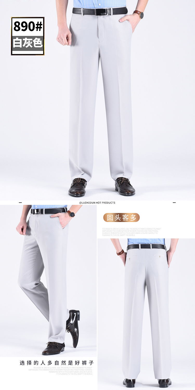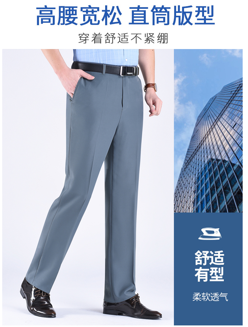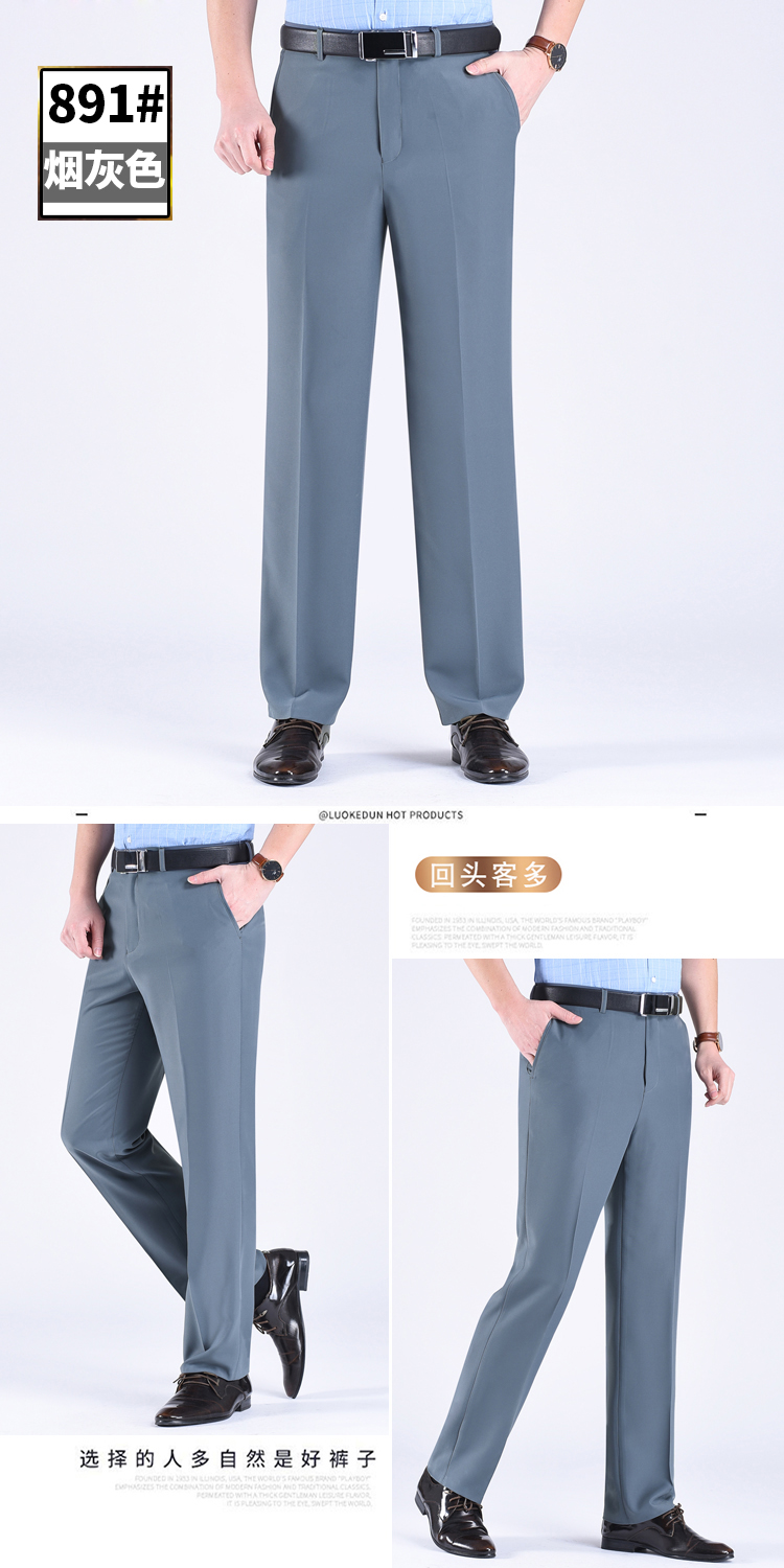 正品桑蚕丝西裤男夏季薄款中老年直筒商务休闲裤抗皱免烫西装男裤