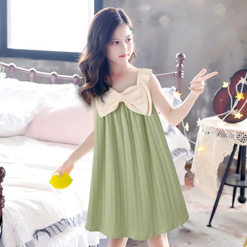 女童吊带睡衣夏季新款儿童吊带睡裙宽松冰丝小学生睡裙中大童睡裙