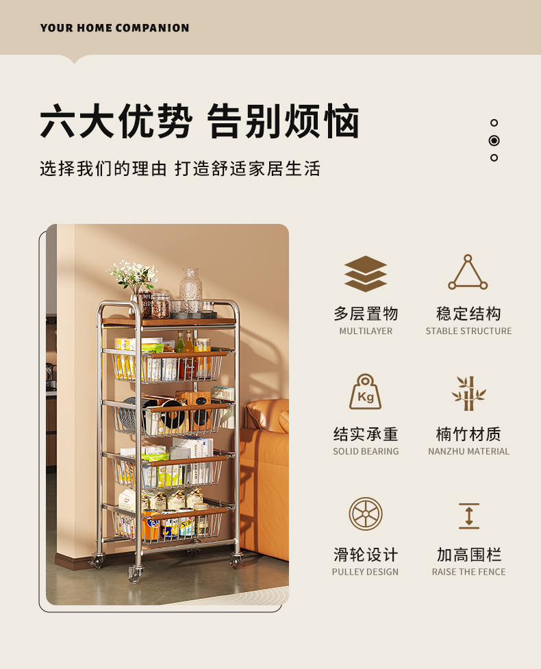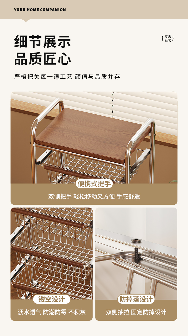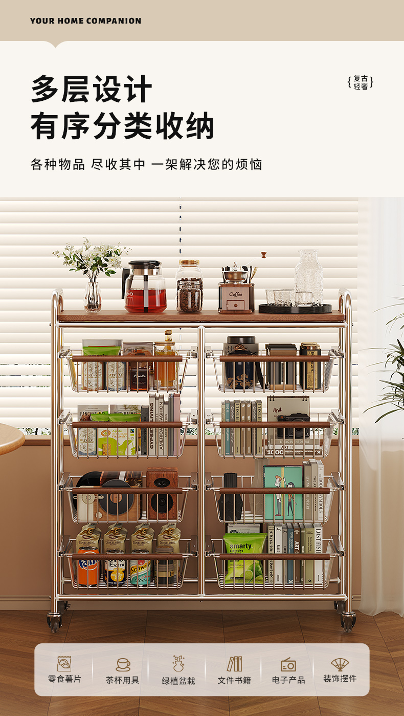中古小推车移动床头置物架客厅茶几沙发旁边几零食厨房收纳架厨房