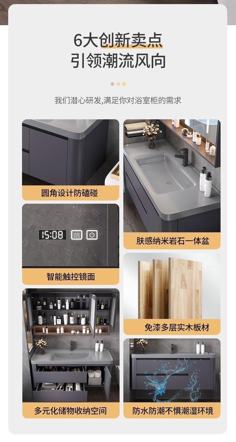 2024新款轻奢肤感一体盆浴室柜组合卫生间洗漱台洗手洗脸盆卫浴柜