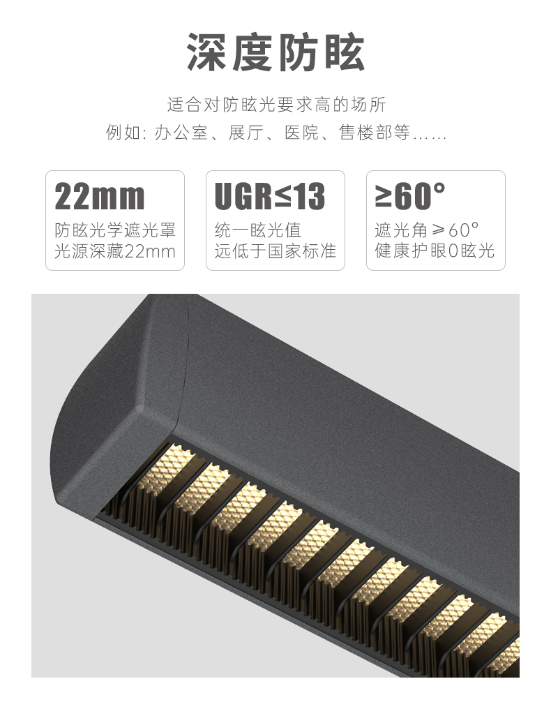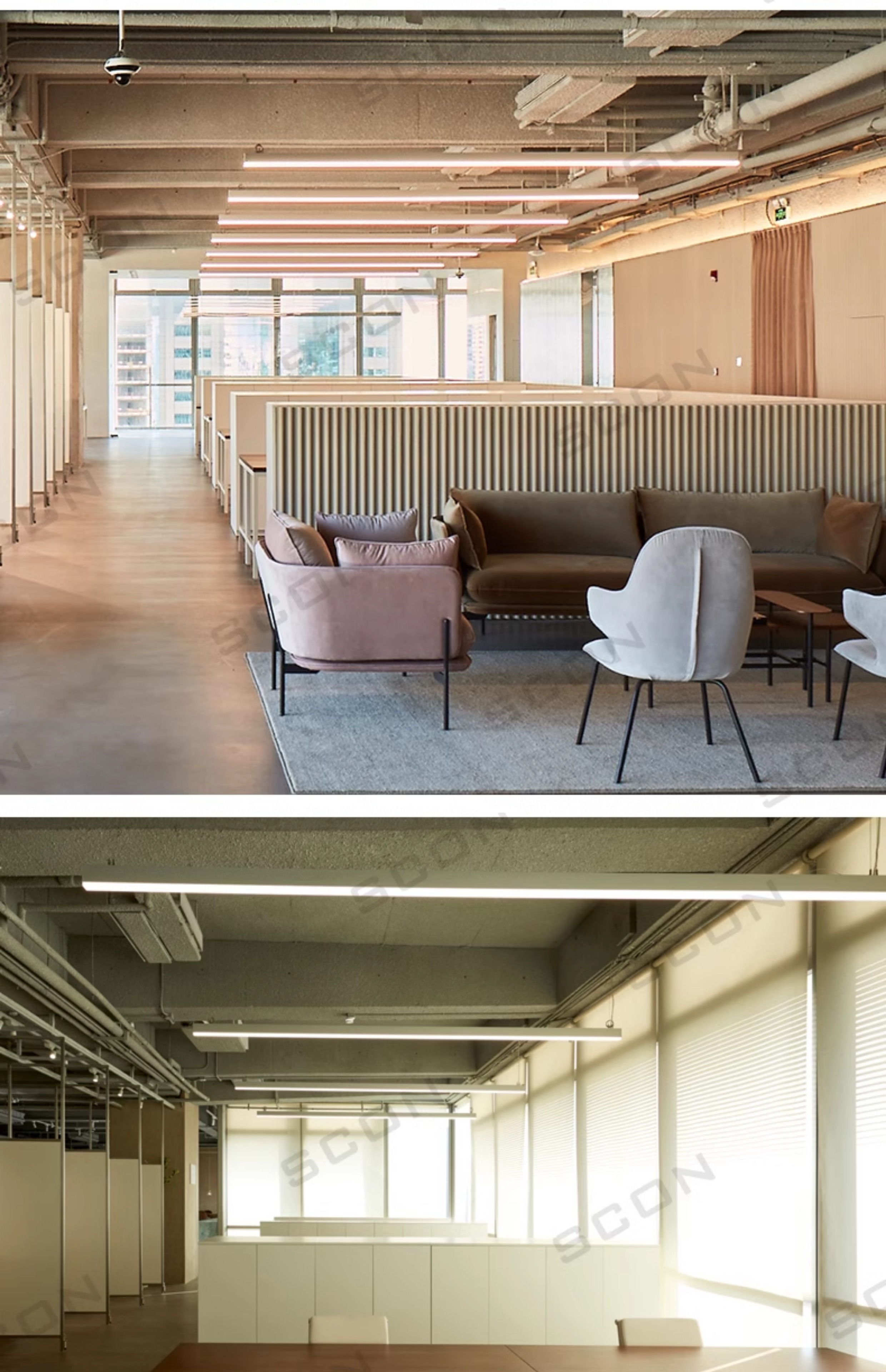 SCON办公室吊灯led长条灯无缝拼接办公区会议室桌面灯工位办公灯