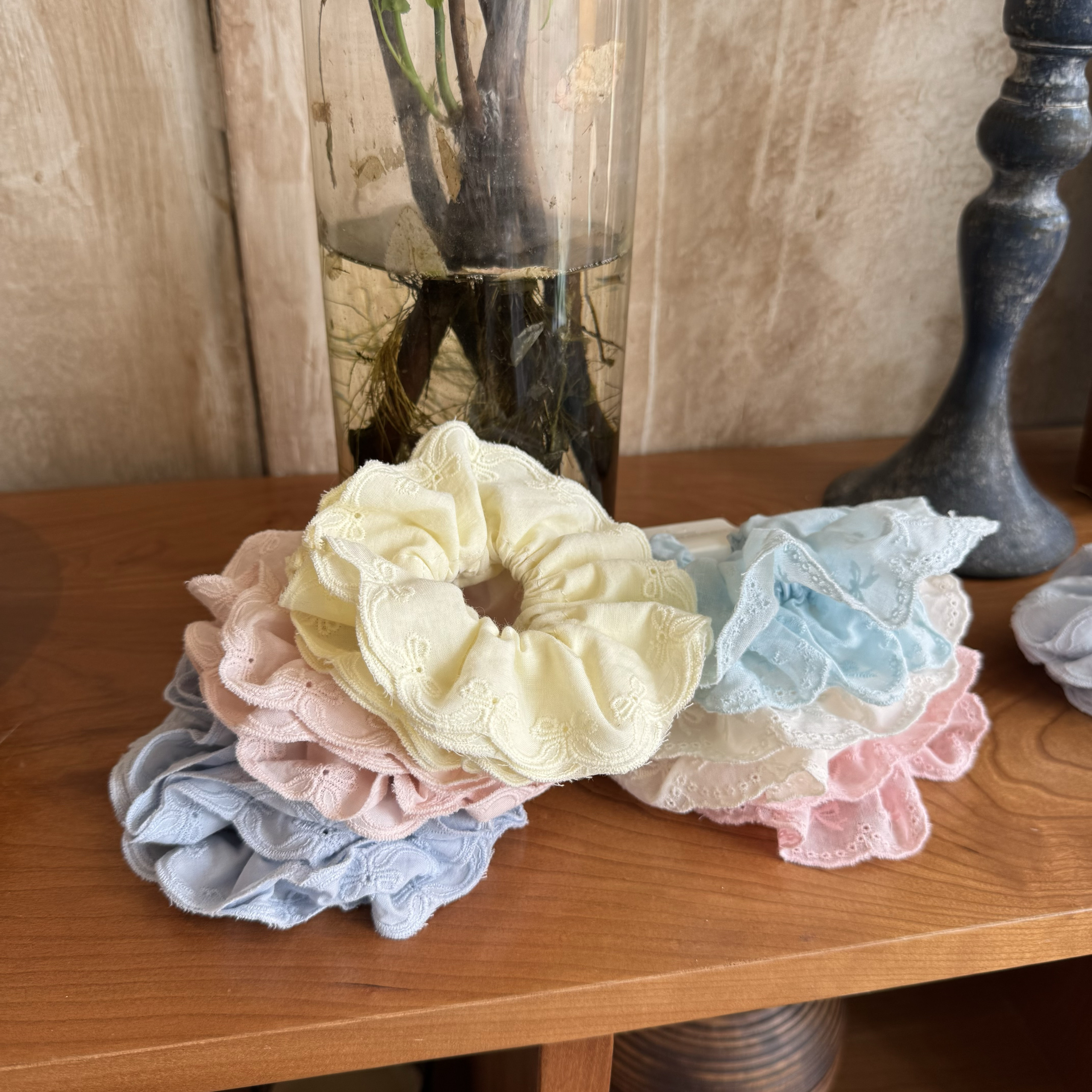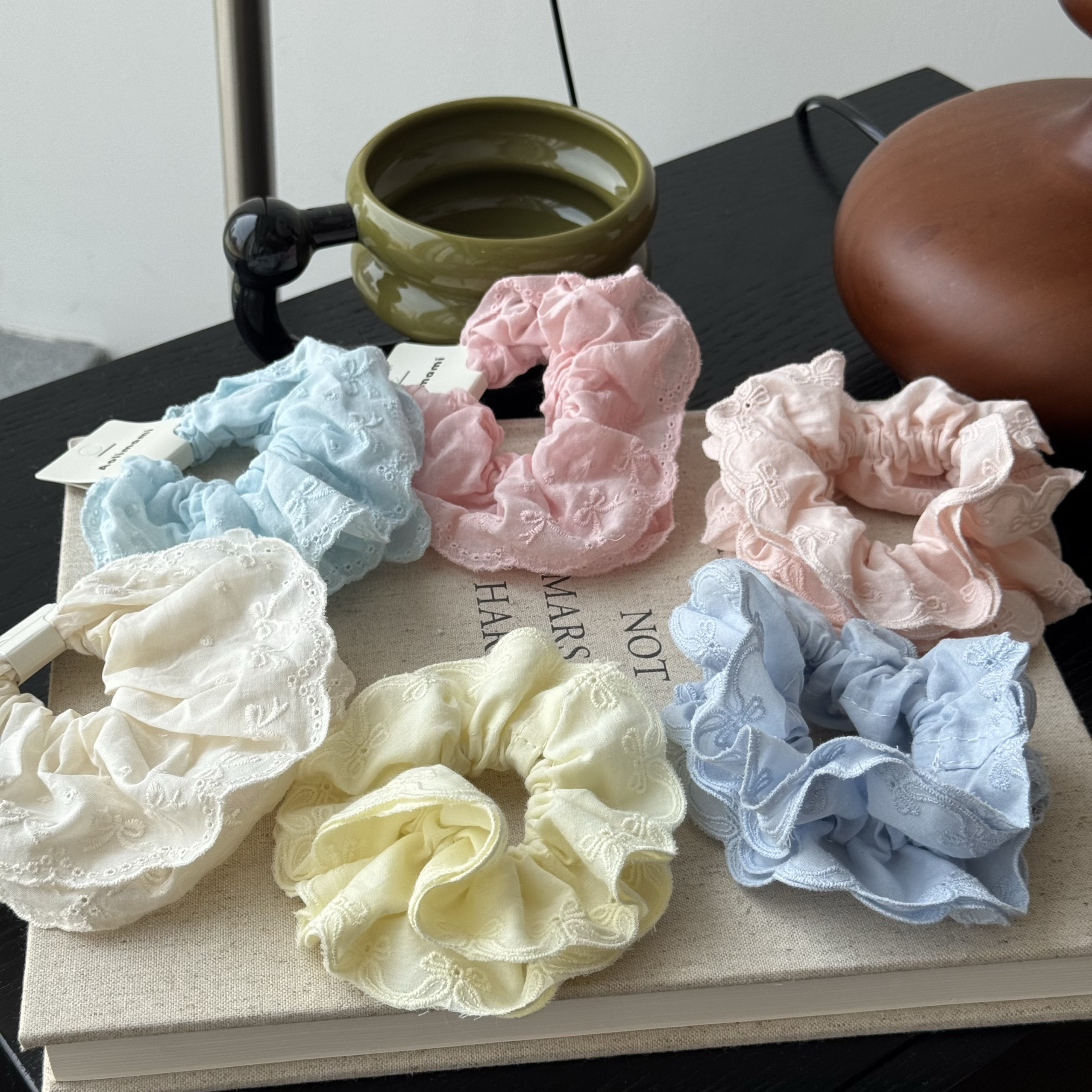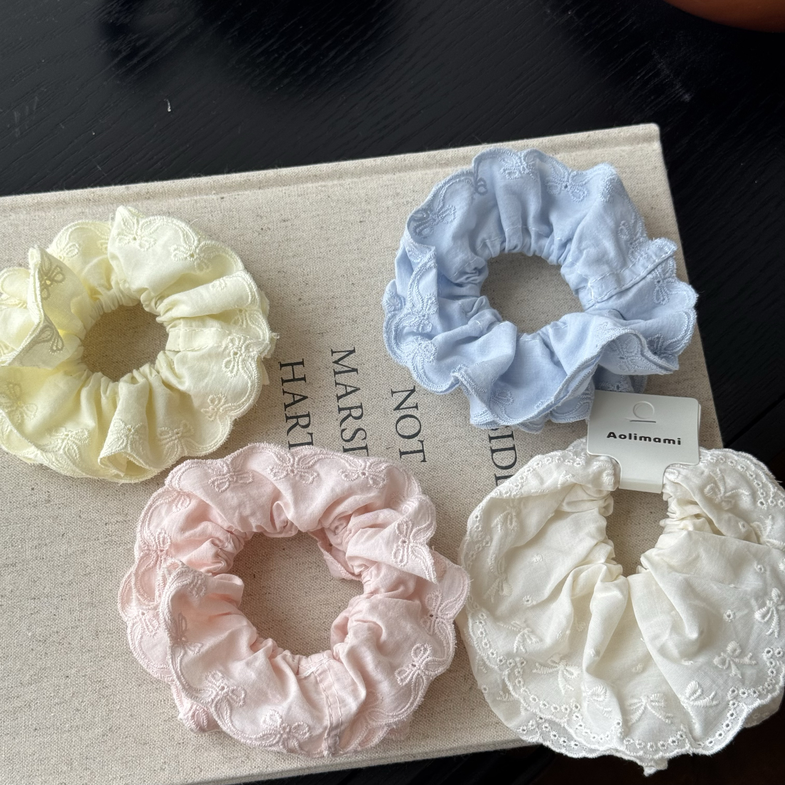 蕾丝镂空双层儿童大肠圈 韩版奶油色甜美布艺女童发圈 宝宝马尾绳