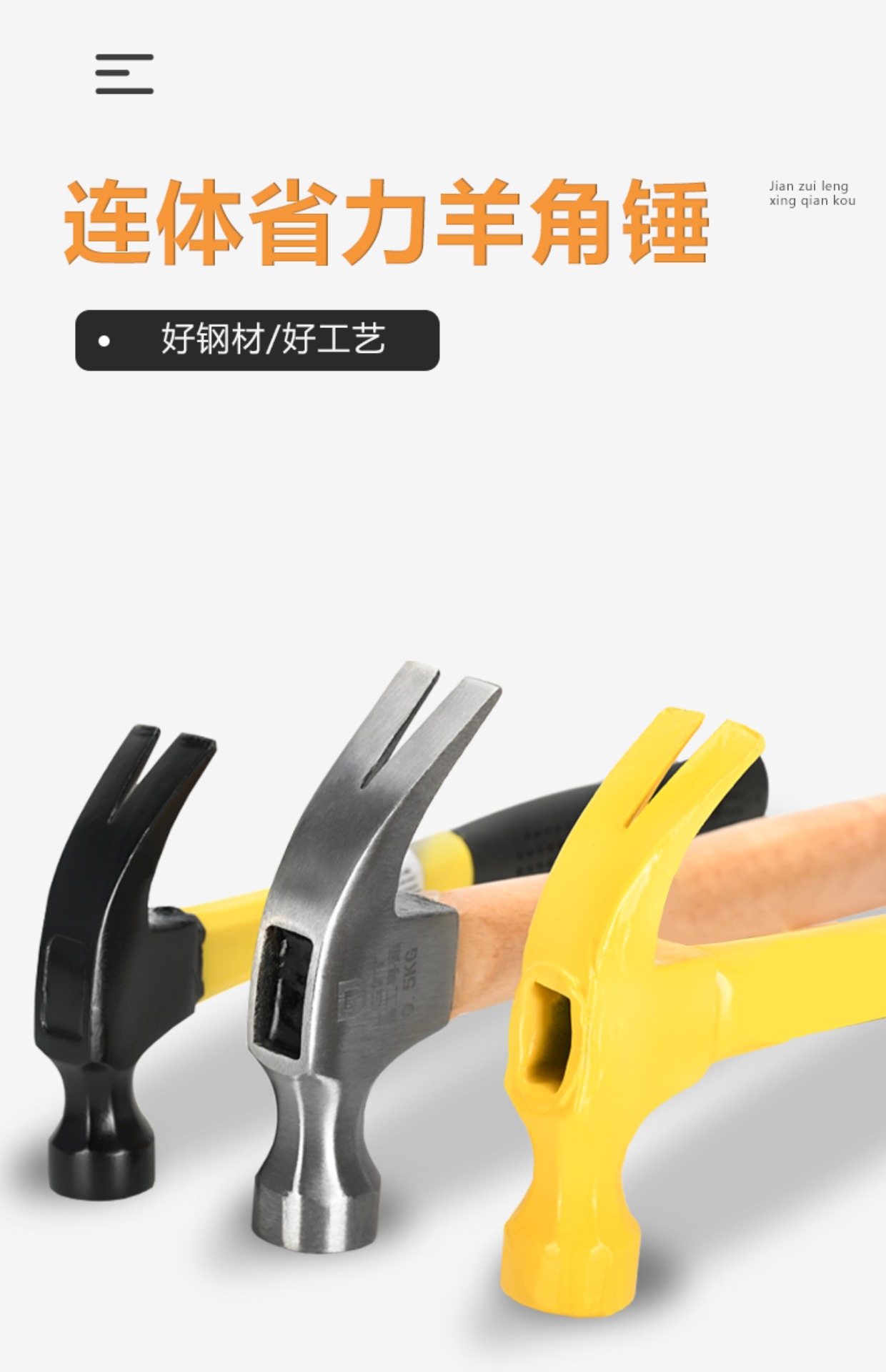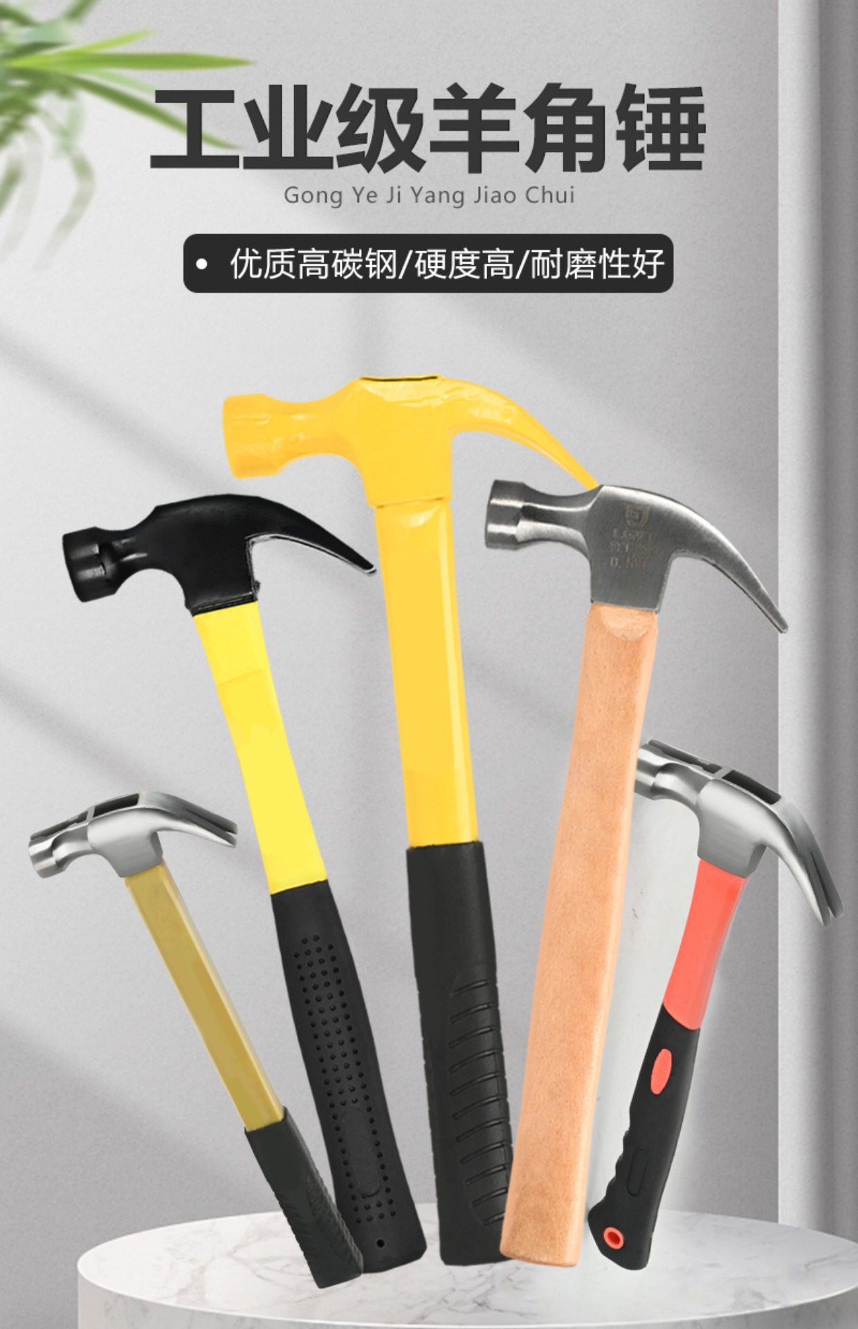 一体羊角锤碳钢木工专用多功能户外榔头家用小锤子工具木手柄铁锤
