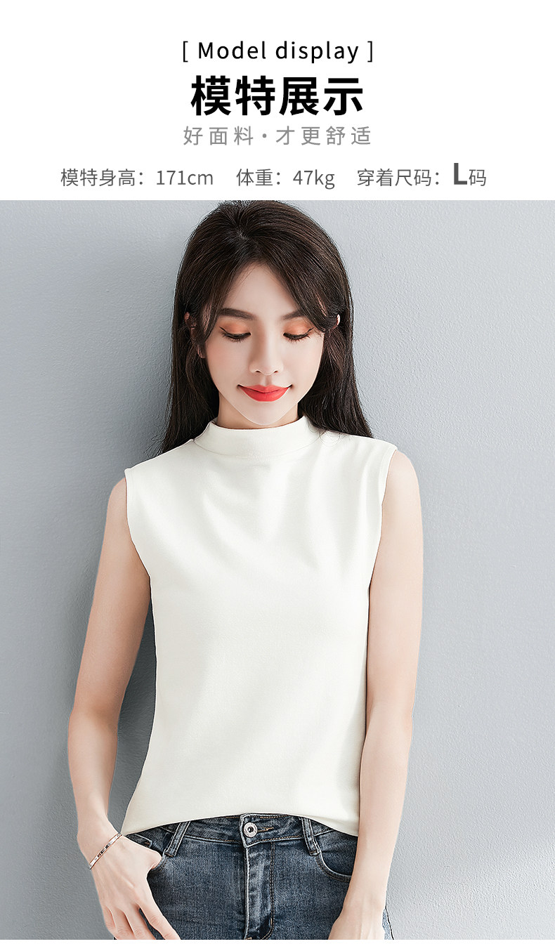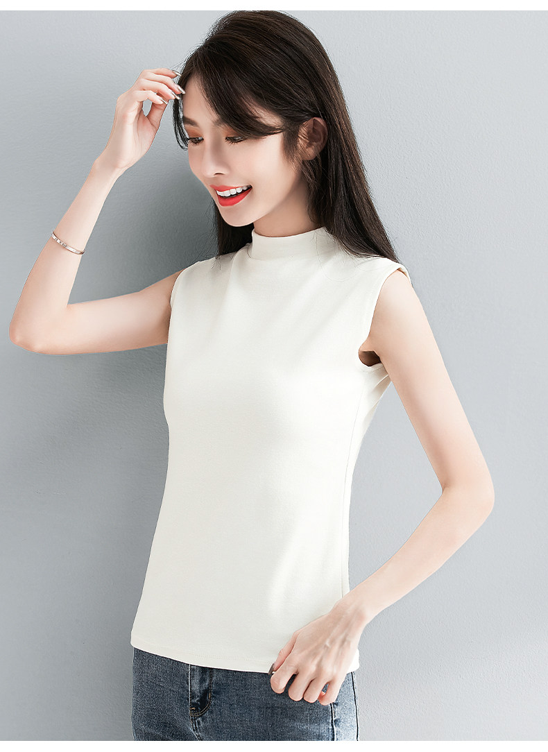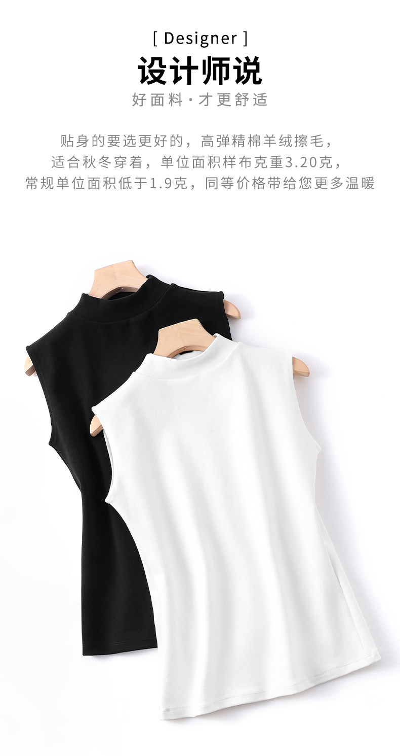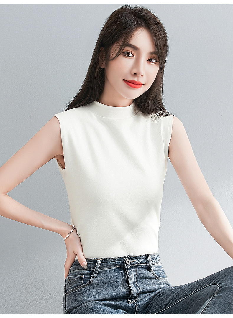 白色小半高领背心女内搭秋冬新款加厚保暖修身洋气无袖t恤打底衫
