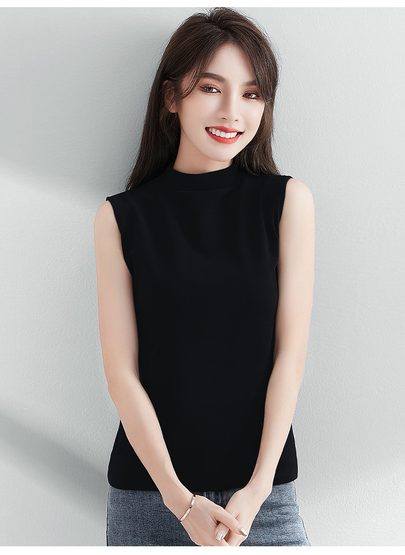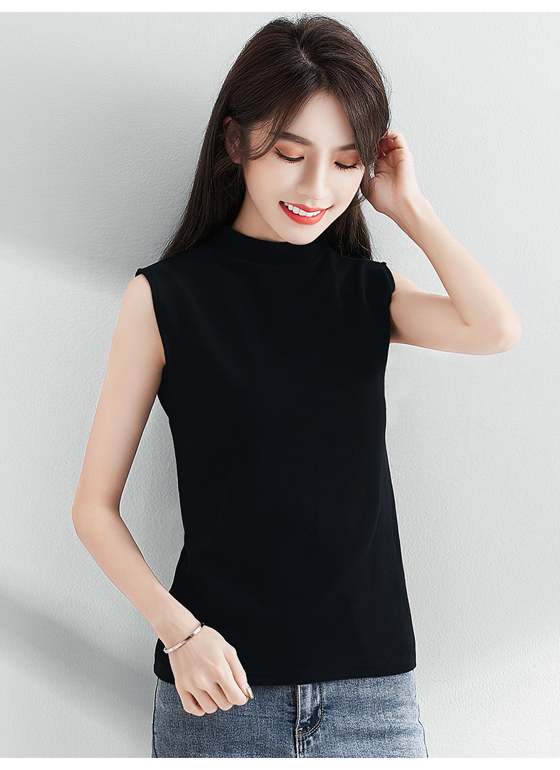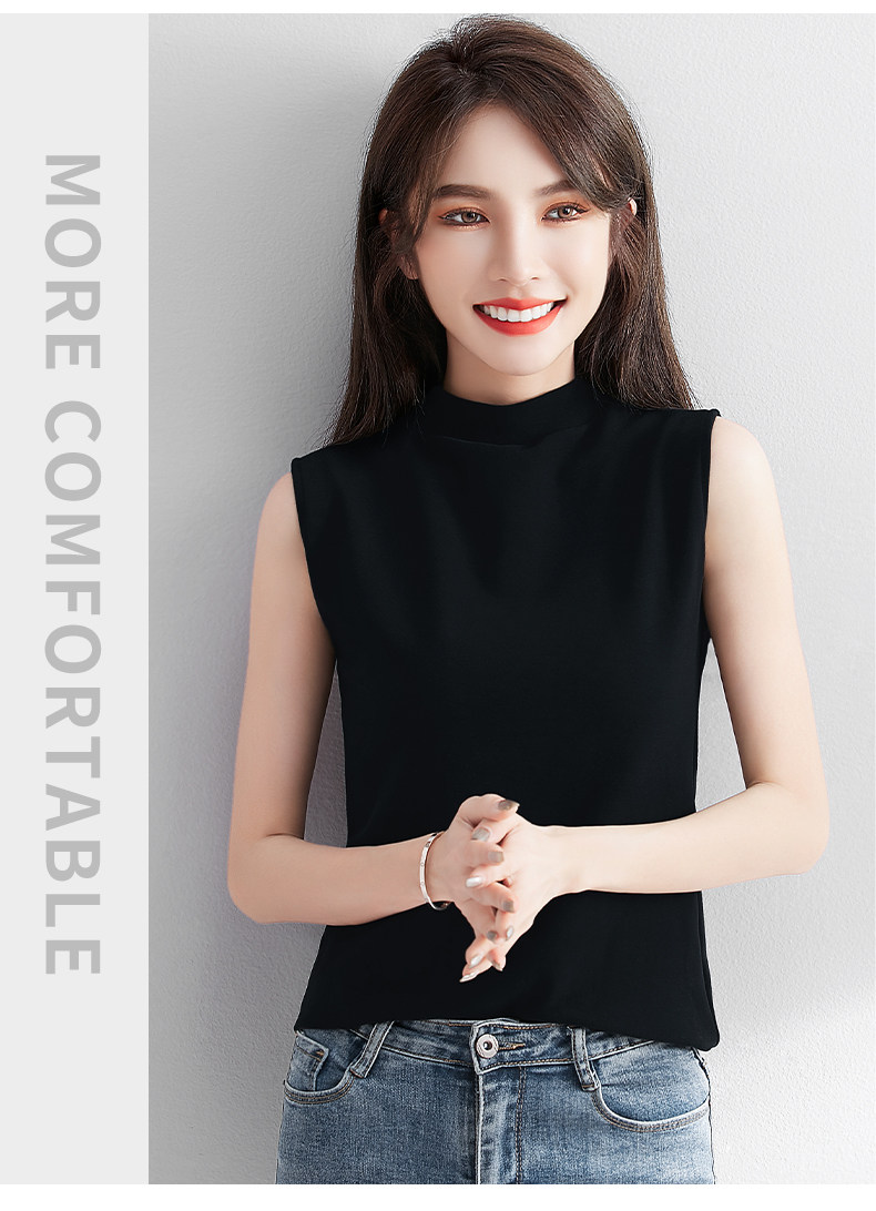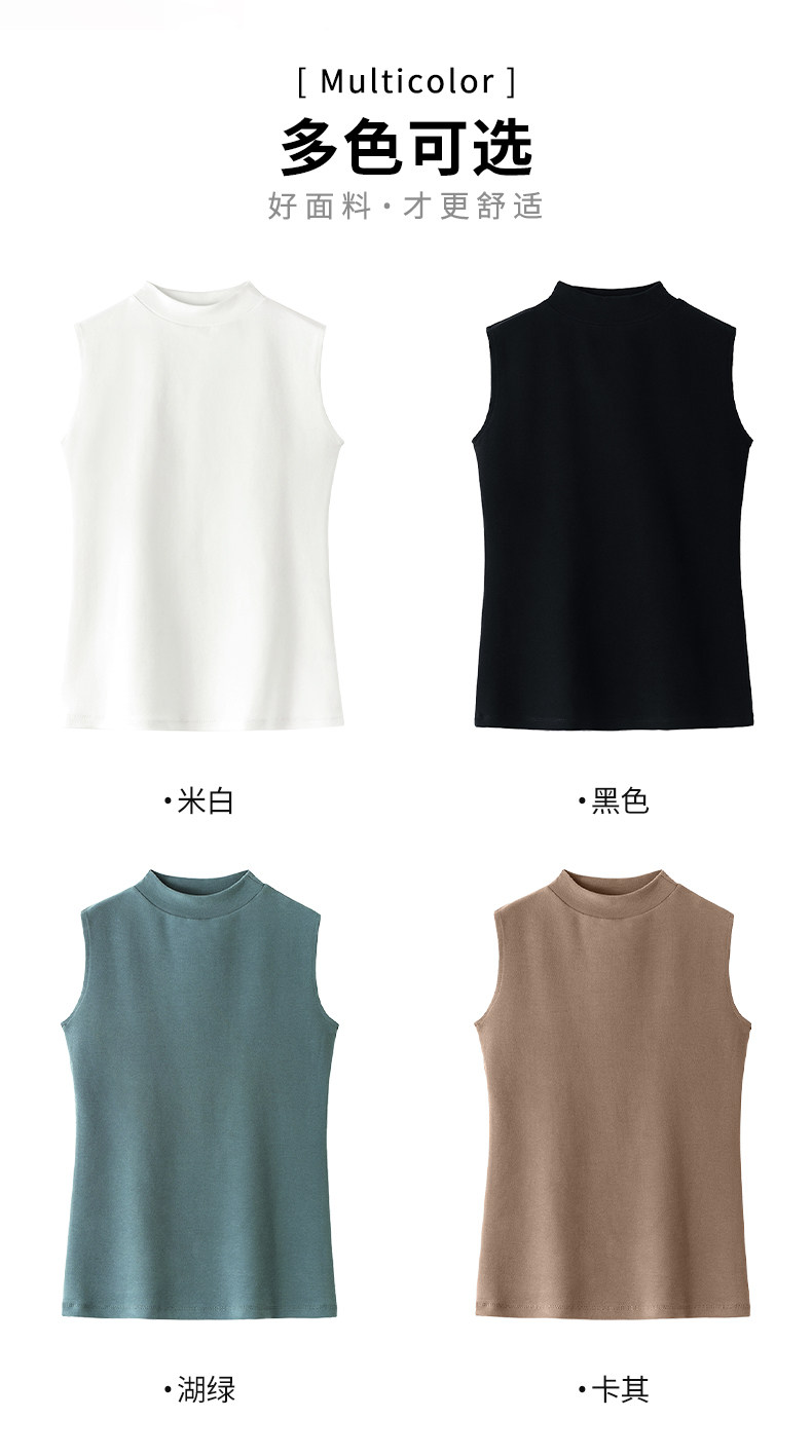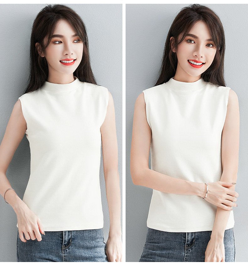 白色小半高领背心女内搭秋冬新款加厚保暖修身洋气无袖t恤打底衫