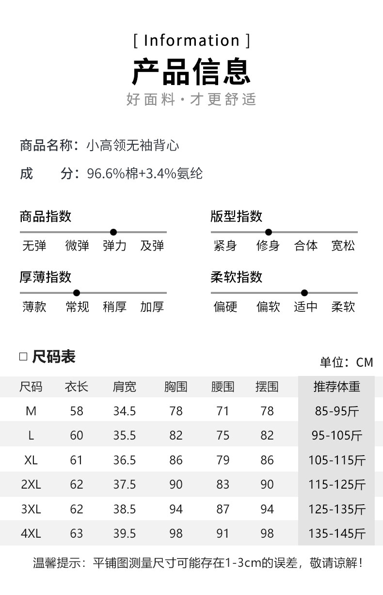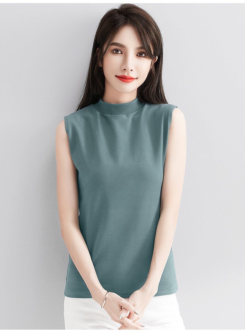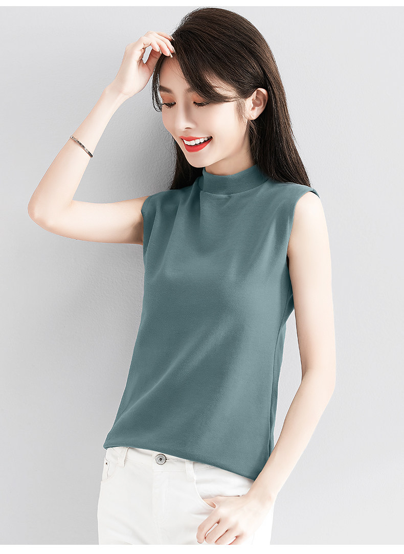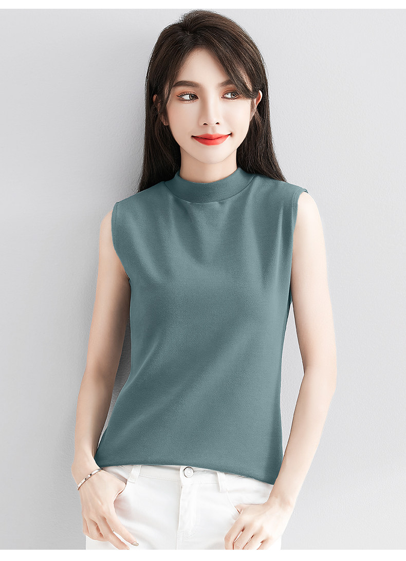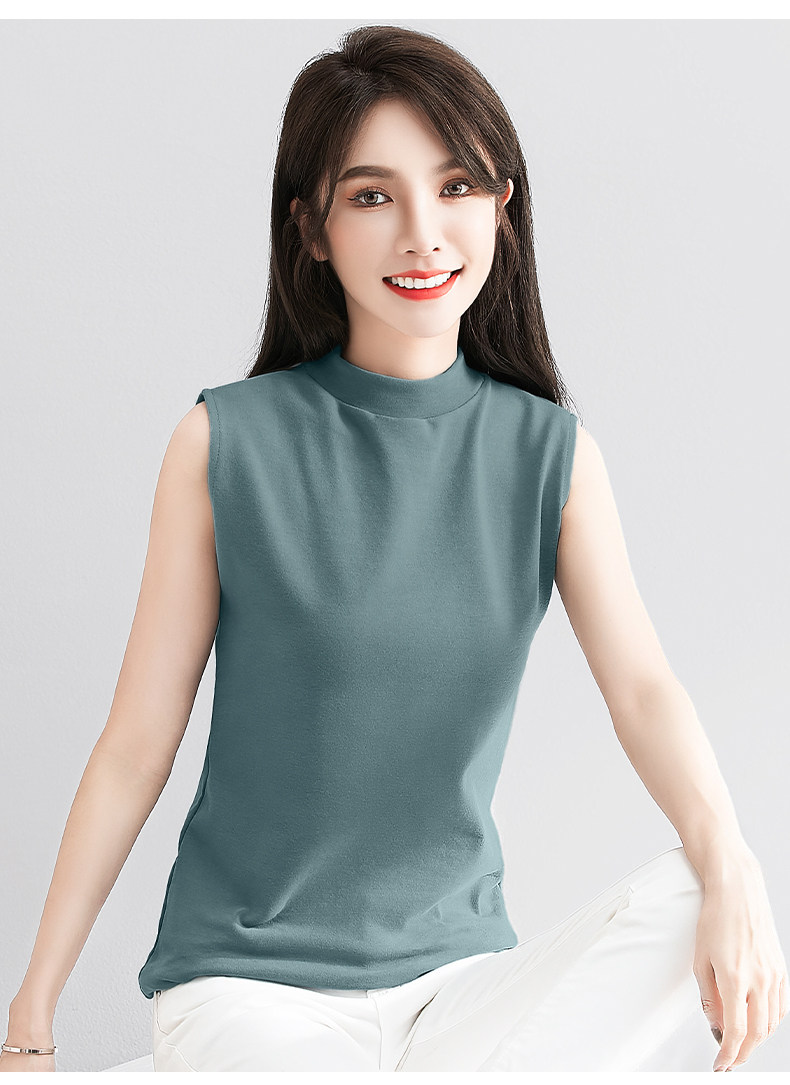 白色小半高领背心女内搭秋冬新款加厚保暖修身洋气无袖t恤打底衫