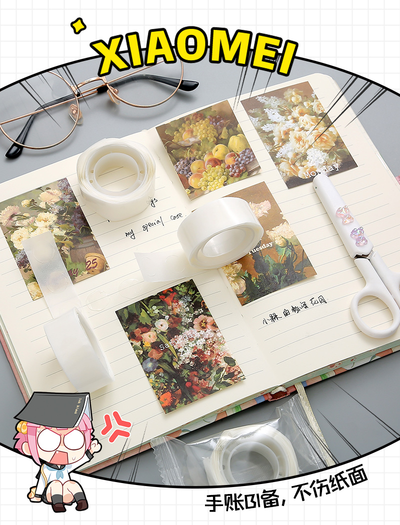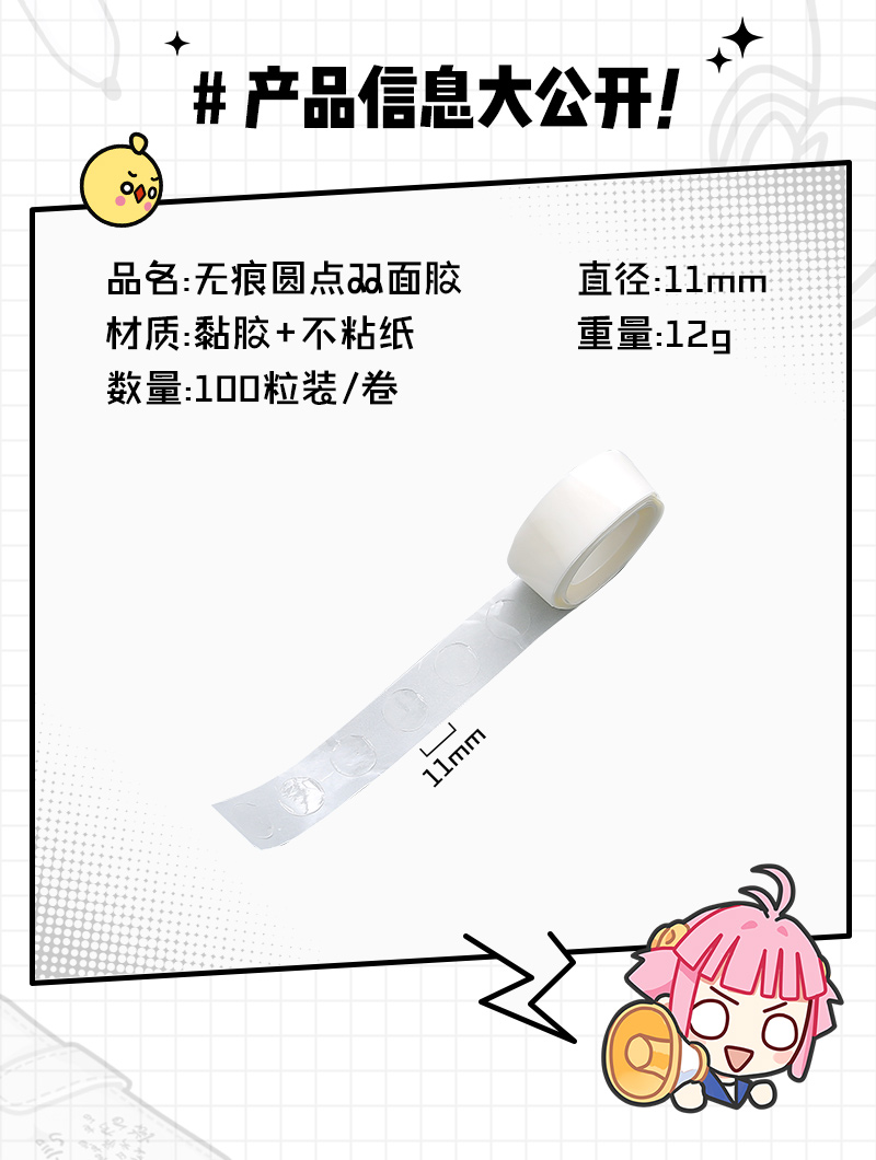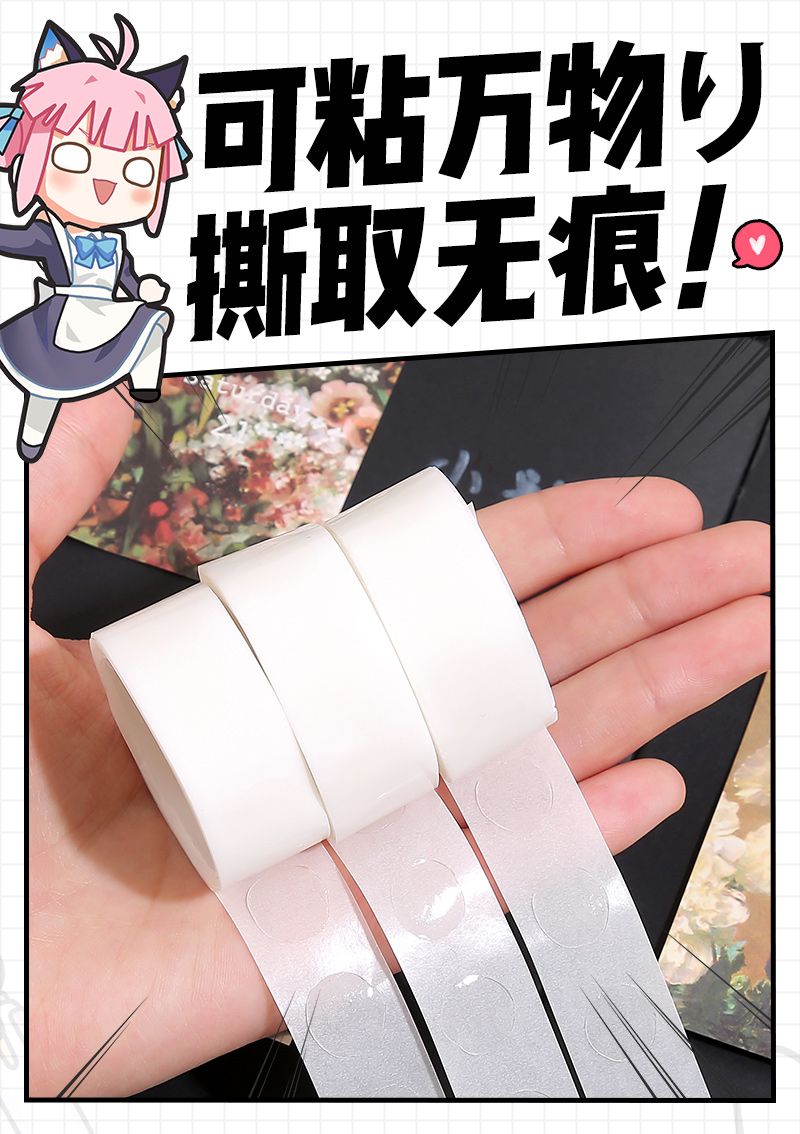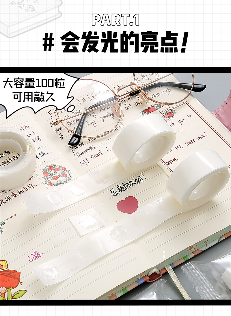 100粒无痕圆点双面胶贴片透明胶带纳米点点胶学生儿童手工手账贴纸胶卷胶点贴春联粘气球专用不留胶