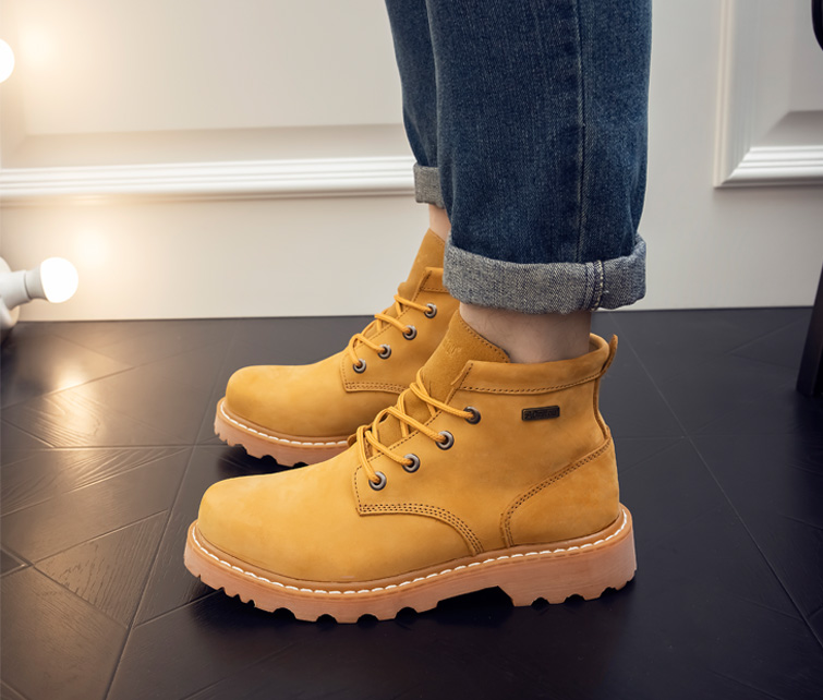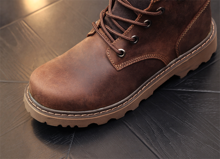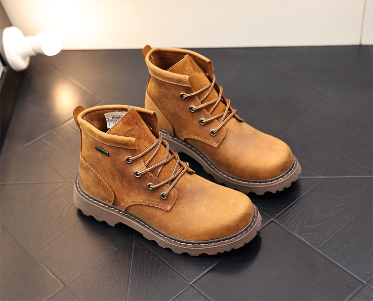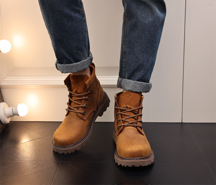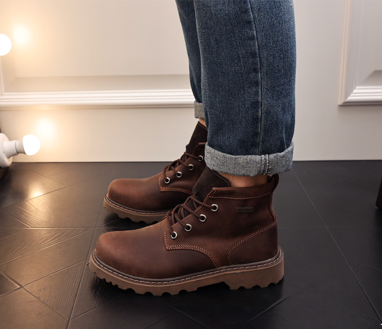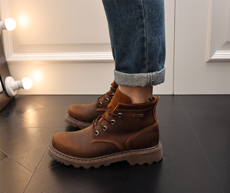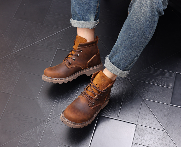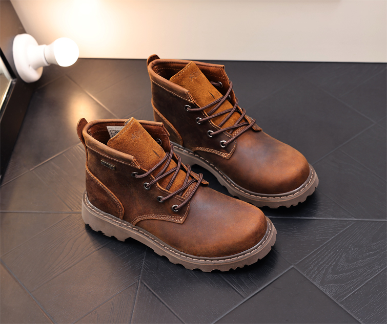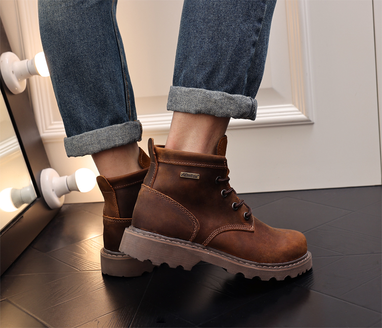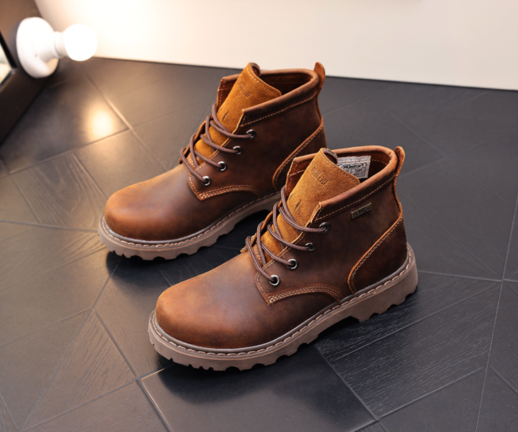 真皮牛皮马丁靴复古英伦风圆头短靴工装鞋男士休闲鞋防水靴子厚底