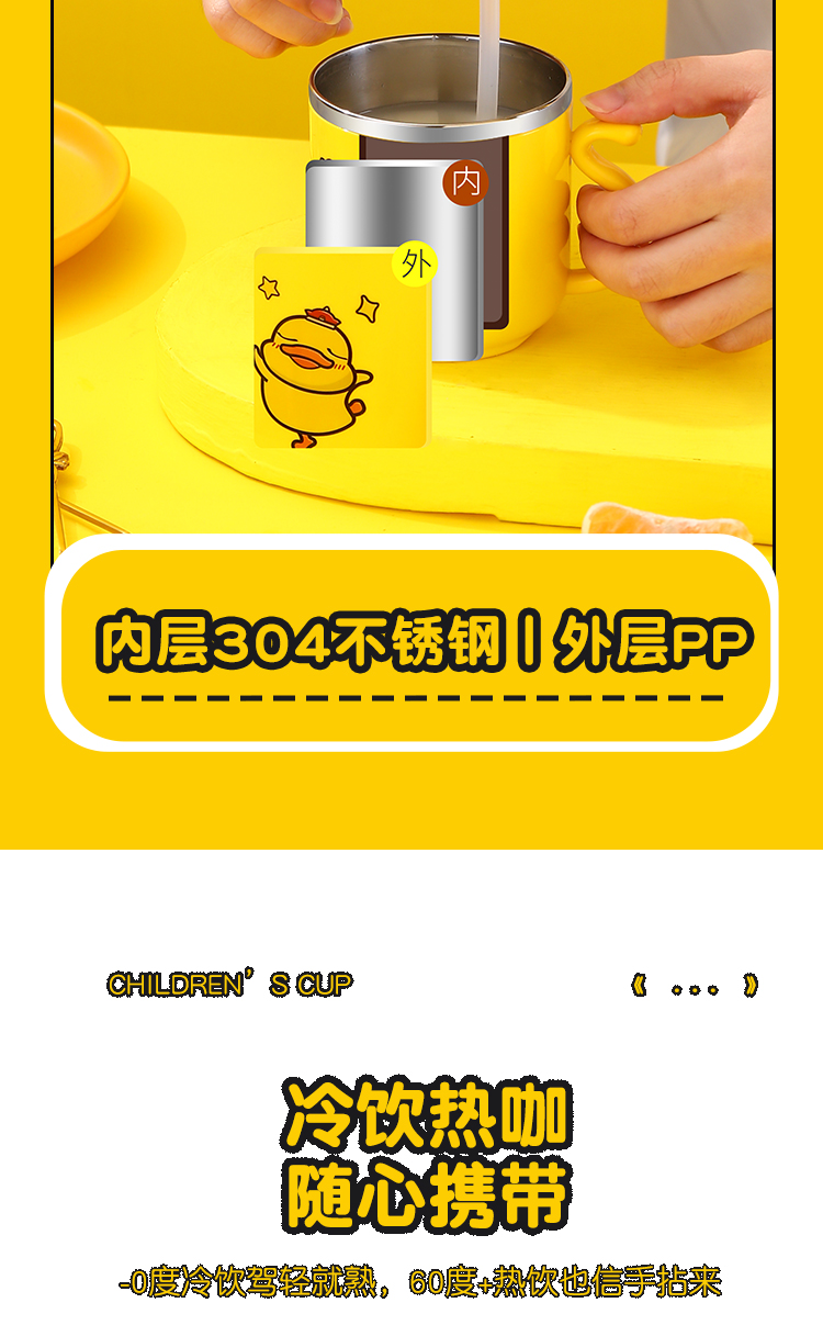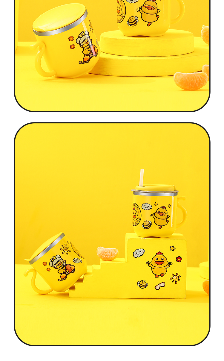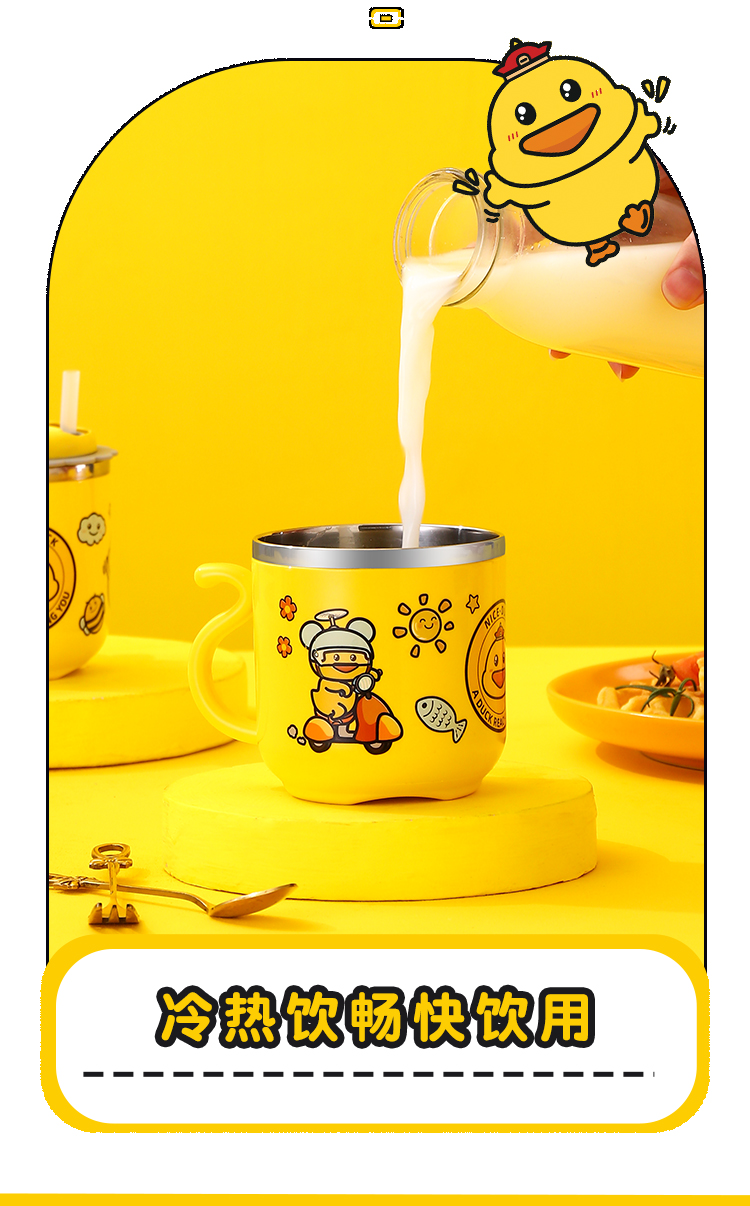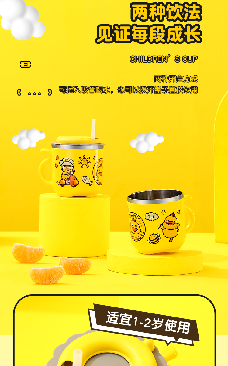 儿童牛奶杯宝宝幼儿小孩牛奶带盖刻度不锈钢吸管水杯保温双耳喝水