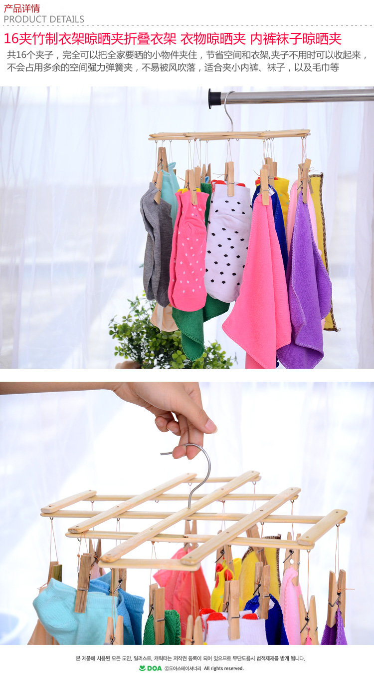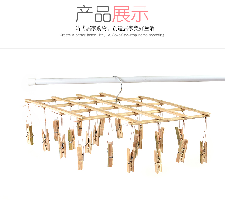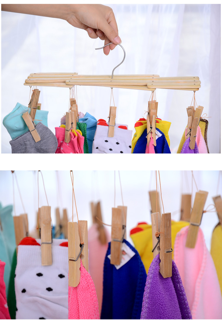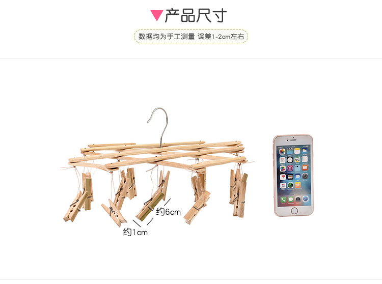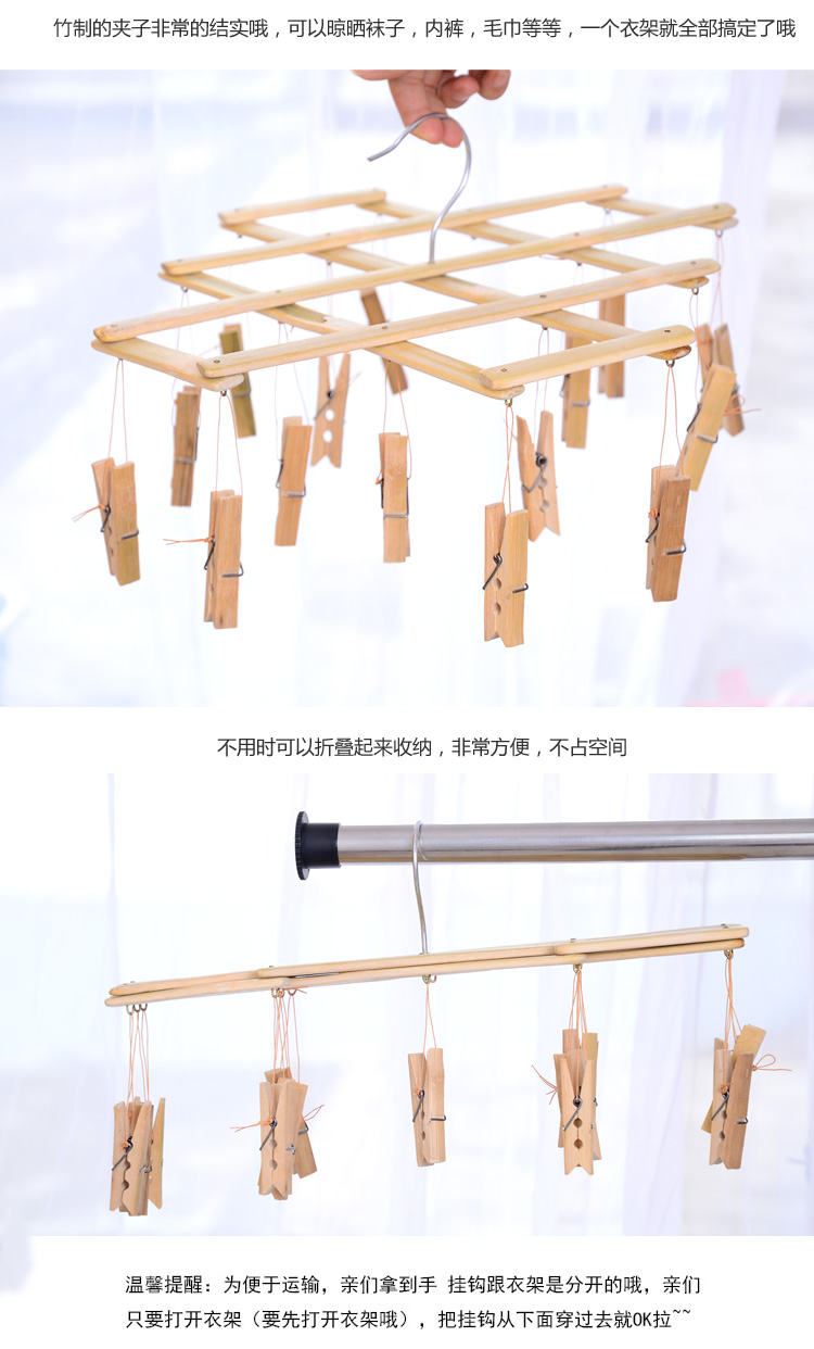 家用多功能竹制折叠晾衣架 夹子挂衣架 袜子内衣晒衣夹晾衣撑子
