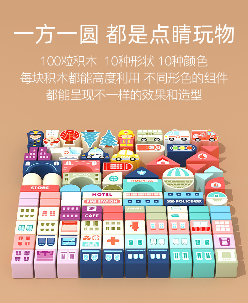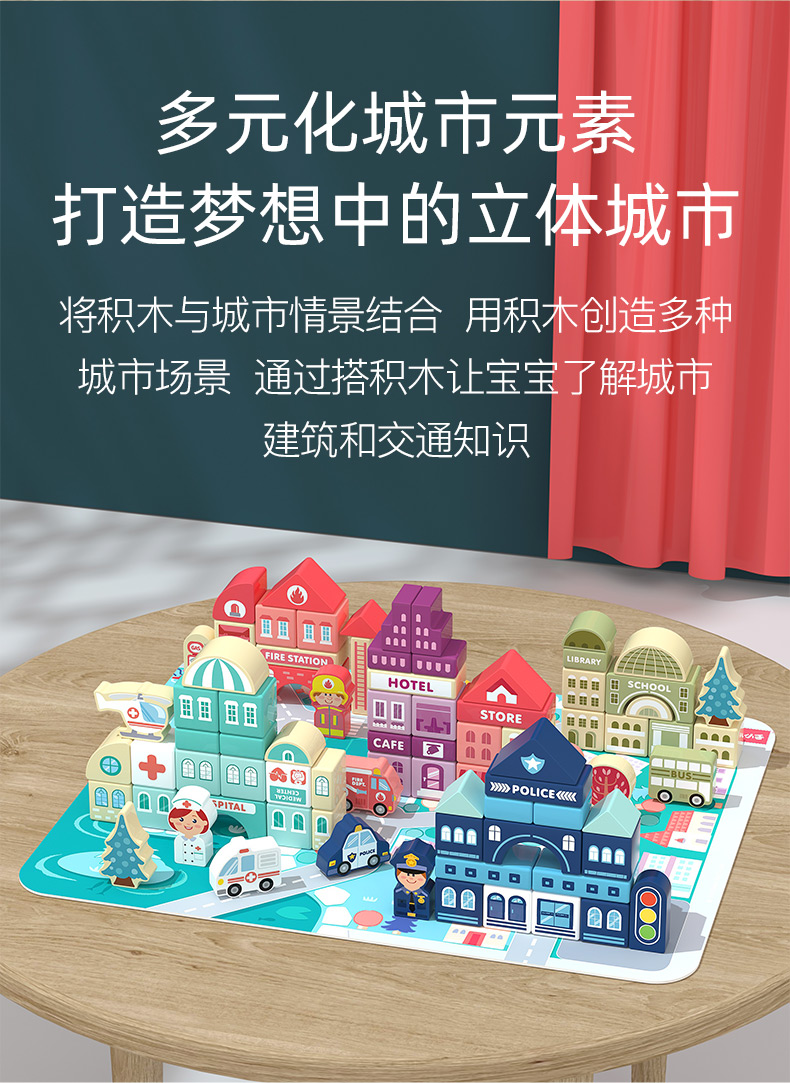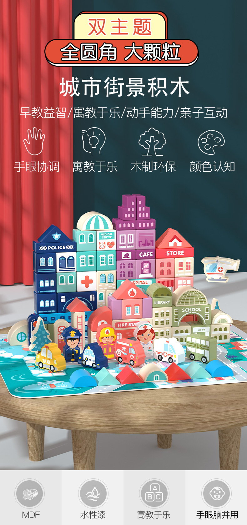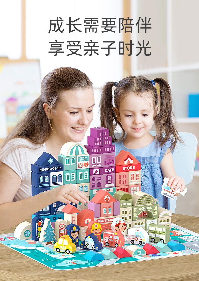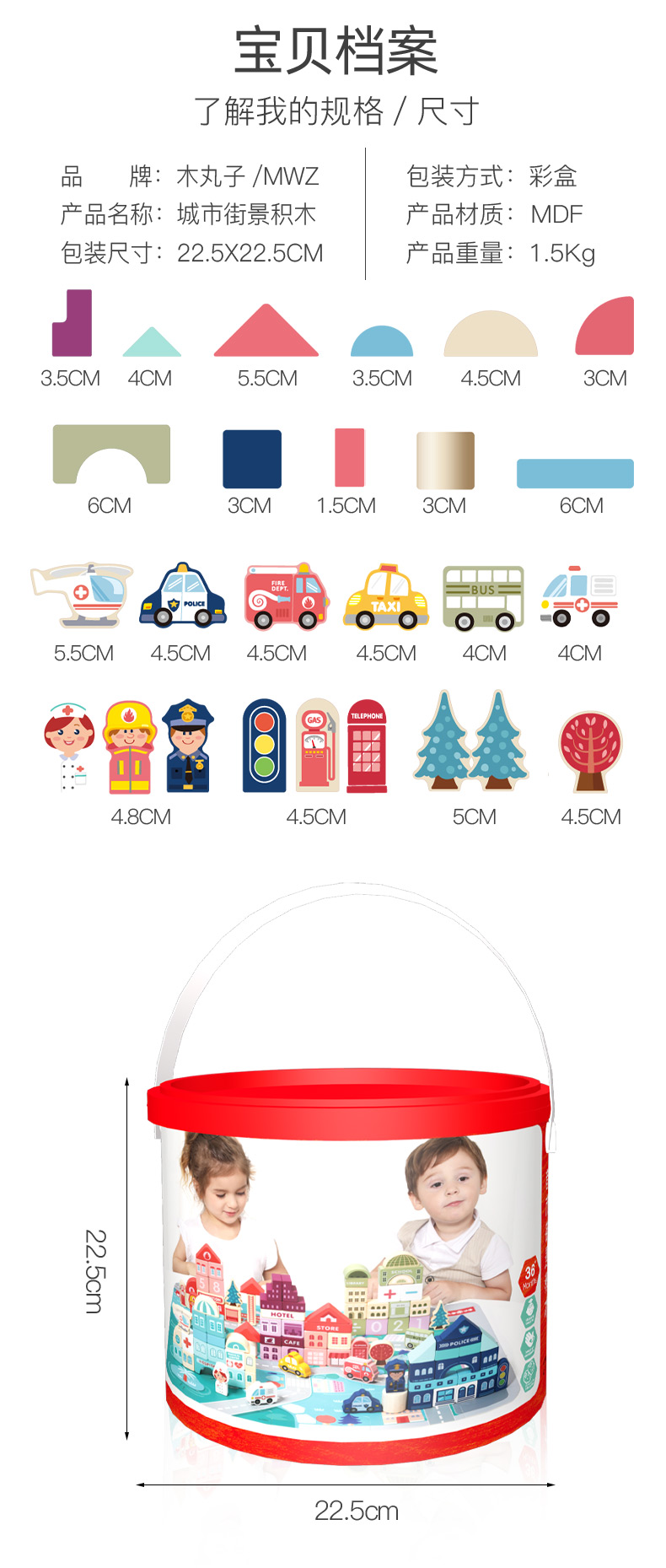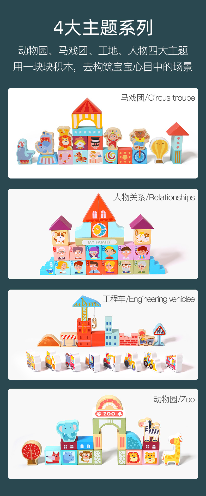 婴幼儿童积木桶拼装益智大颗粒木头玩具宝宝木制大拼图1一2岁3到6