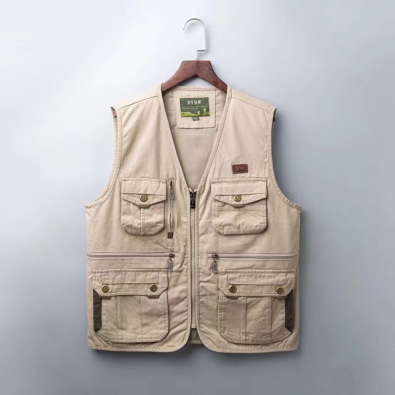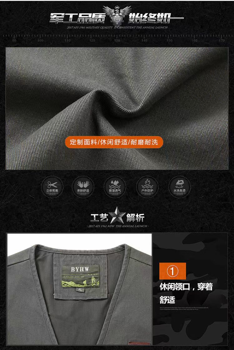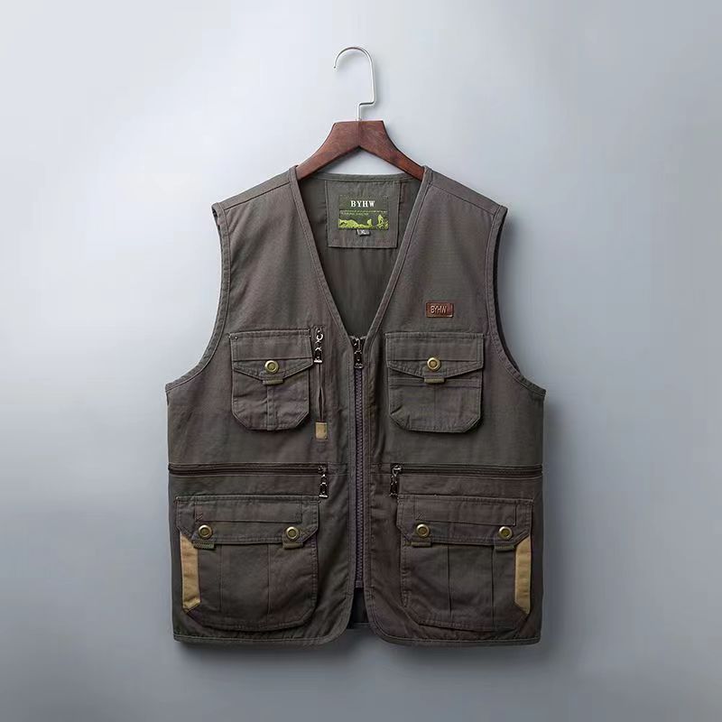 男士马甲外套纯棉中老年春秋马夹宽松坎肩户外多口袋爸爸钓鱼背心