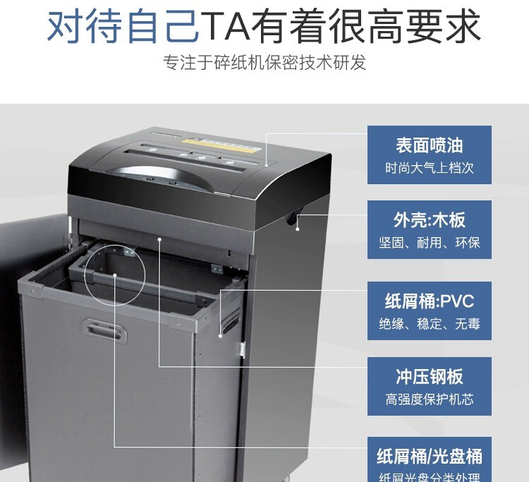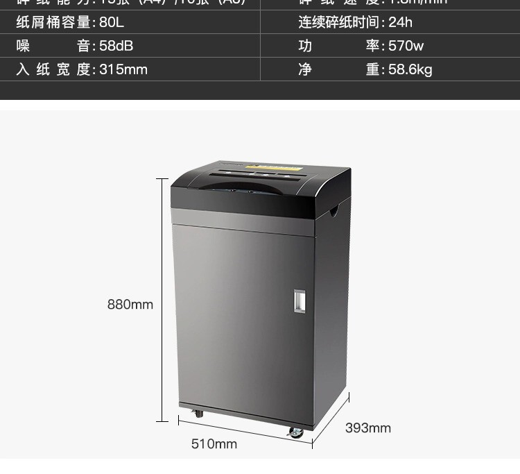 齐心S620巨无霸全能碎纸机2×6mm/12张纸/A3/A4规格/80L/四入