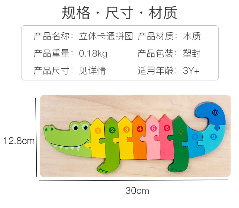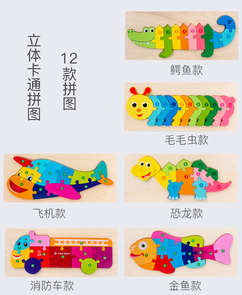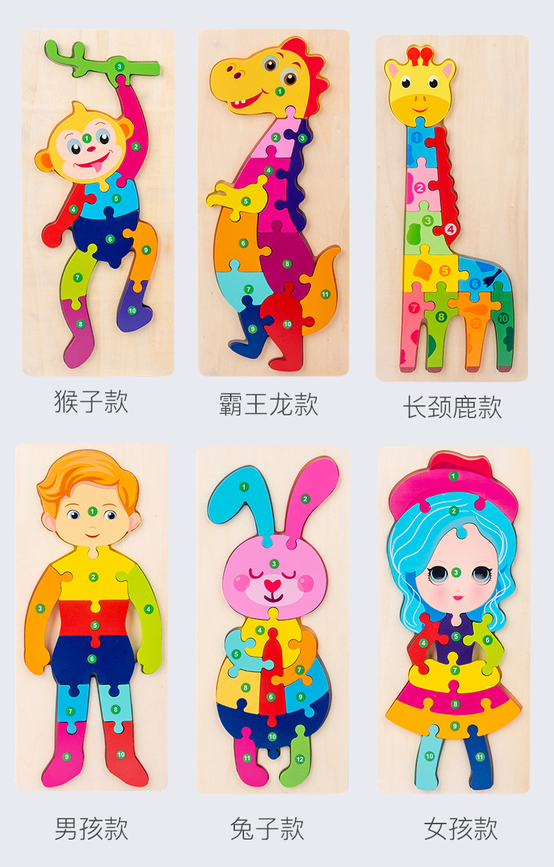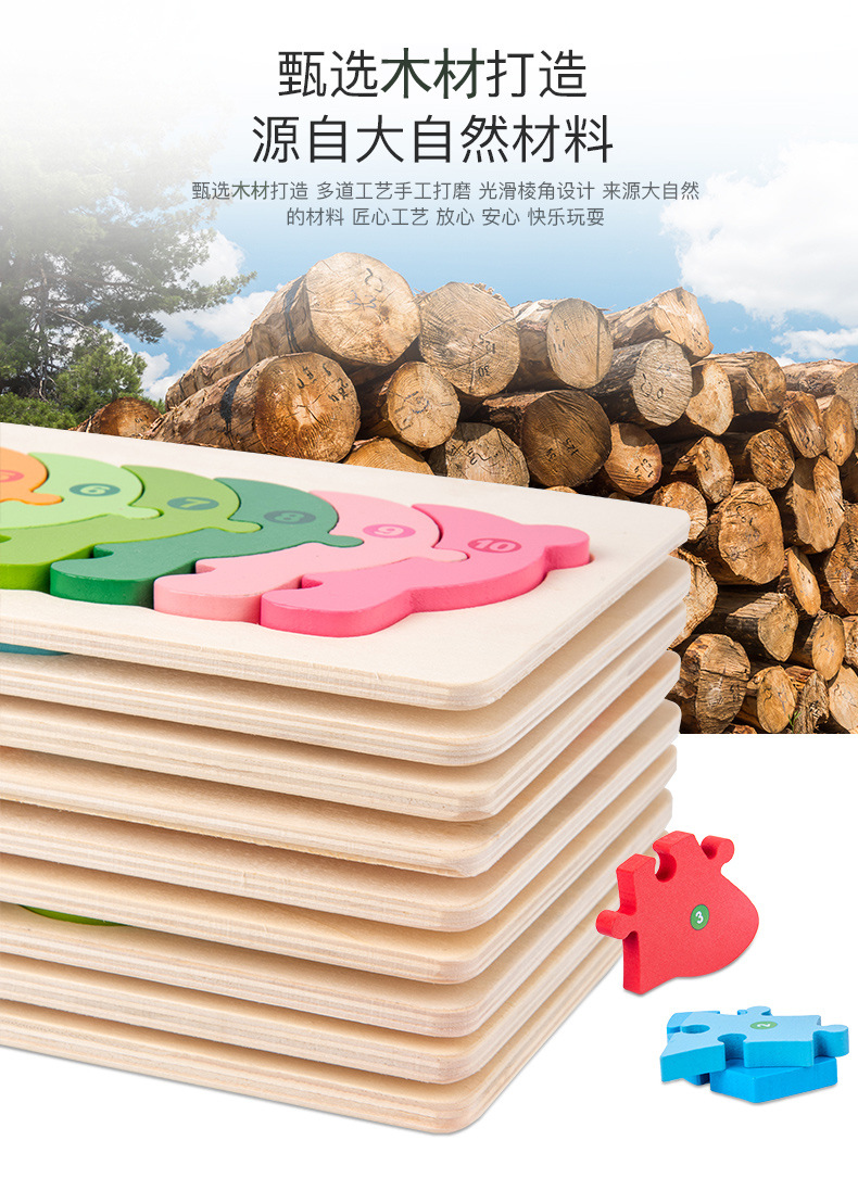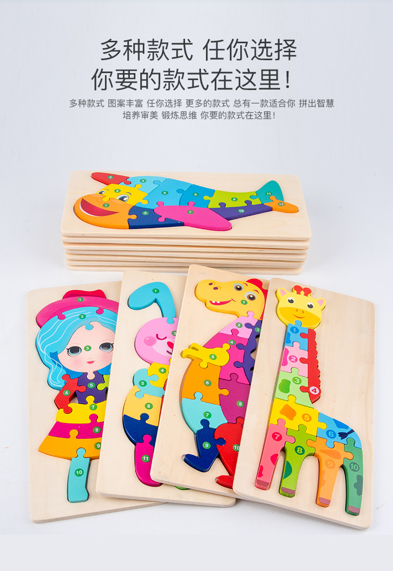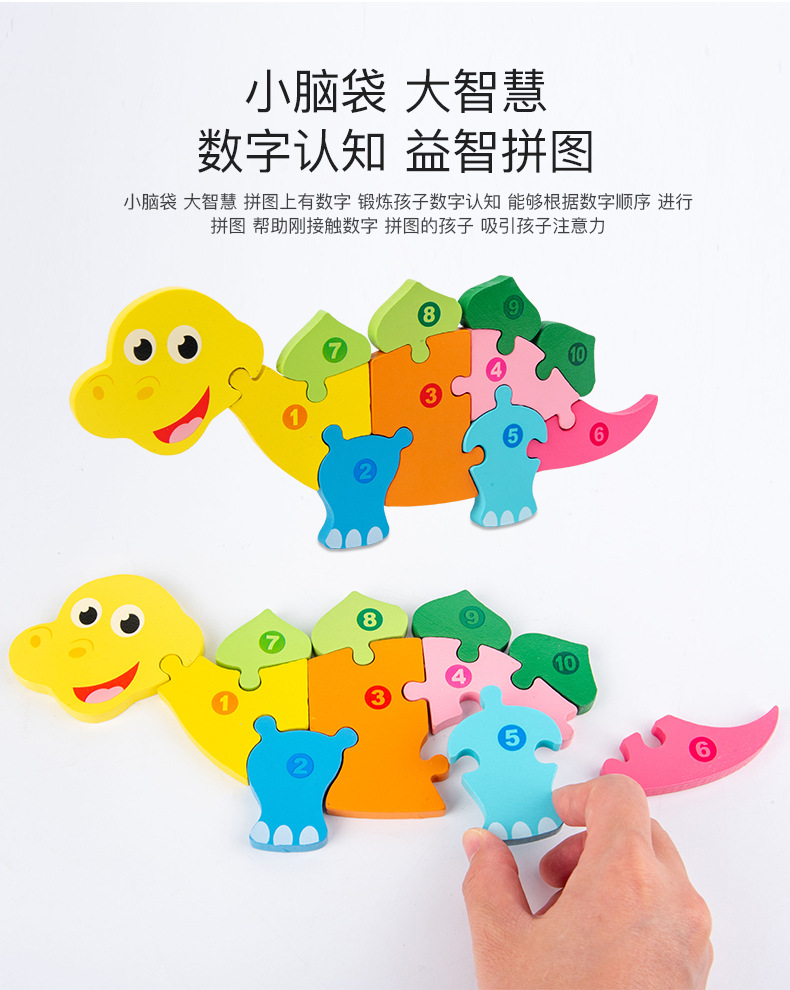 热卖10款26个数字拼图动物拼图卡通儿童数字认知启蒙拼板木制玩具