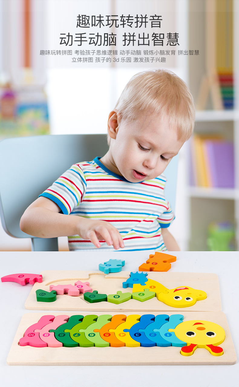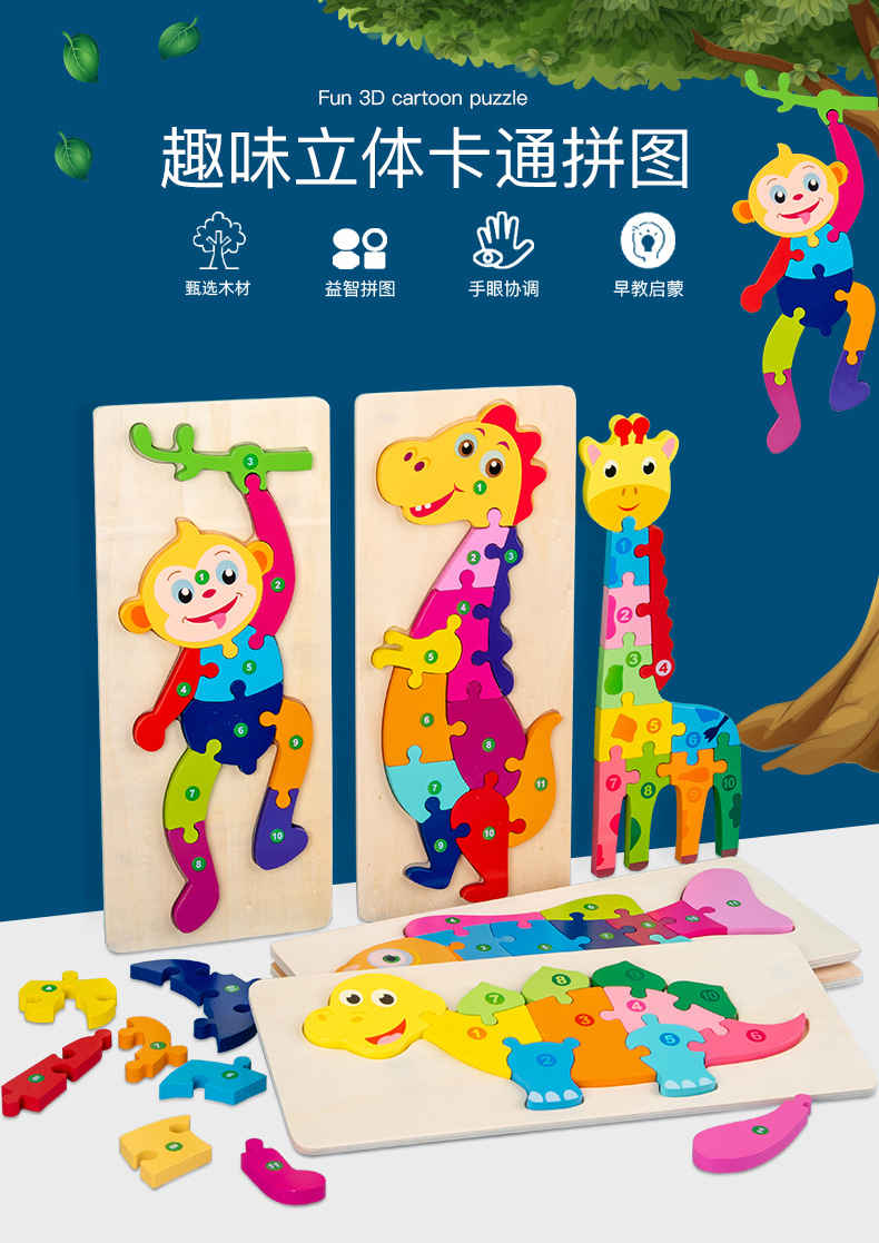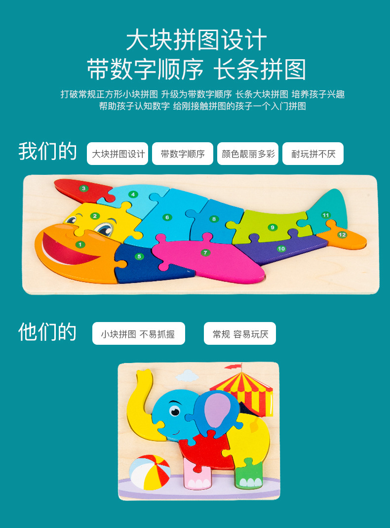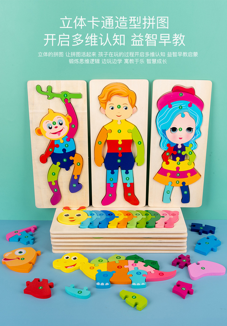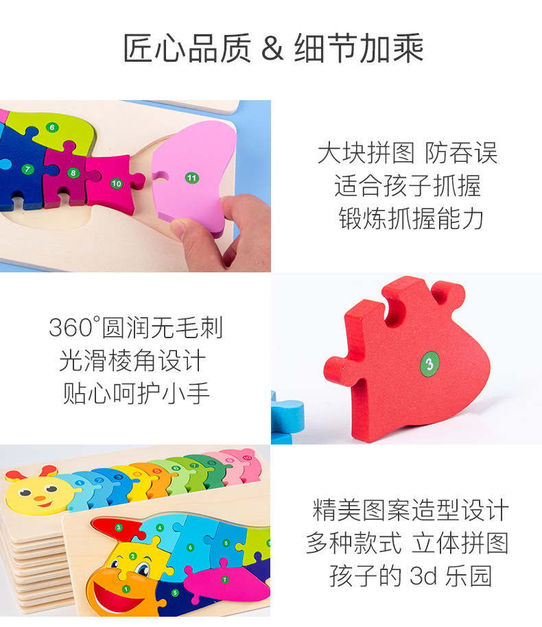 热卖10款26个数字拼图动物拼图卡通儿童数字认知启蒙拼板木制玩具