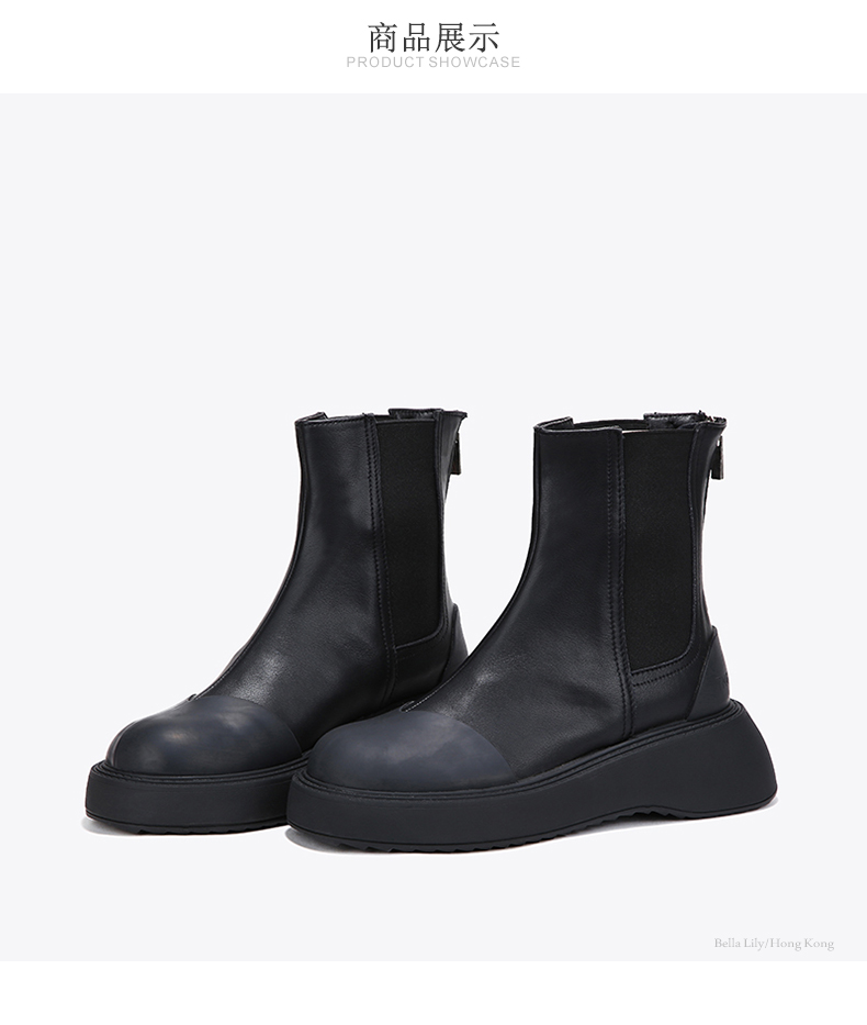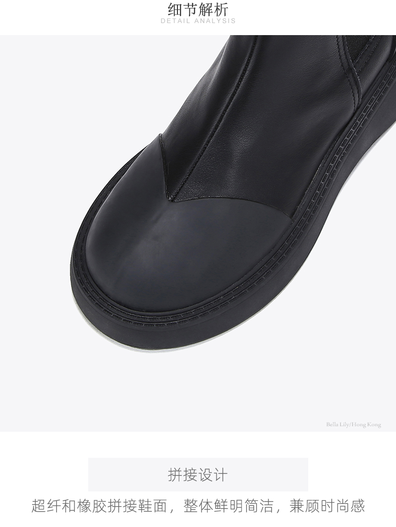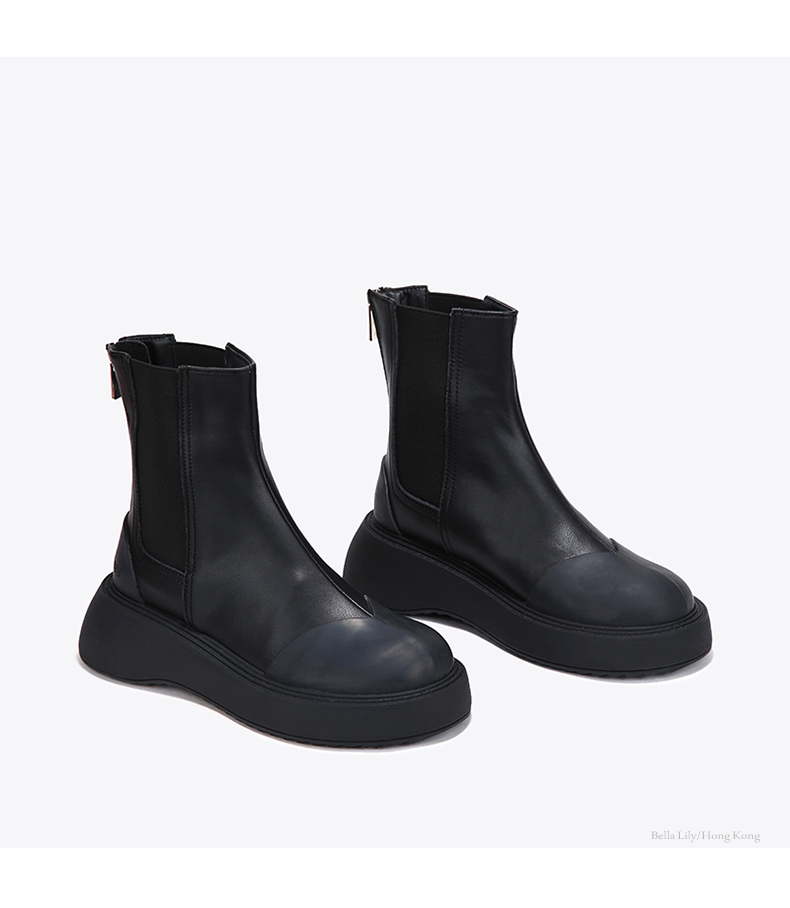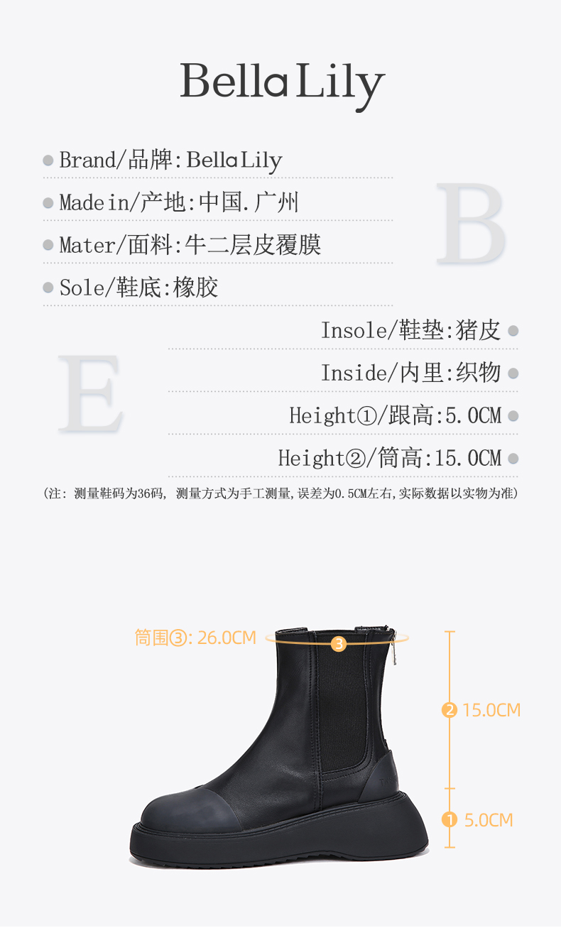 BellaLily新款厚底纯色中筒靴女透气切尔西靴拉链瘦瘦靴子