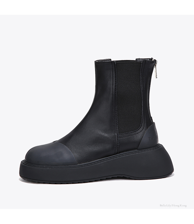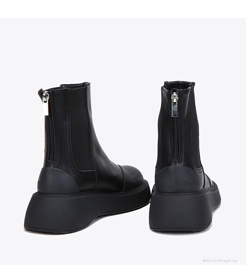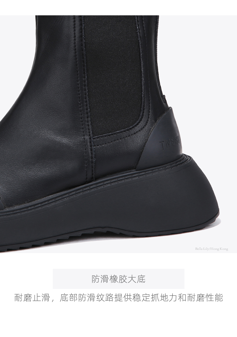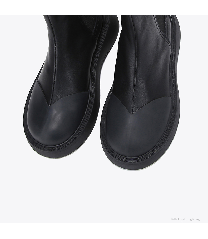 BellaLily新款厚底纯色中筒靴女透气切尔西靴拉链瘦瘦靴子