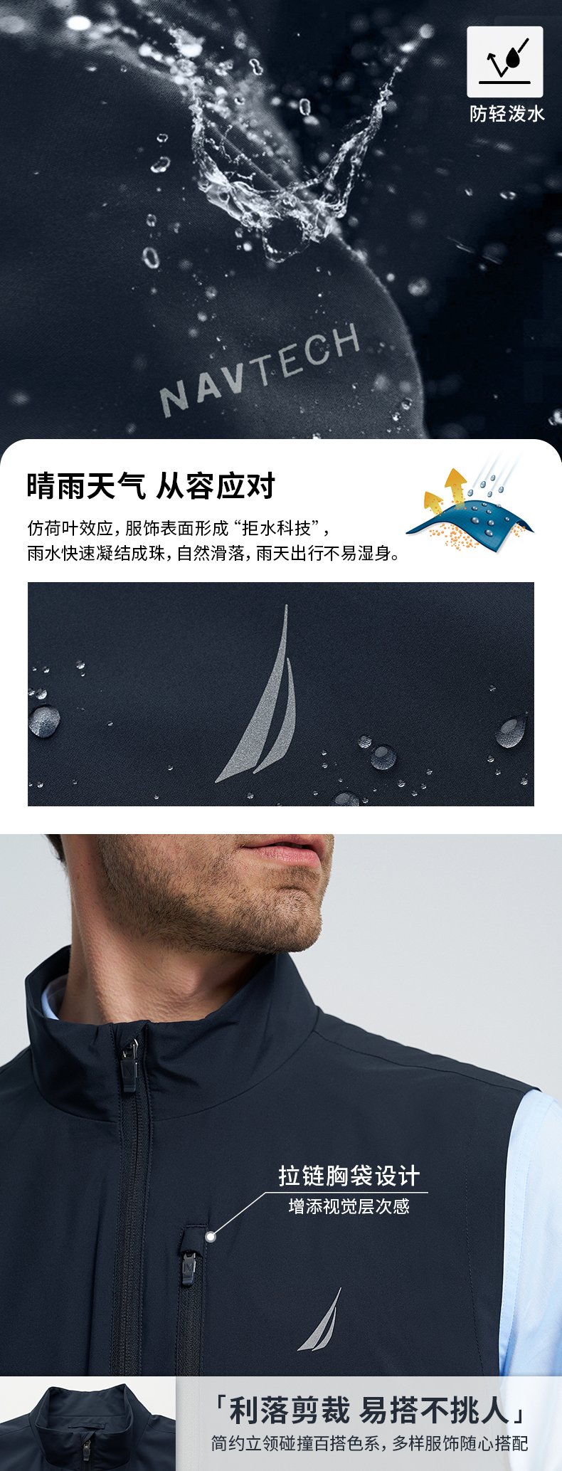 NAUTICA/诺帝卡男装防轻泼水舒适柔软休闲背心夏季马甲