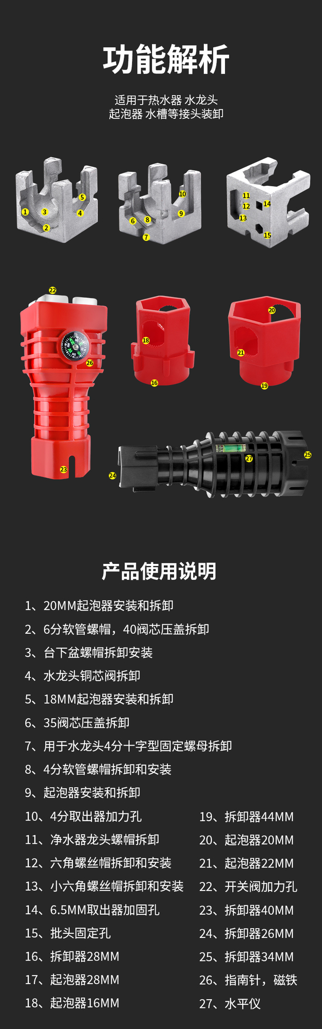 绿林多功能水槽扳手水龙头八合一卫浴神器家用水管拧松器工具