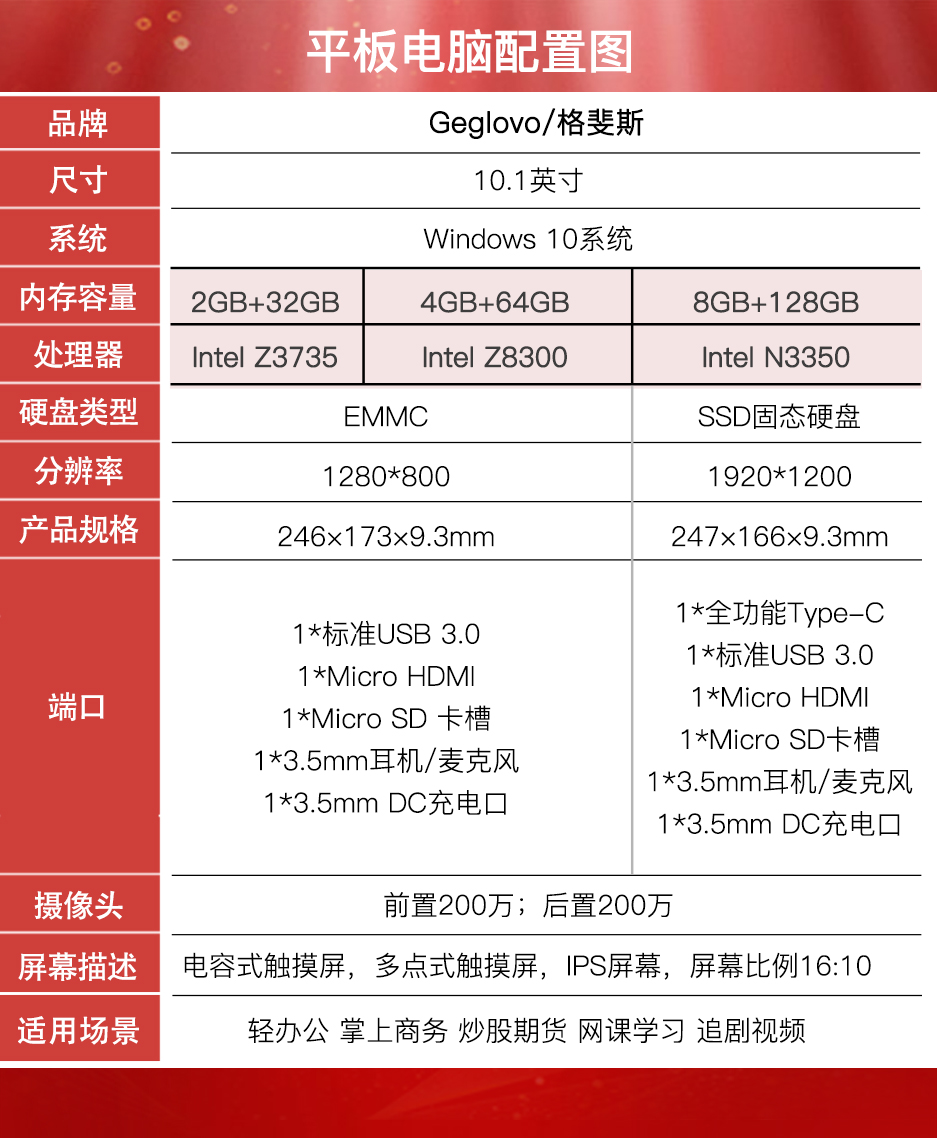 Geglovo/格斐斯 Windows平板电脑二合一笔记本迷你掌上电脑10.1寸