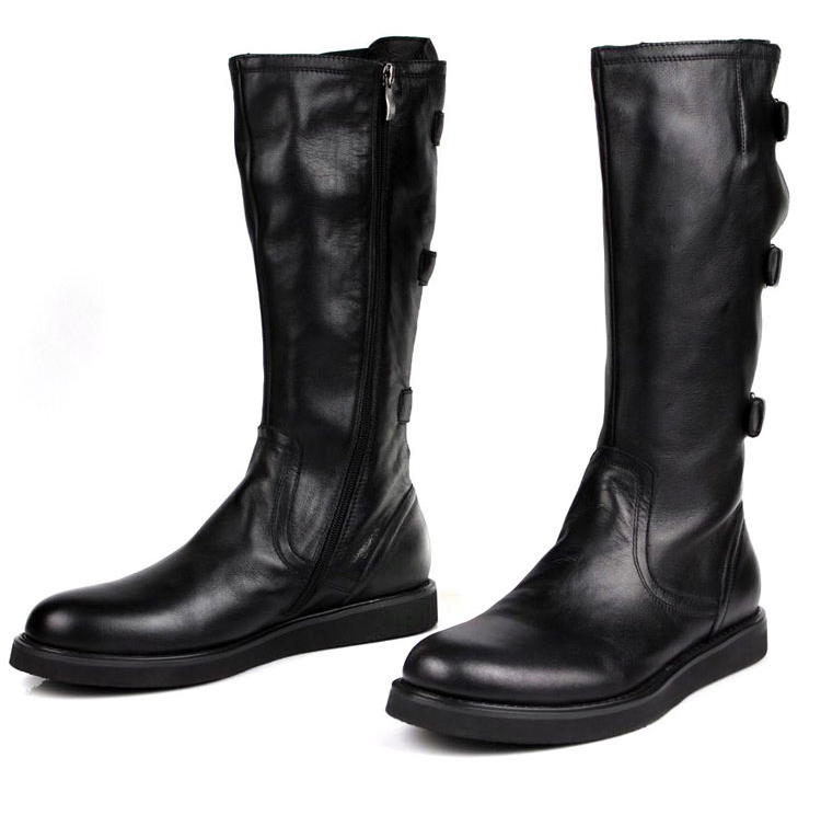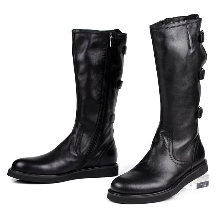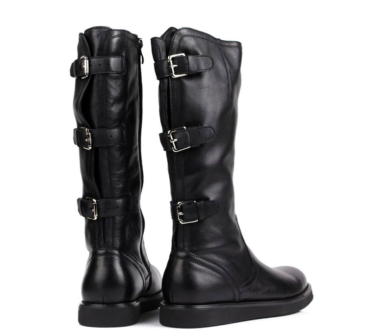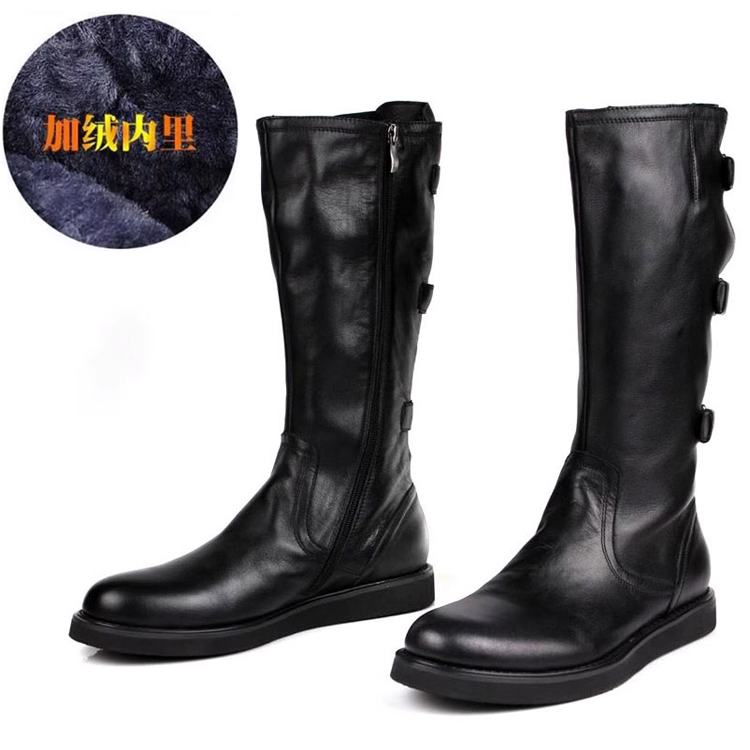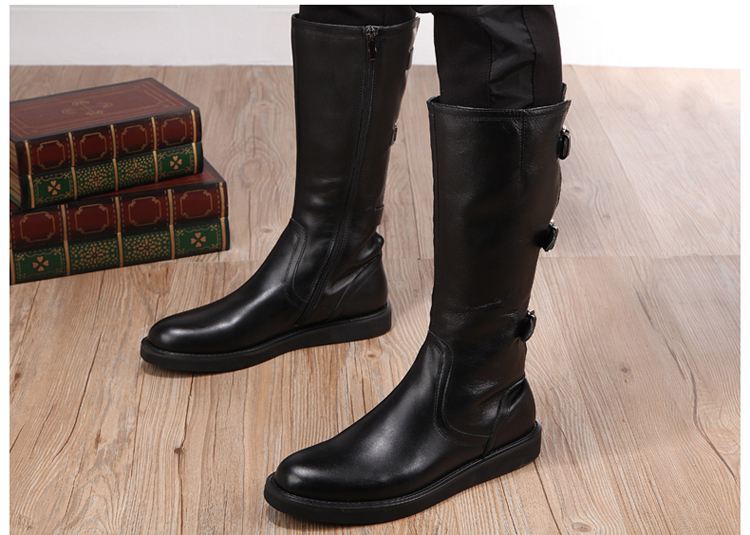 奢华大气高帮男鞋高筒靴真皮搭扣休闲长靴子潮流马靴男皮靴蒙古靴