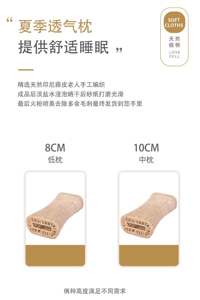 新款竹枕头成人男夏季薄低枕凉席硬藤枕凉爽透气枕头天然真藤枕