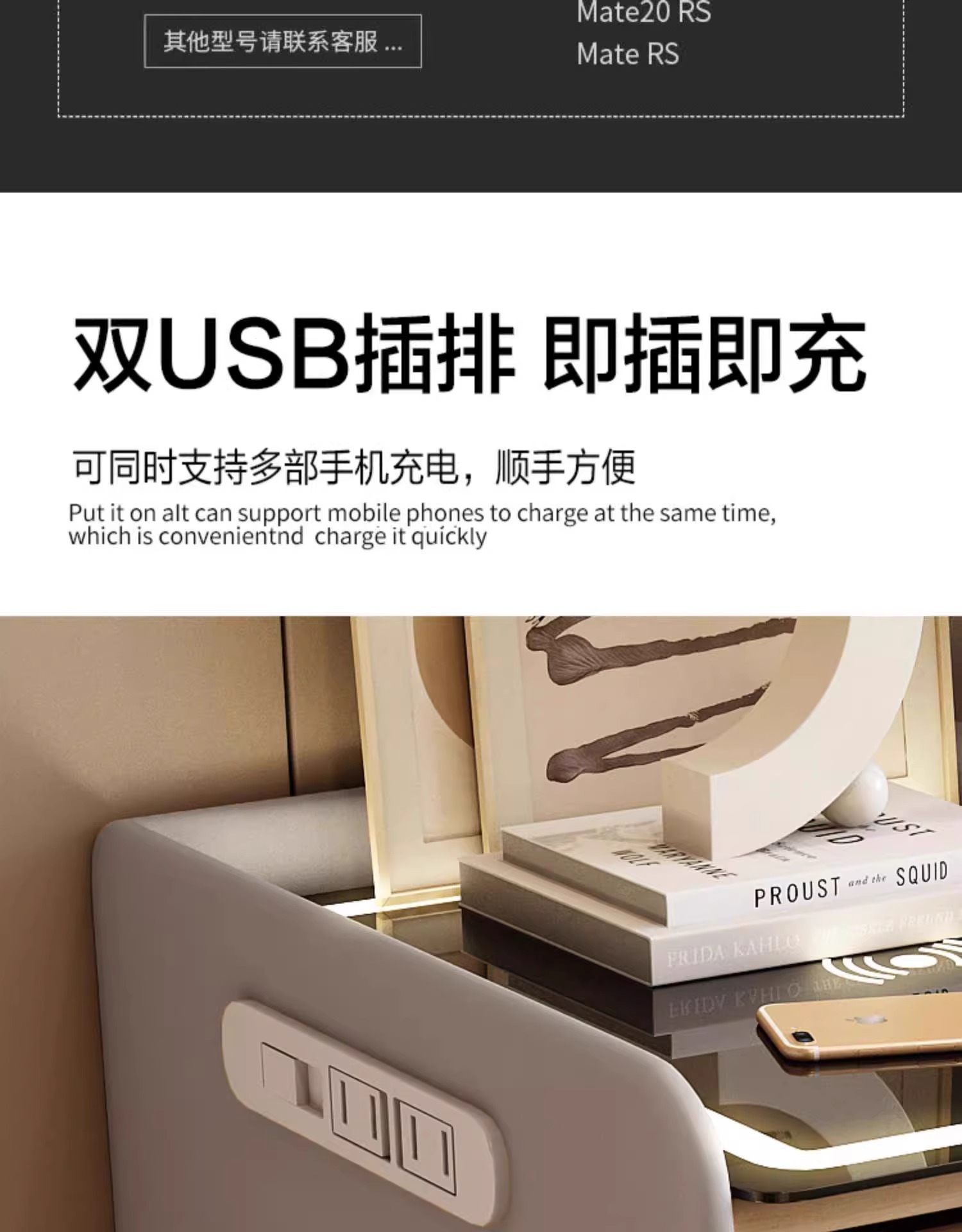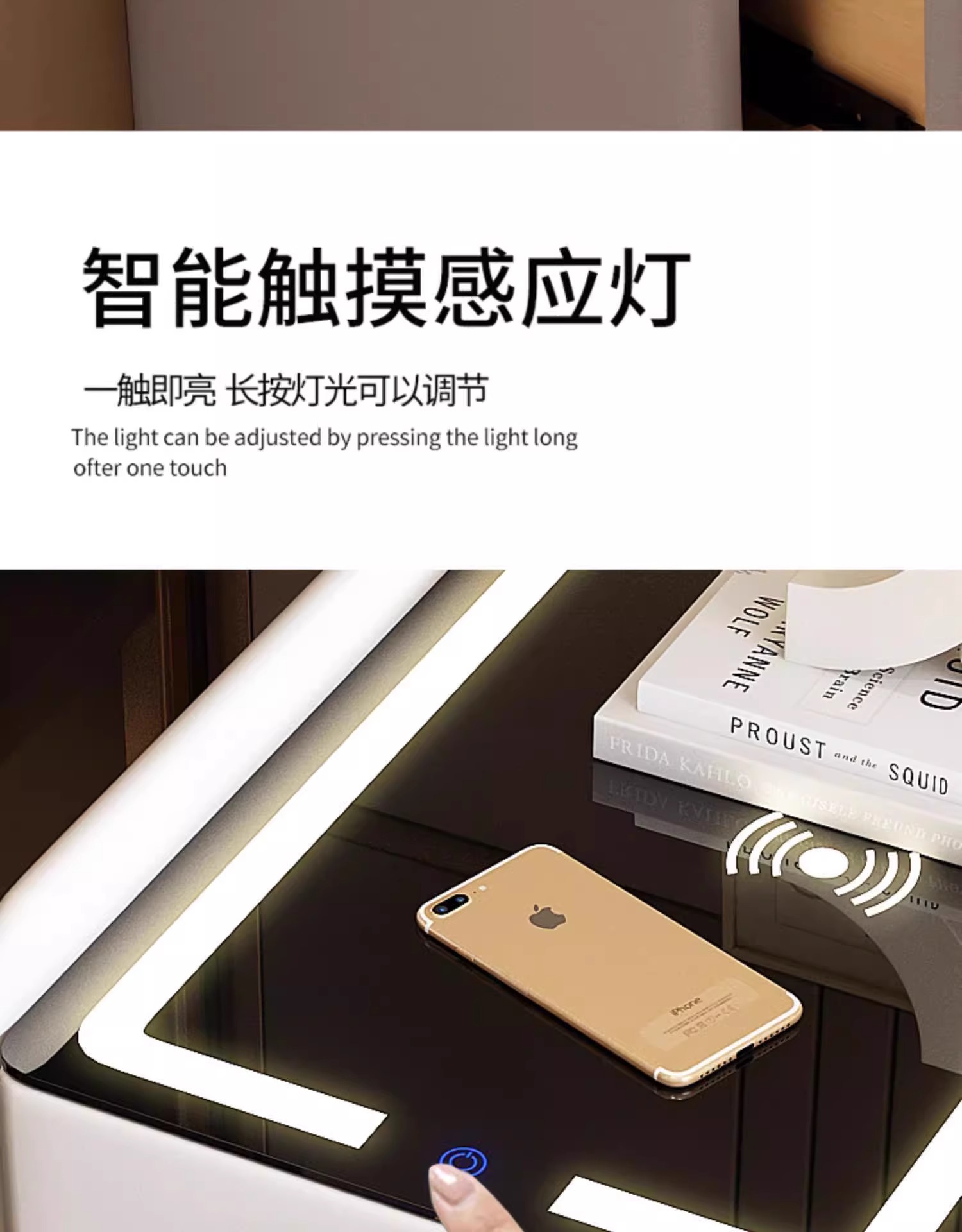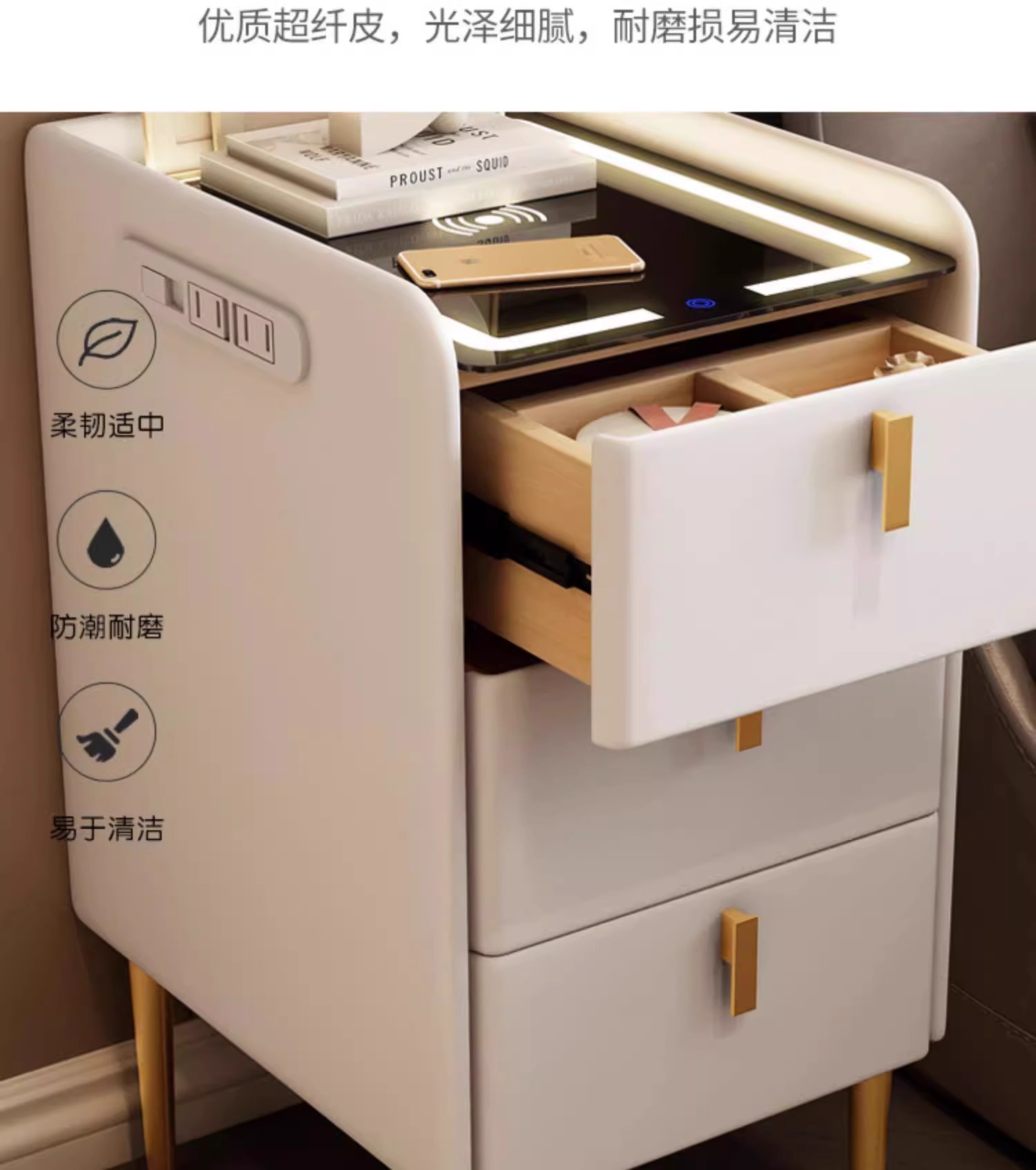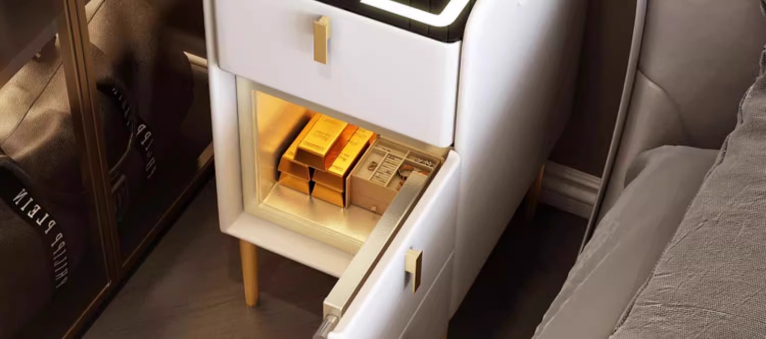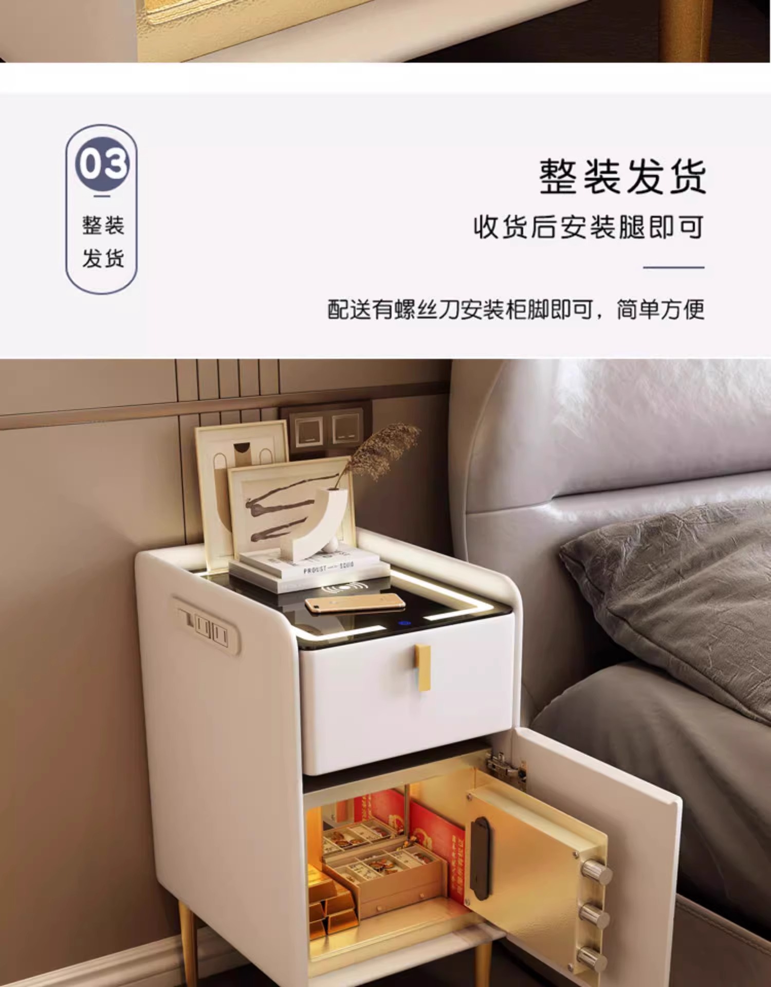 实木床头柜保险箱一体智能小型简约现代带家用防盗极窄多功能卧室