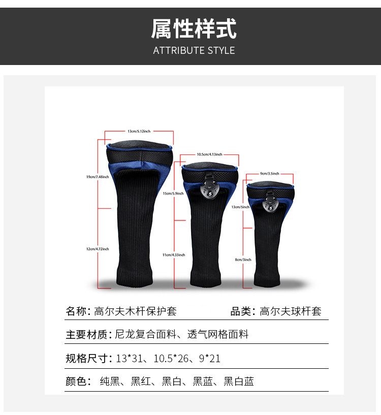 新款高尔夫球杆套1-3-5木杆套热卖golf配件练习用品