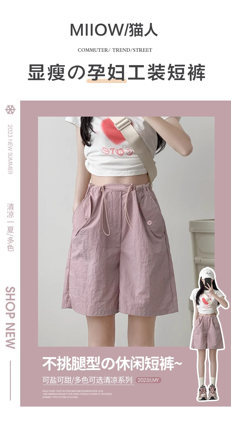 猫人孕妇短裤夏季薄款外穿无托腹工装小个子孕早期休闲阔腿裤夏装