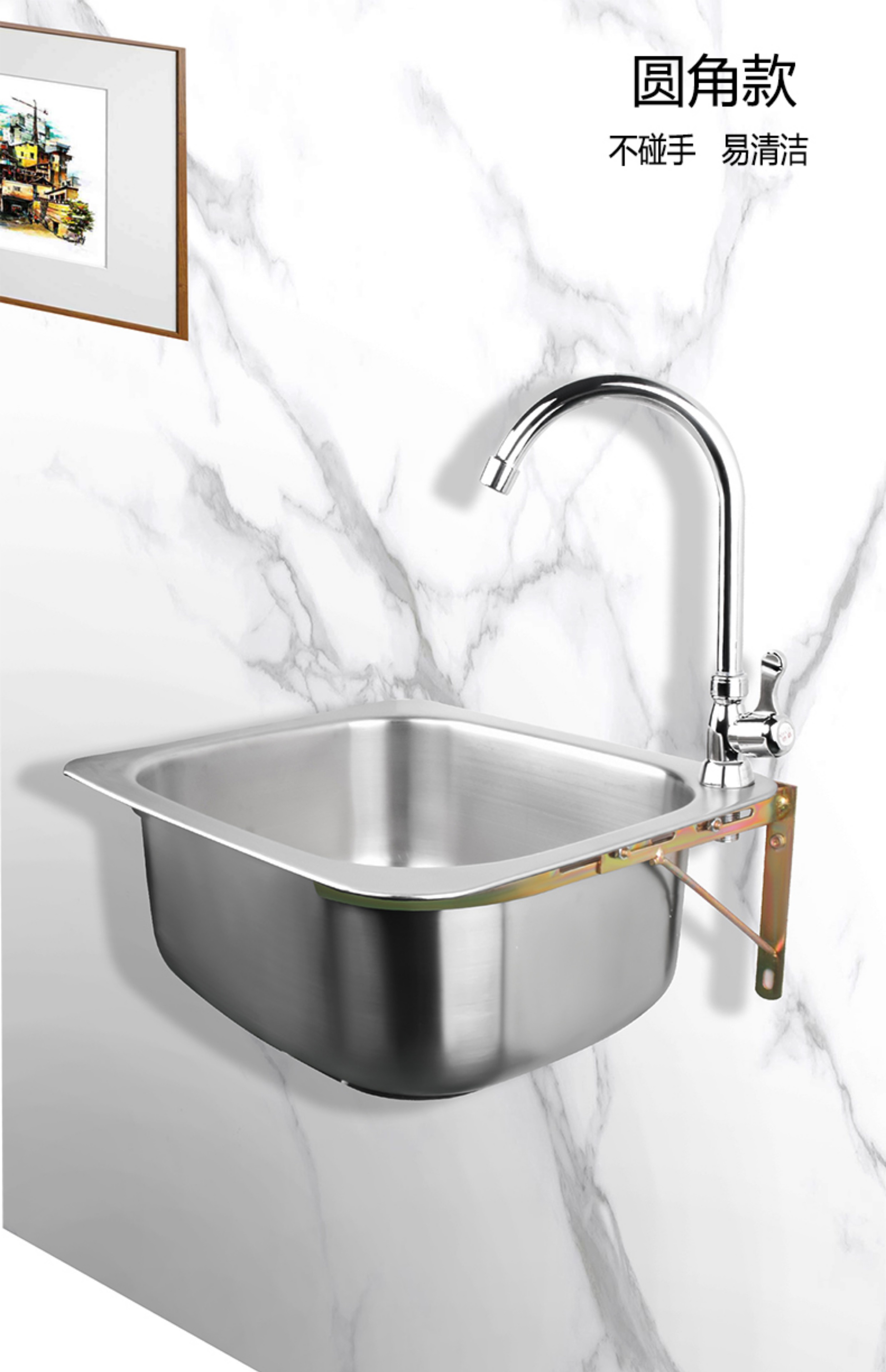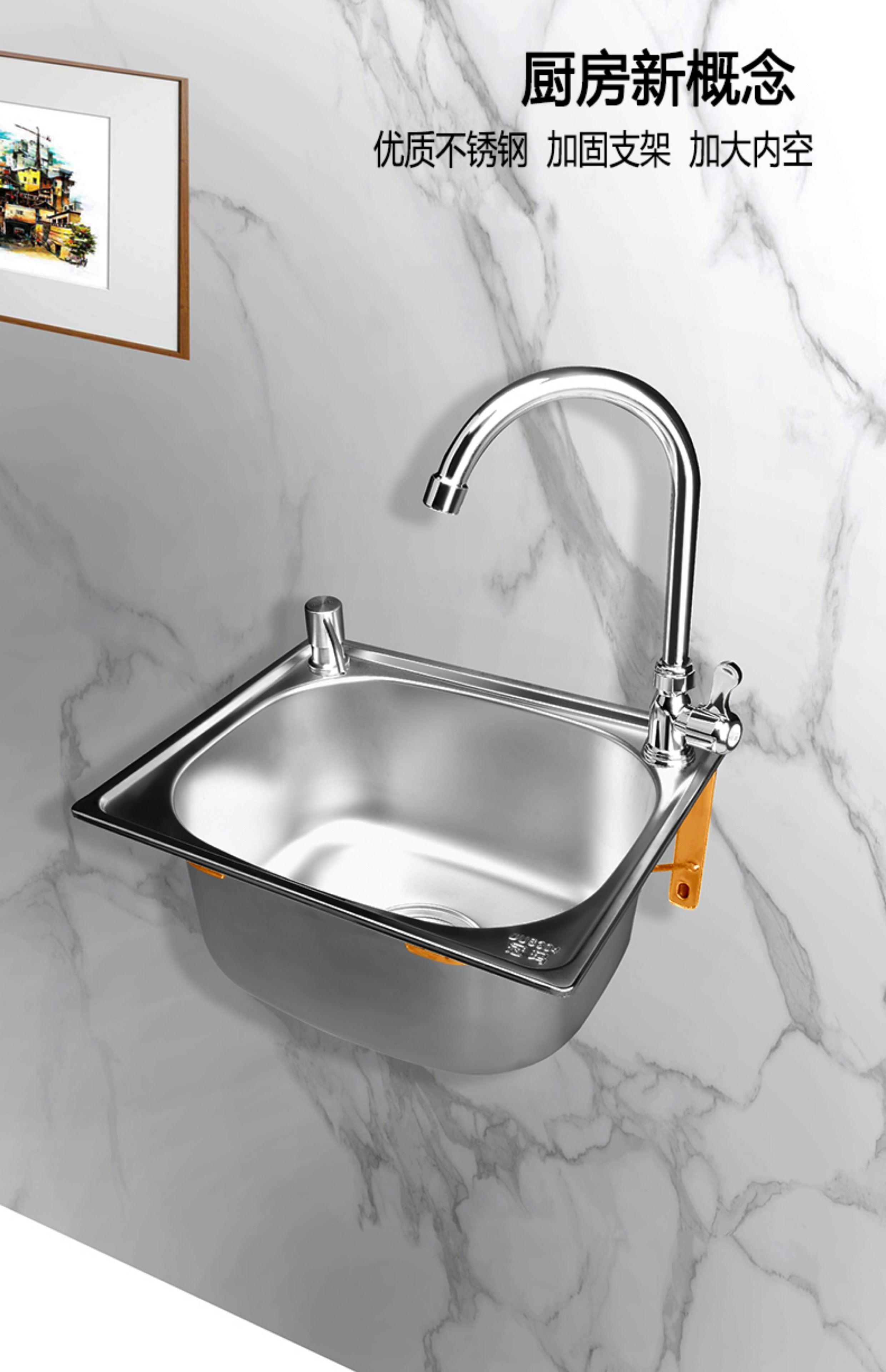 特价水槽挂墙304不锈钢大小单槽带支撑架子 厨房洗菜洗碗池洗手盆