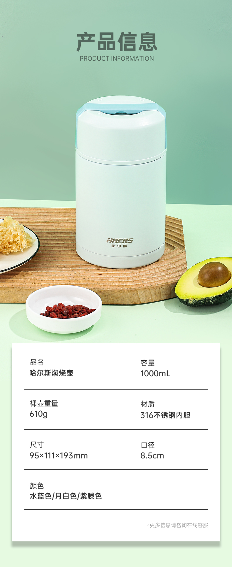 哈尔斯焖烧杯女316不锈钢焖烧壶大容量便携提手学生超长保温饭盒