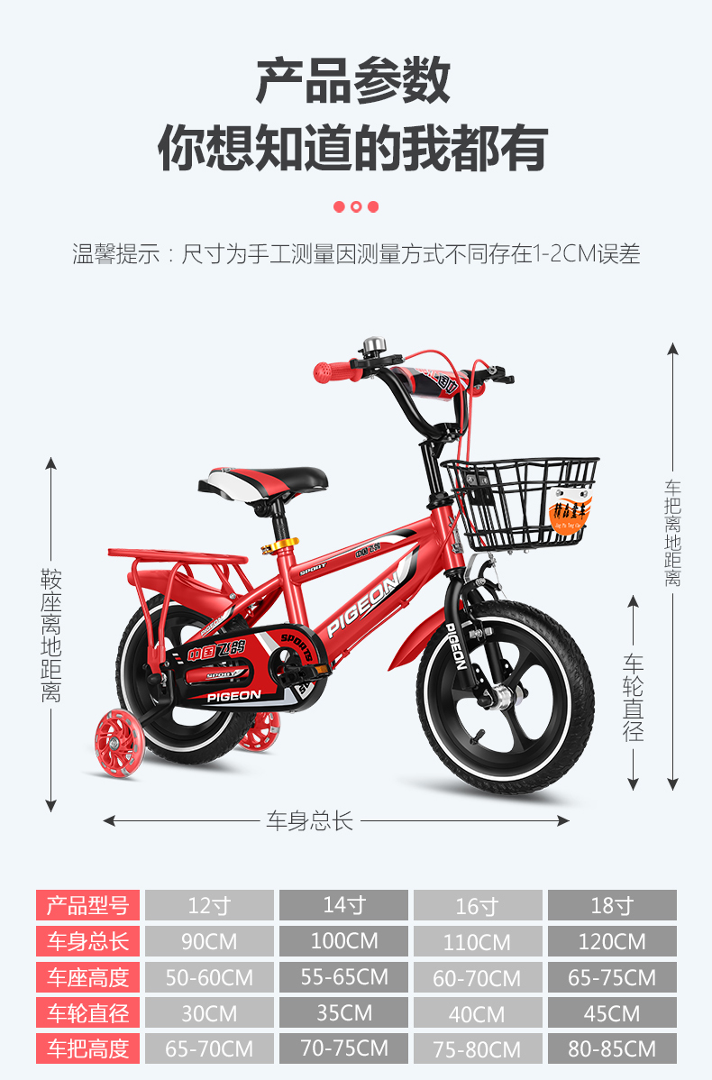 飞鸽儿童自行车男孩2-3-4-6-7-8岁宝宝脚踏单车中大童车女孩小孩