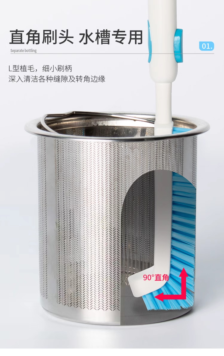 水槽缝隙清洁刷厨房长柄多功能弯头杯刷水池地漏浴室无死角直角刷