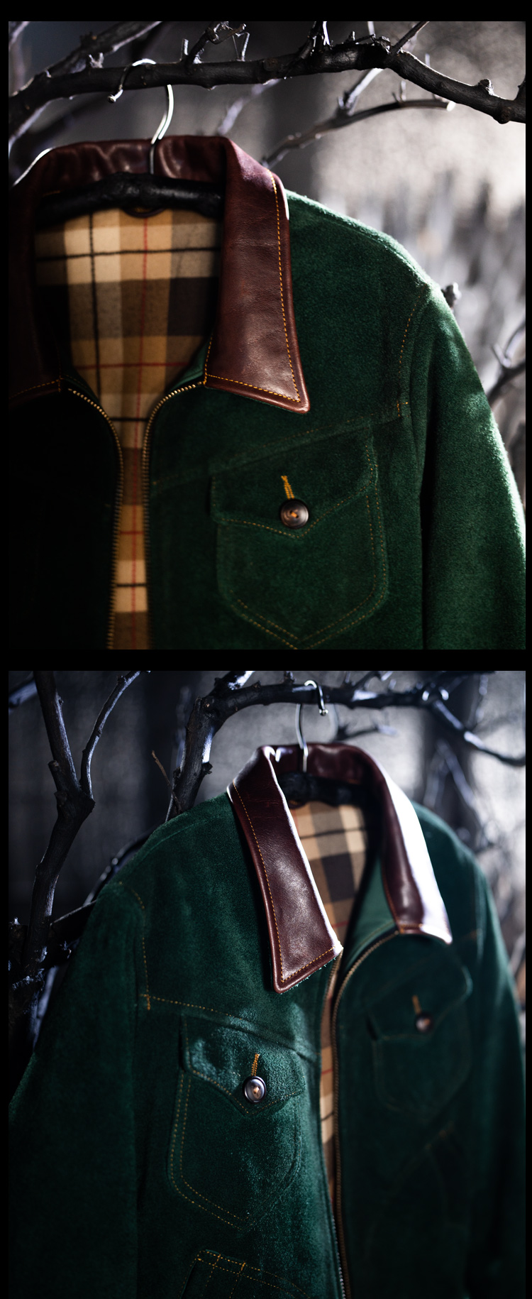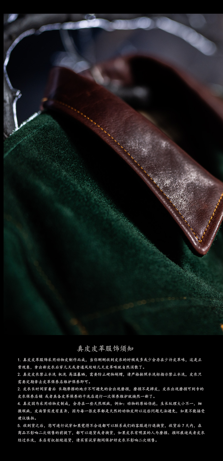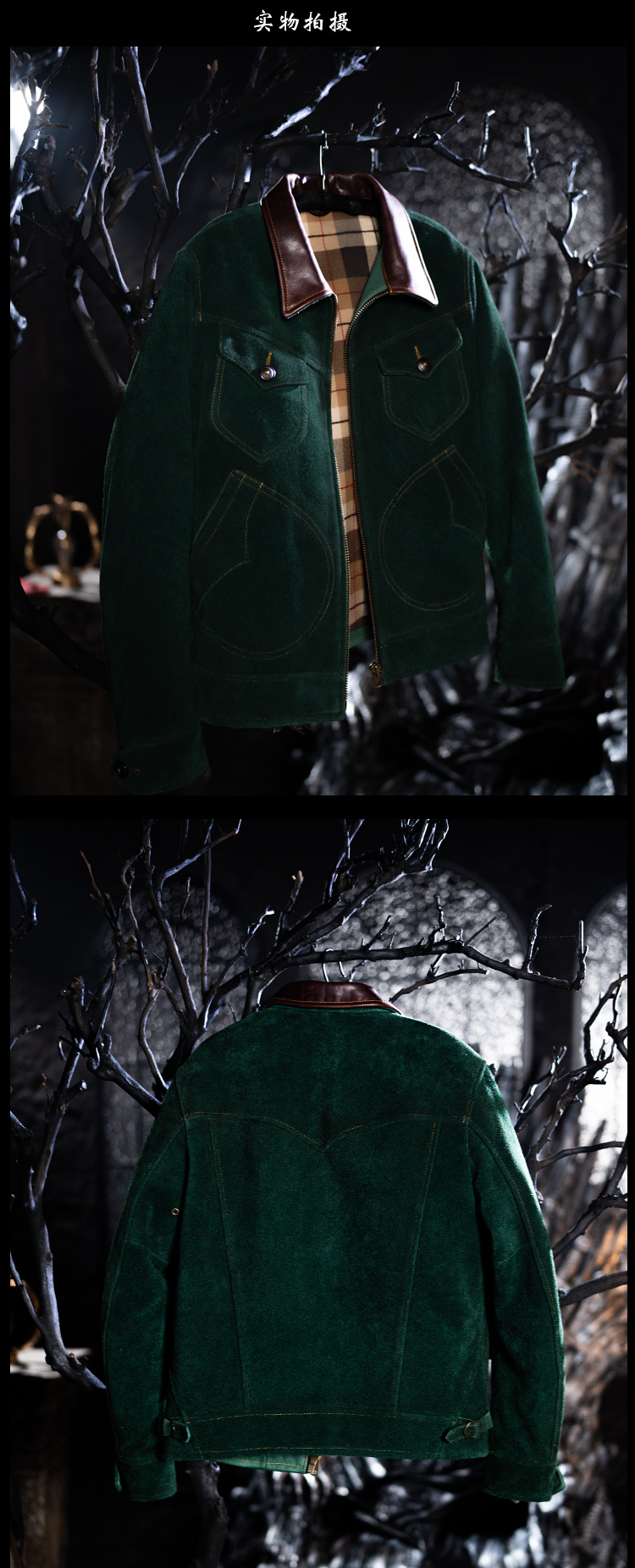 莫臣男装真皮皮衣翡翠绿牛皮反绒皮衣 复古休闲秋冬男士皮衣F062