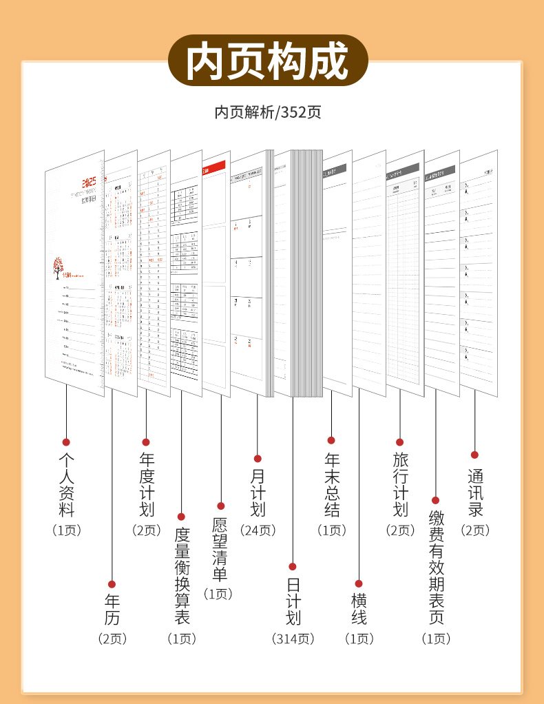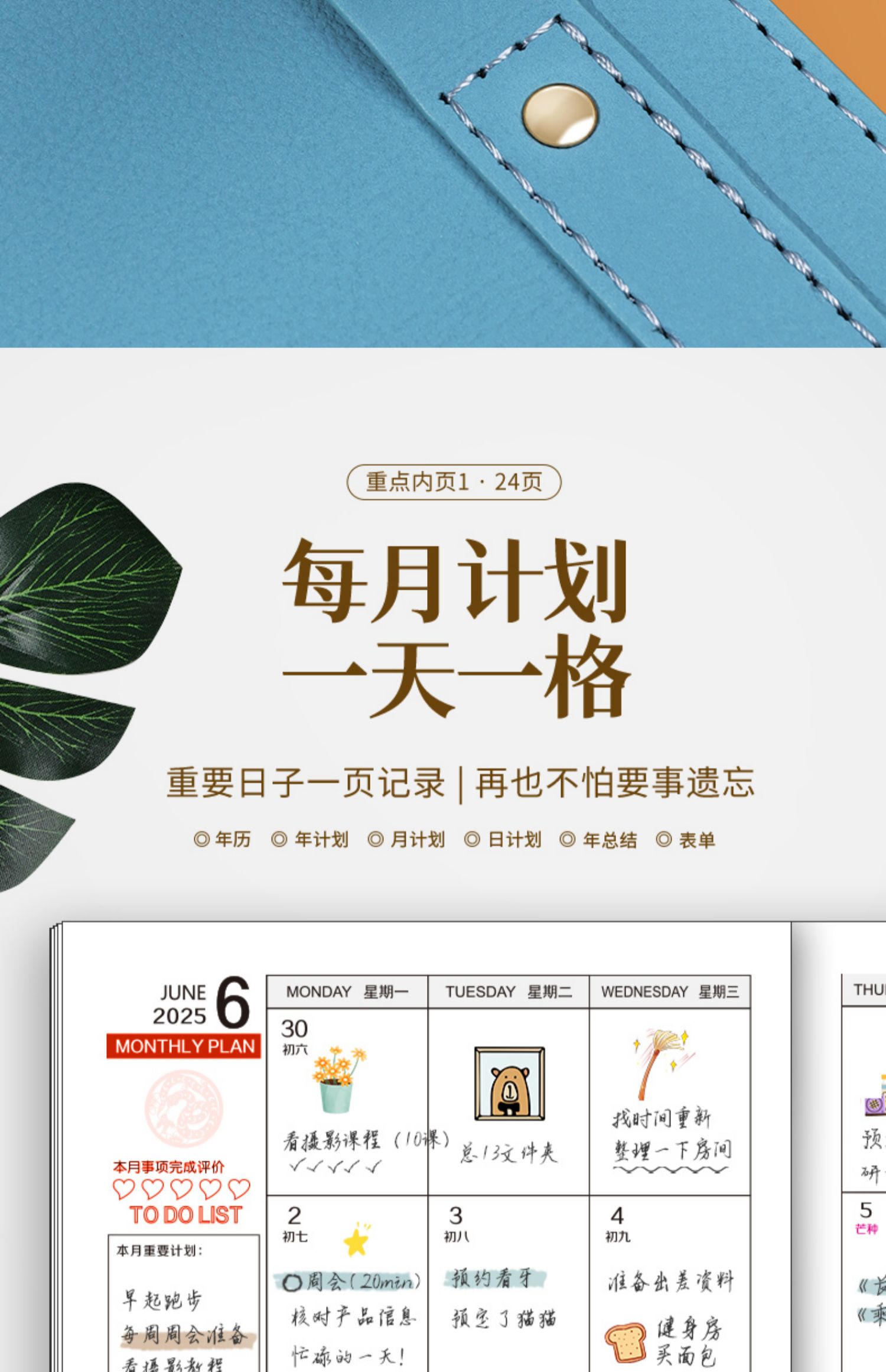 2025年日程本工作计划笔记本子定制日历记事本商务办公会议记录本A4时间管理每日一页学习计划表日记本印logo